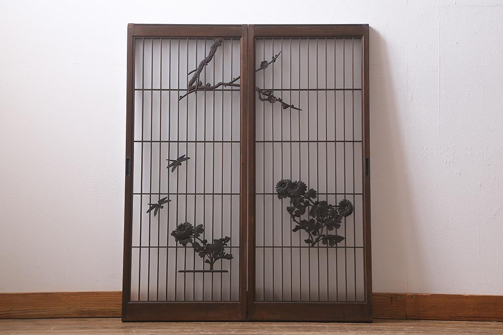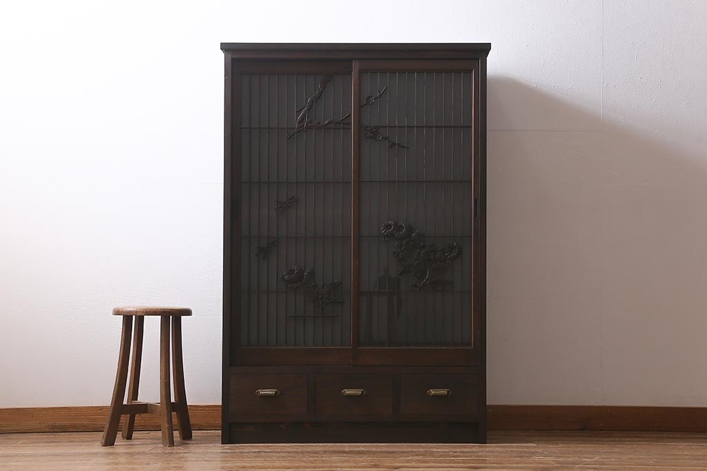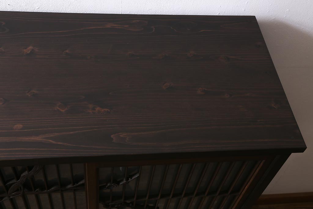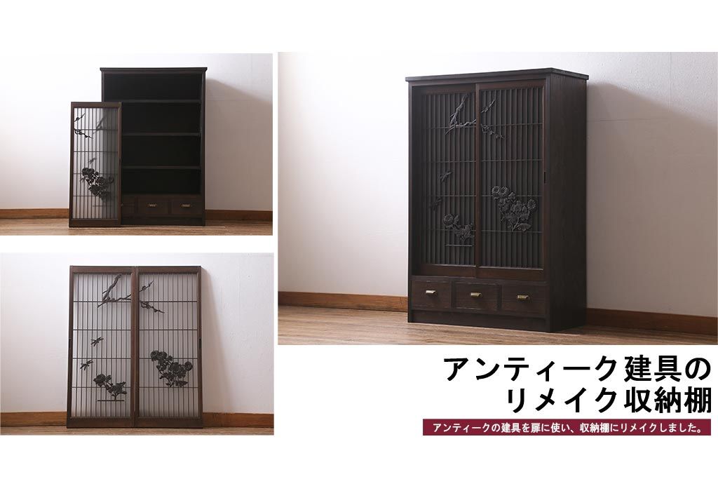 ラフジュ工房オリジナル 古建具リメイク 組子 和の風情漂う組子が魅力の収納棚(書院戸、戸棚、キャビネット)(R-040106)