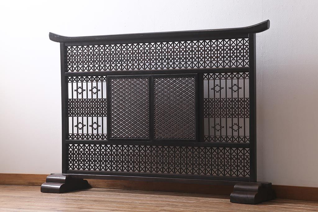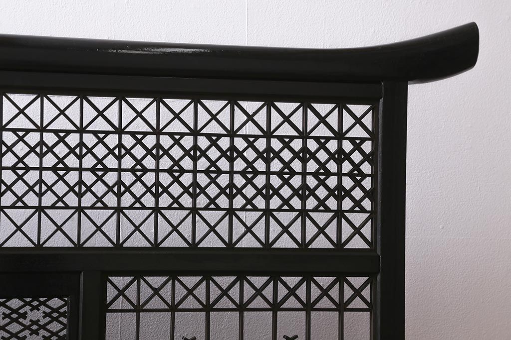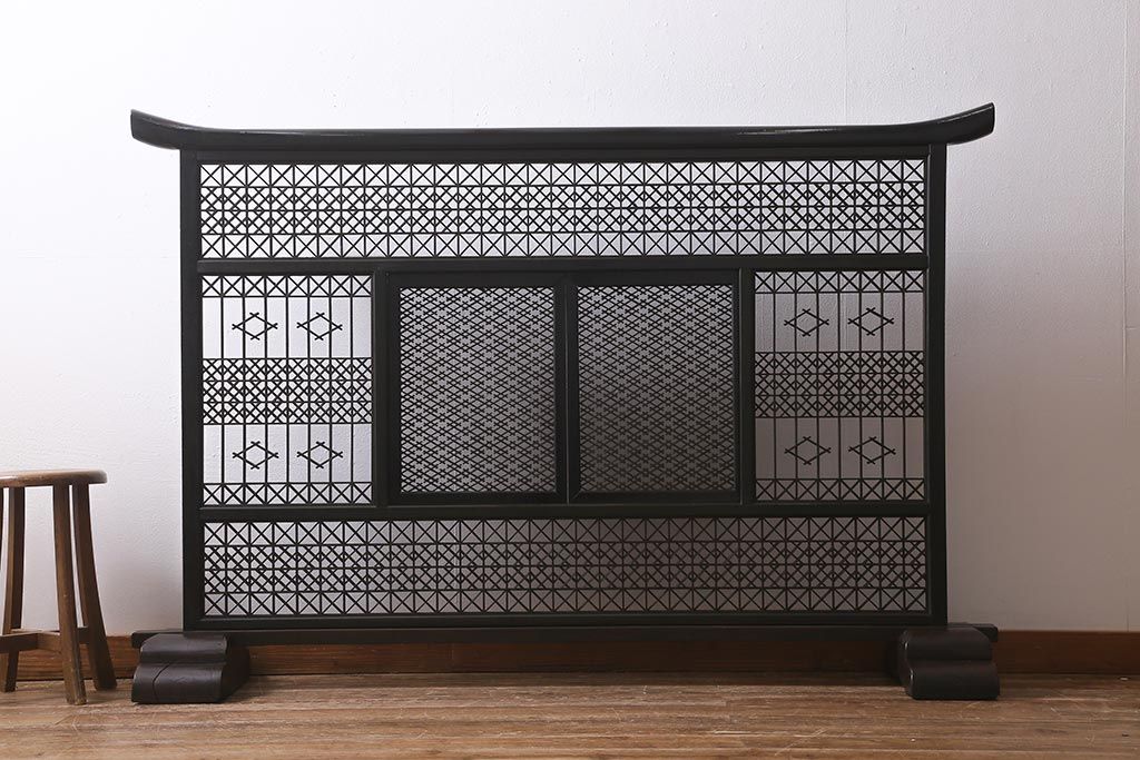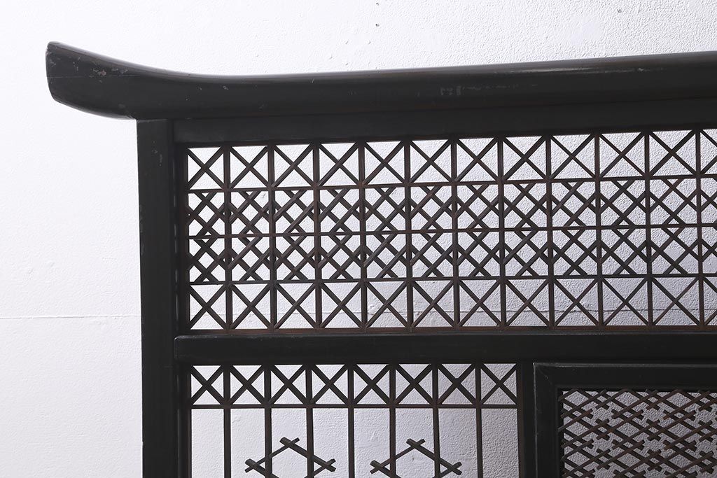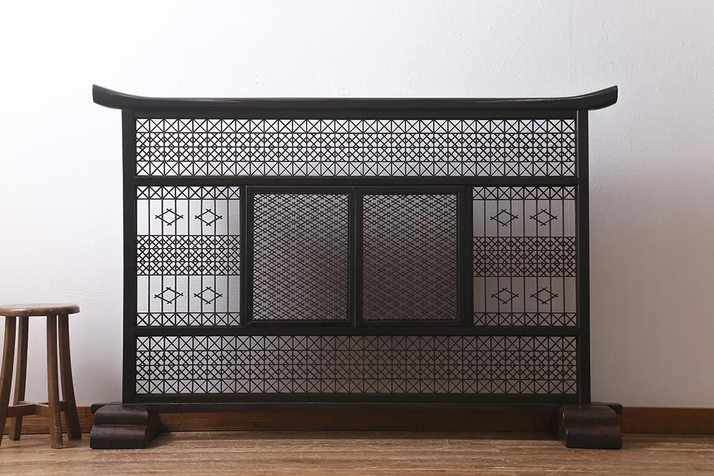 中古 民芸家具 明治大正期 漆塗り ケヤキ材製 組子細工が上品な衝立(つい立て、パーテーション)(R-040142)です。