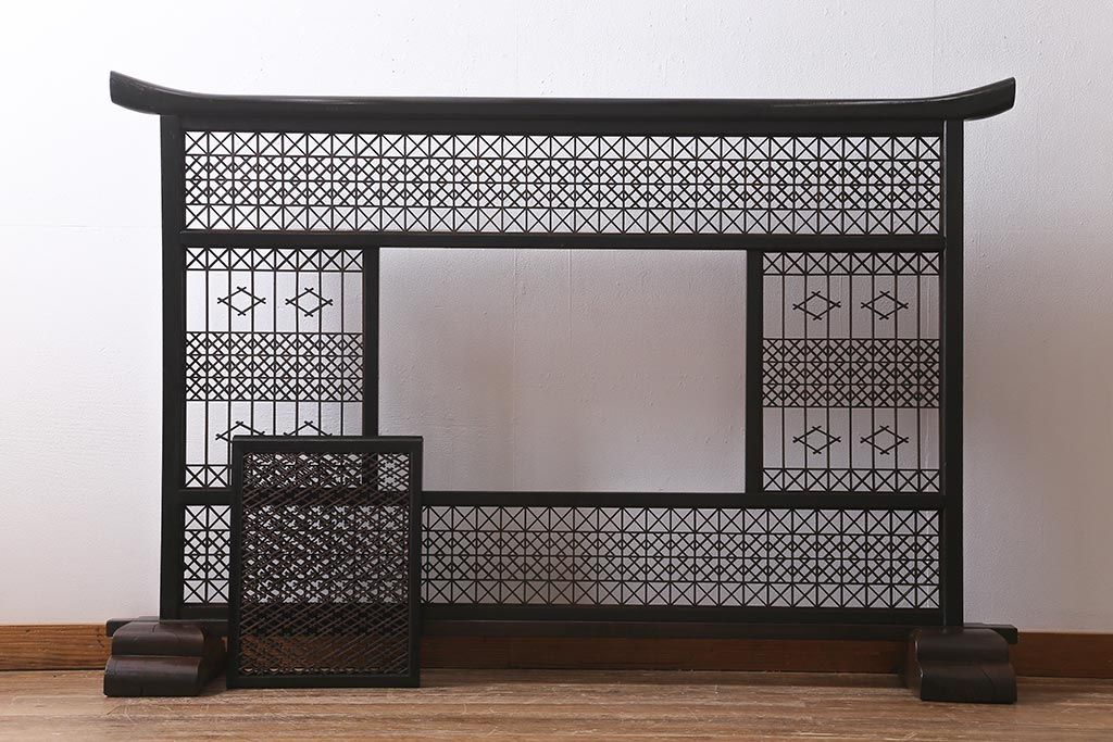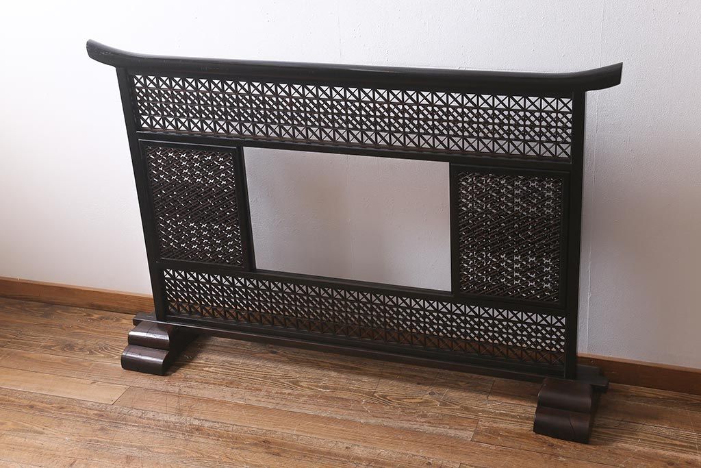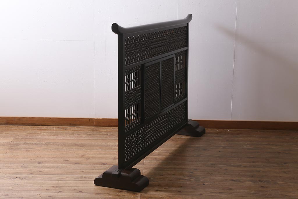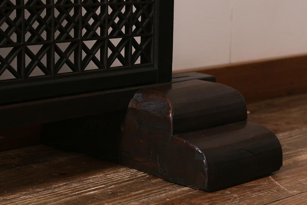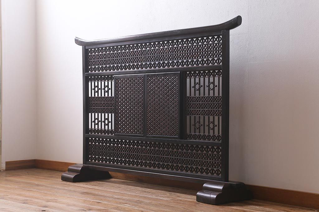 中古 民芸家具 明治大正期 漆塗り ケヤキ材製 組子細工が上品な衝立(つい立て、パーテーション)(R-040142)です。