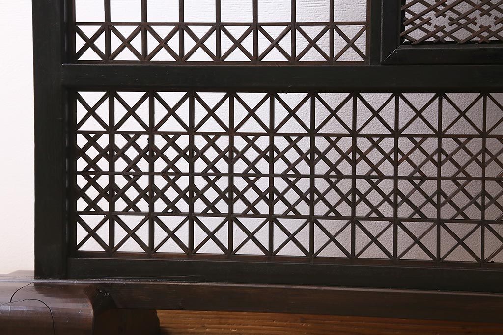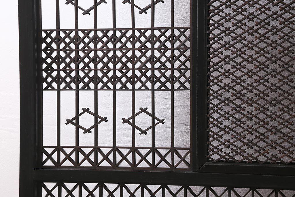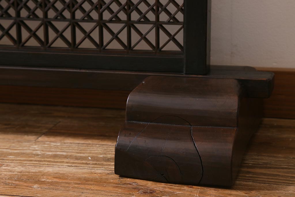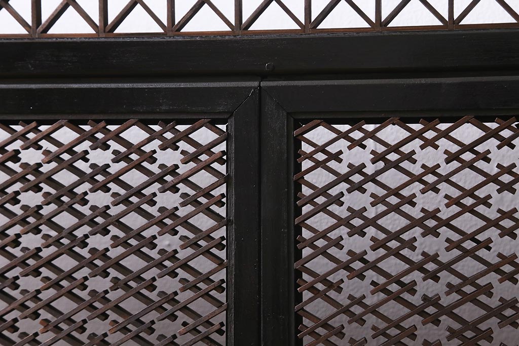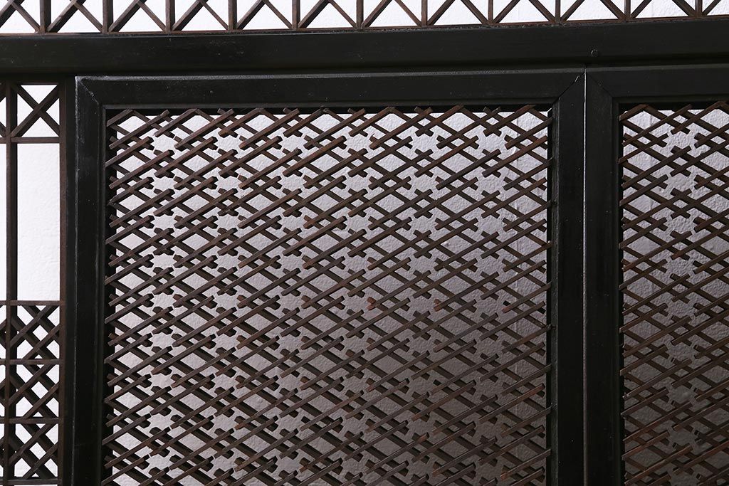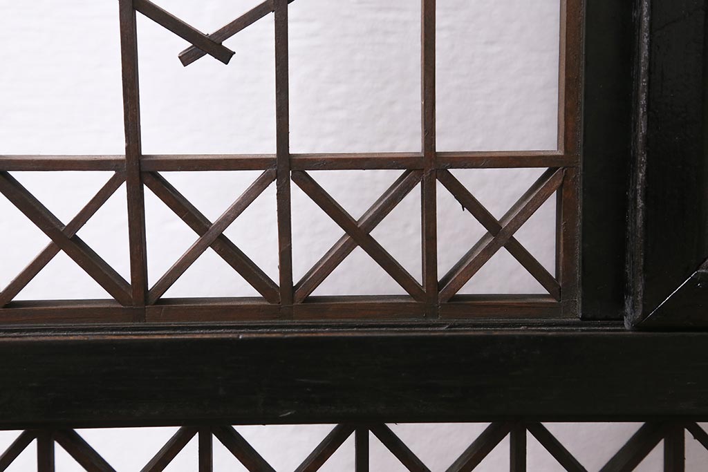 中古 民芸家具 明治大正期 漆塗り ケヤキ材製 組子細工が上品な衝立(つい立て、パーテーション)(R-040142)