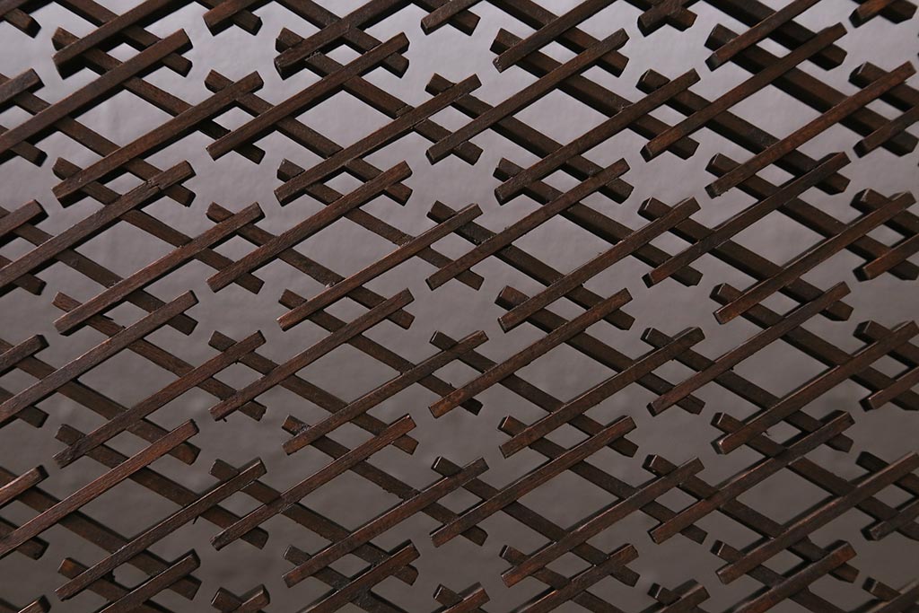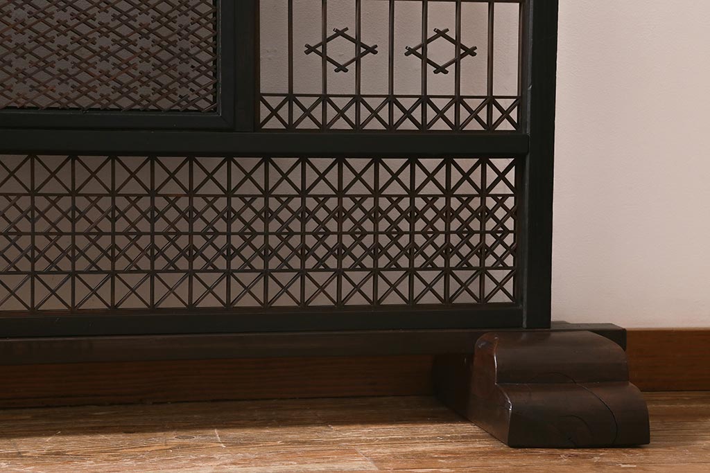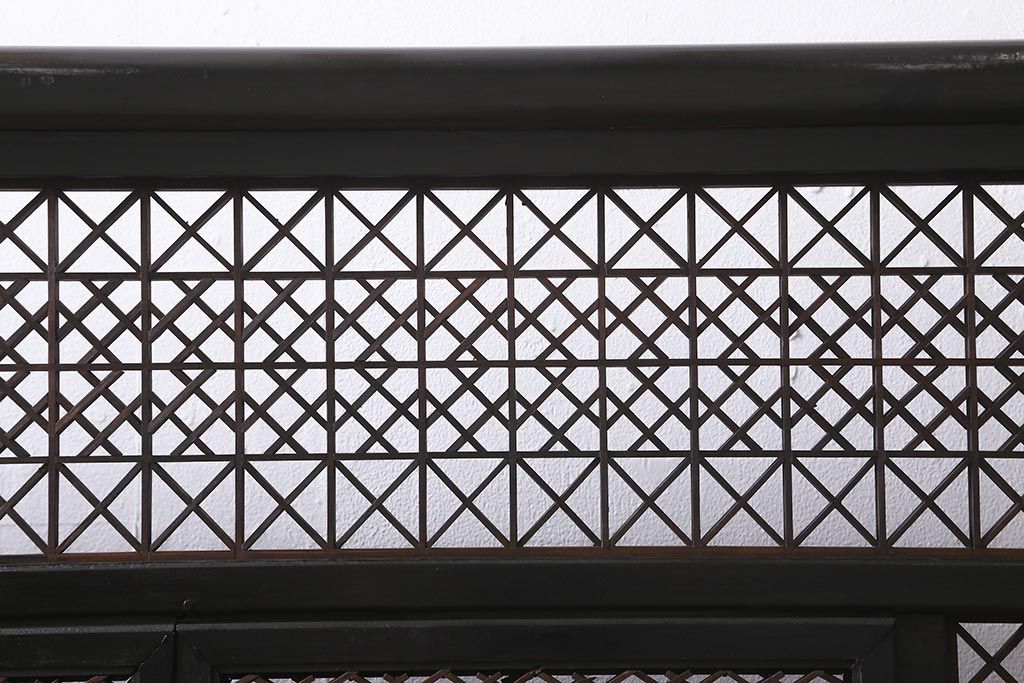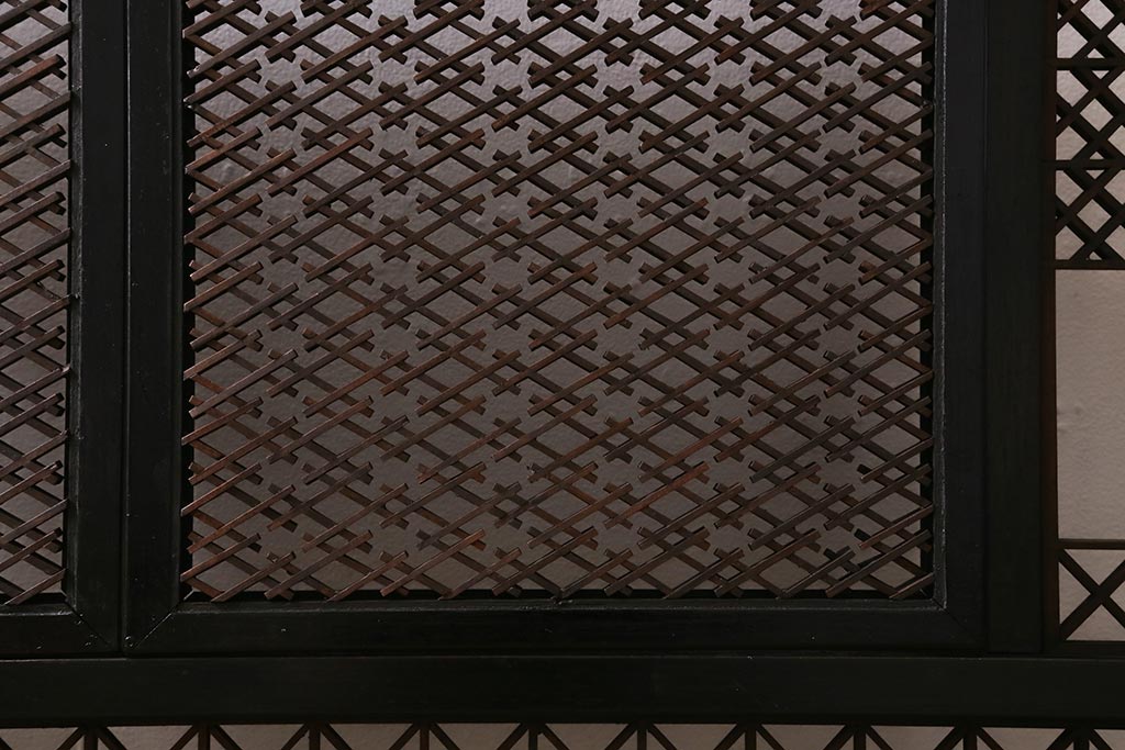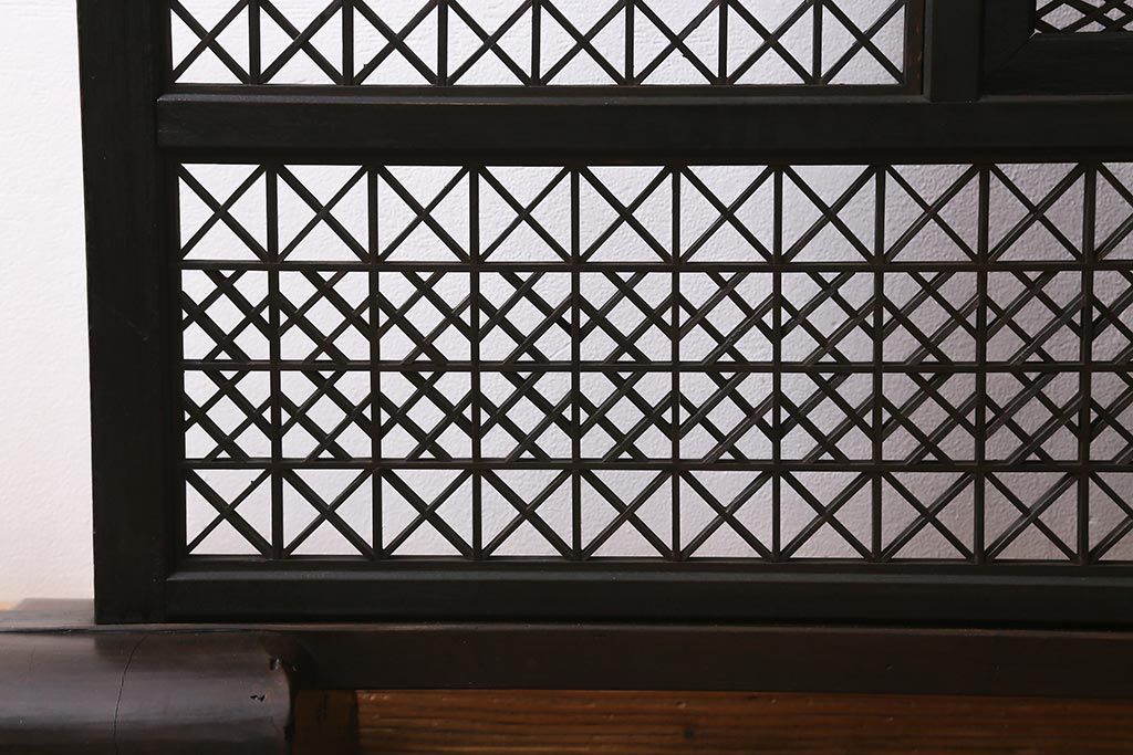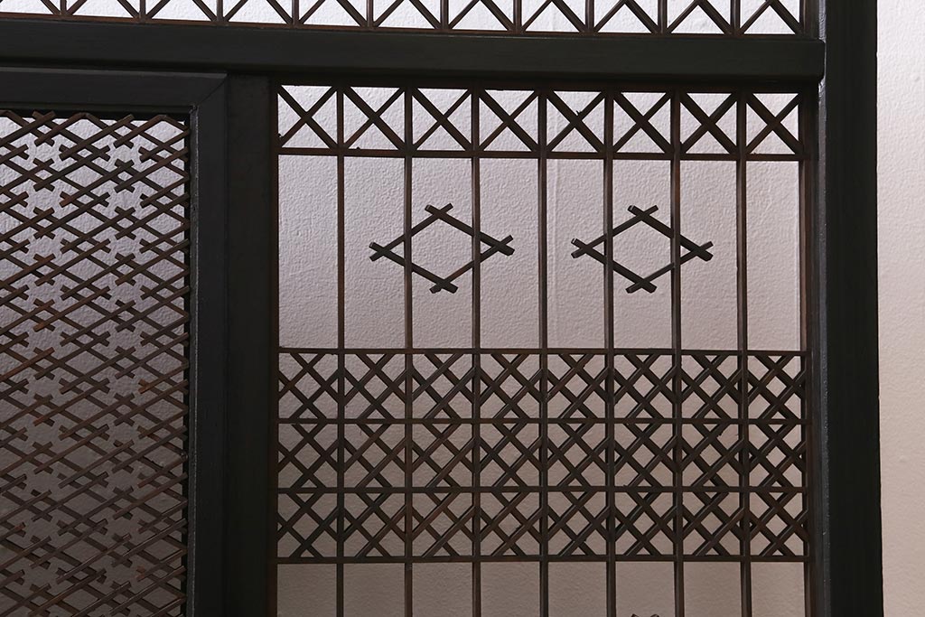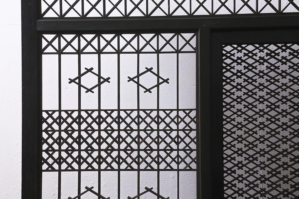 中古 民芸家具 明治大正期 漆塗り ケヤキ材製 組子細工が上品な衝立(つい立て、パーテーション)(R-040142)