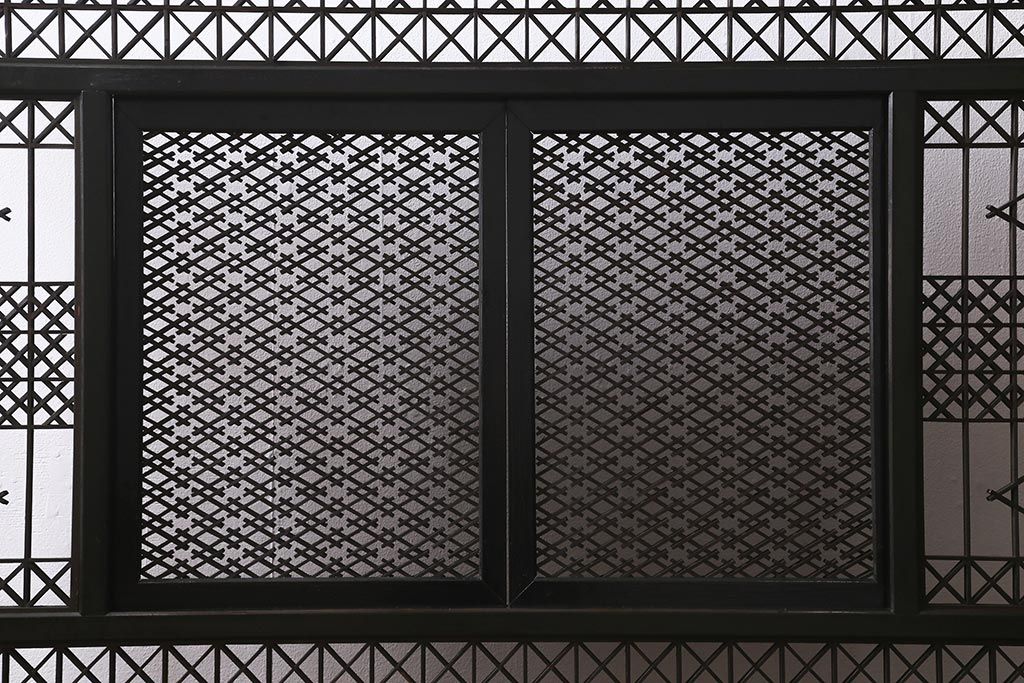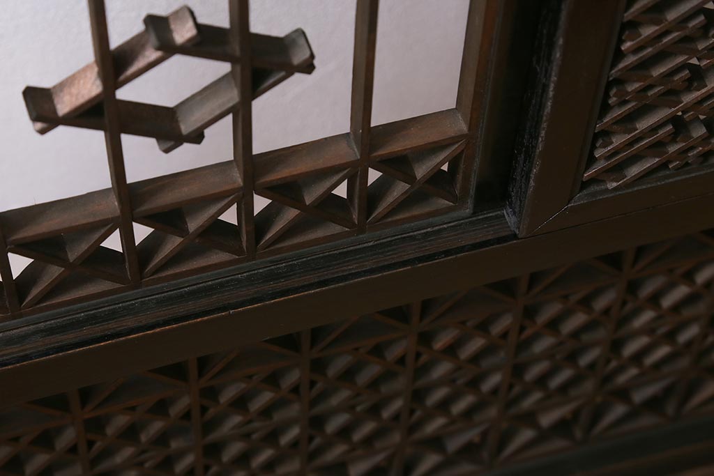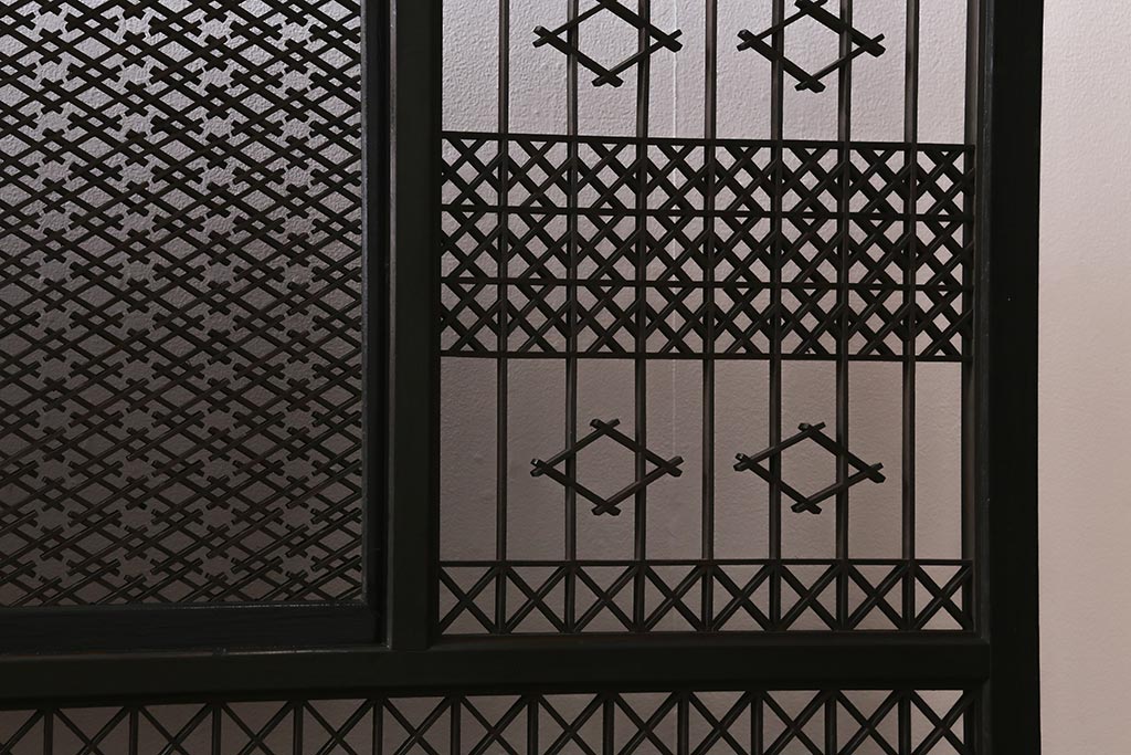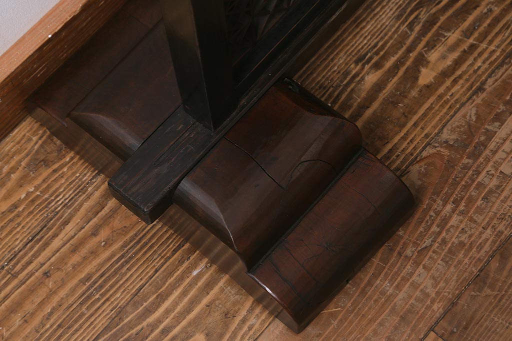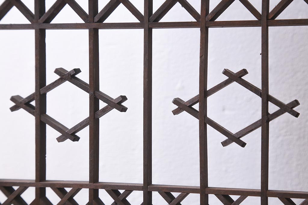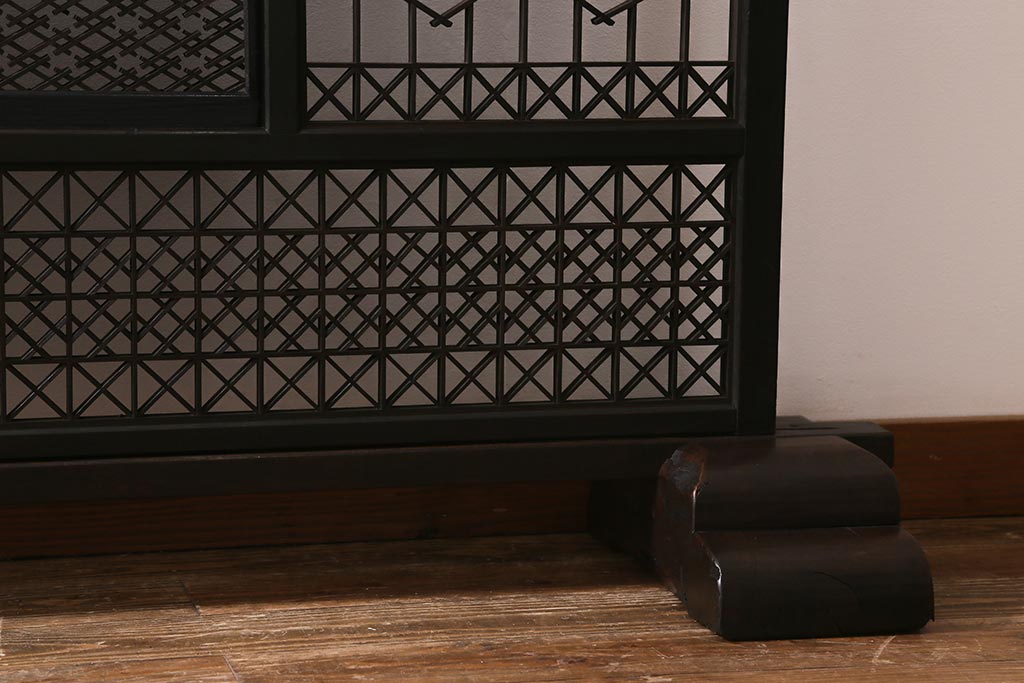 中古 民芸家具 明治大正期 漆塗り ケヤキ材製 組子細工が上品な衝立(つい立て、パーテーション)(R-040142)