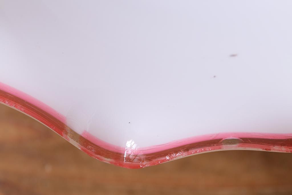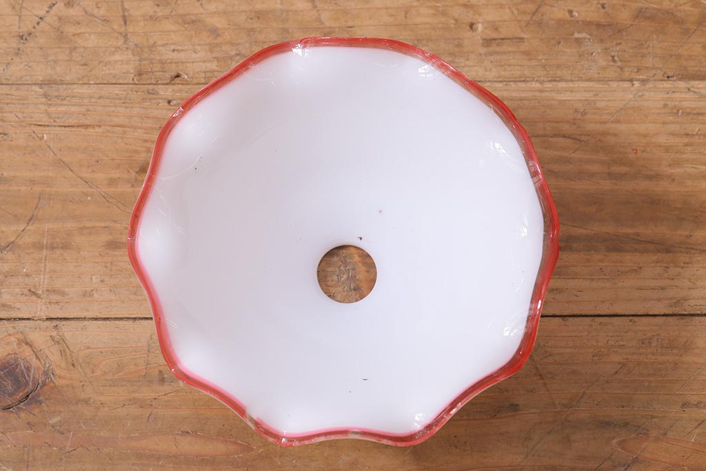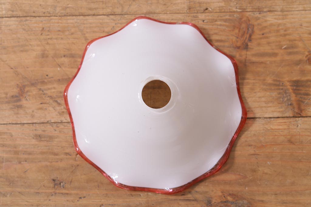 ヴィンテージ照明 イギリスビンテージ 赤い縁のフリルがアクセントになった三角シェードのペンダントライト(吊り下げ照明、天井照明、シェード)(R-040179)