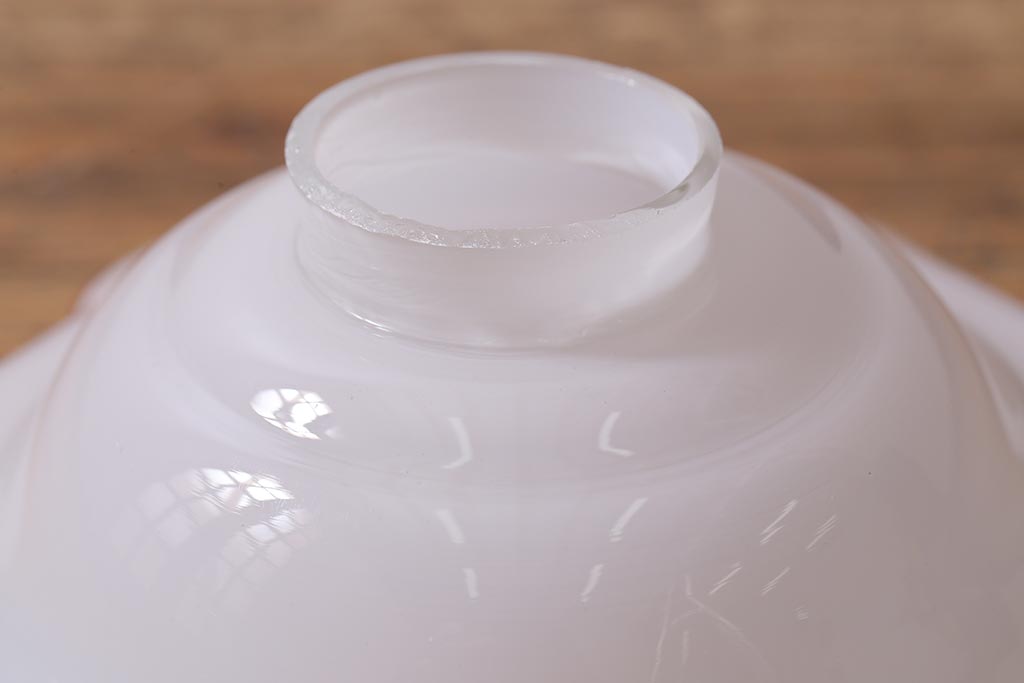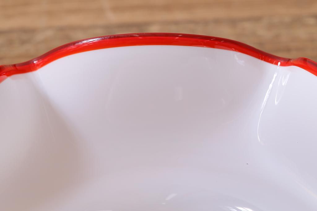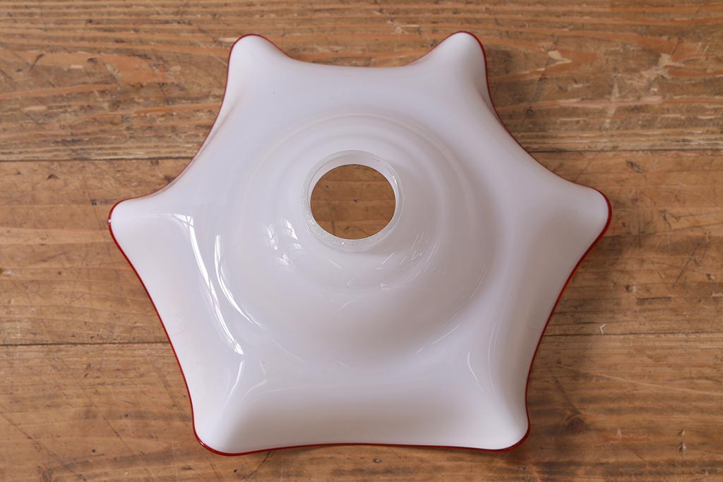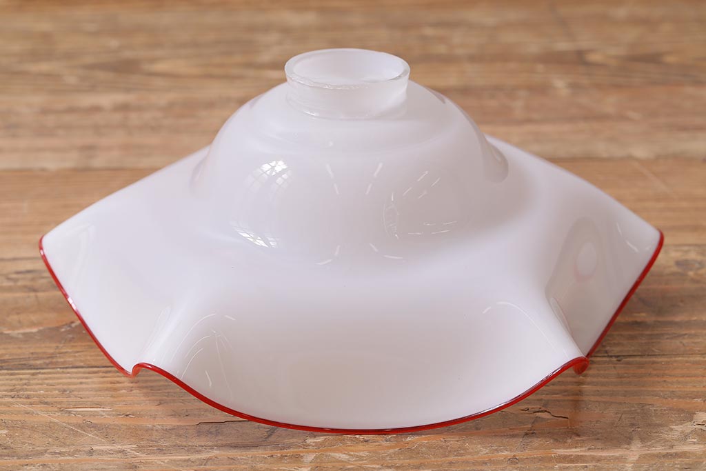 ビンテージ照明 和製ビンテージ 昭和中期 赤縁フリル レトロなミルクガラスの吊り下げ照明(ペンダントライト、天井照明、シェード、電笠)(R-040176)