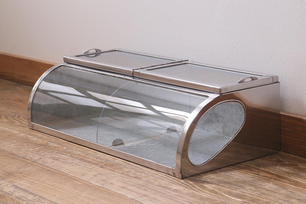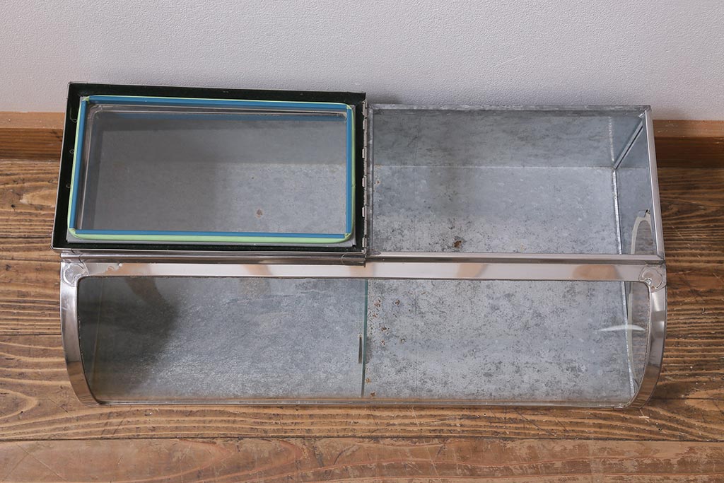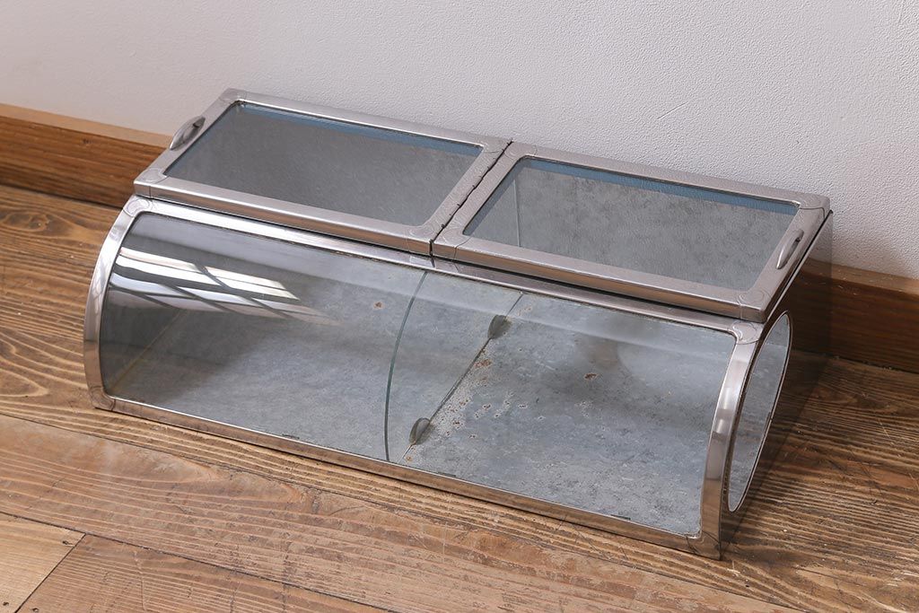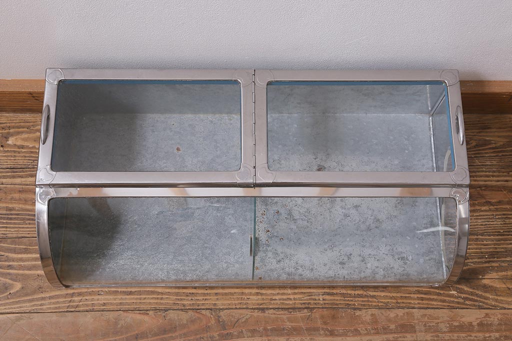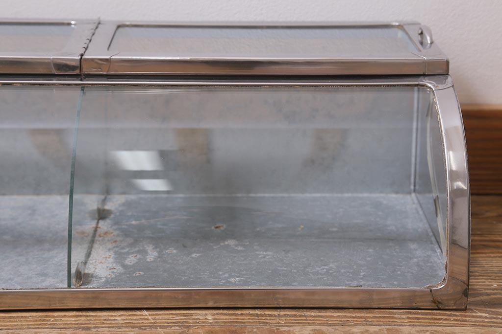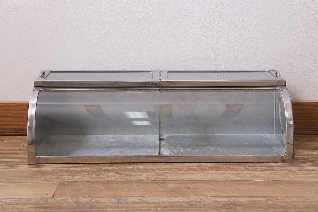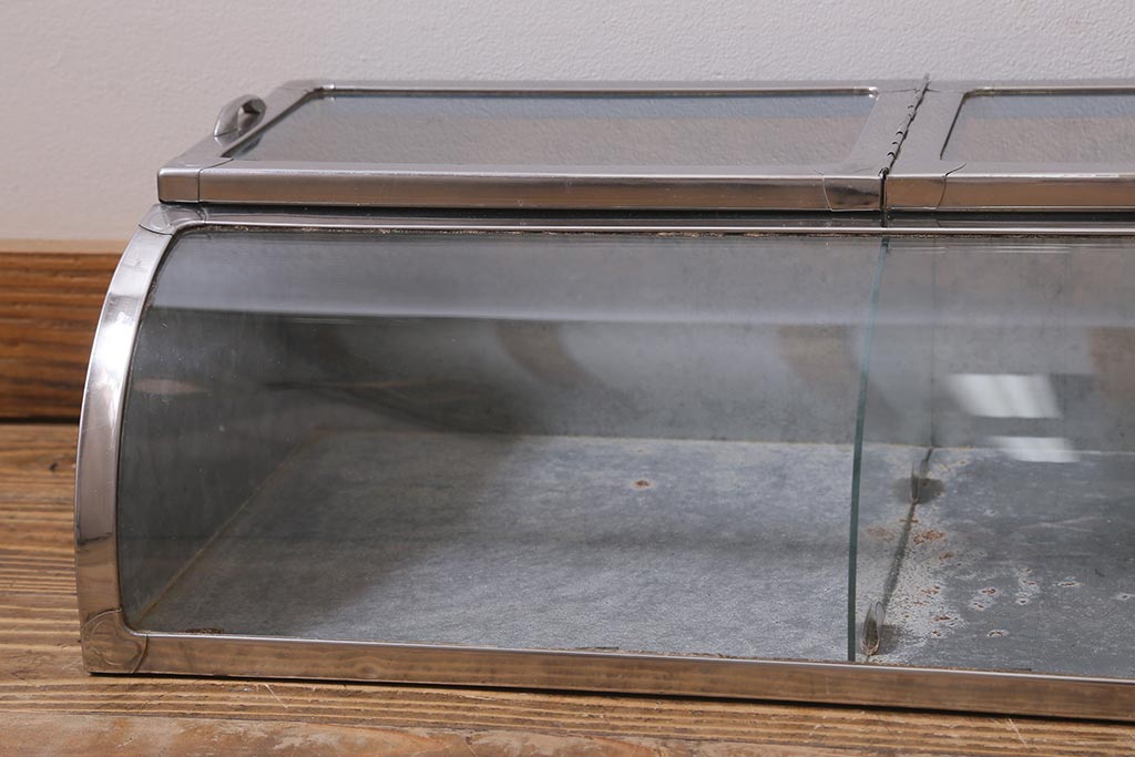 アンティーク家具 昭和レトロ 丸みのあるフォルムが魅力のブリキガラスケース(ショーケース)(R-040171)です。