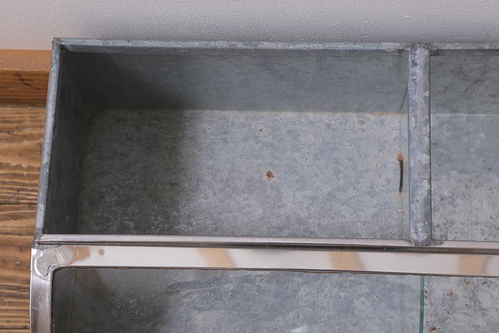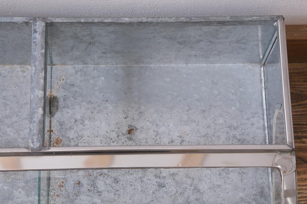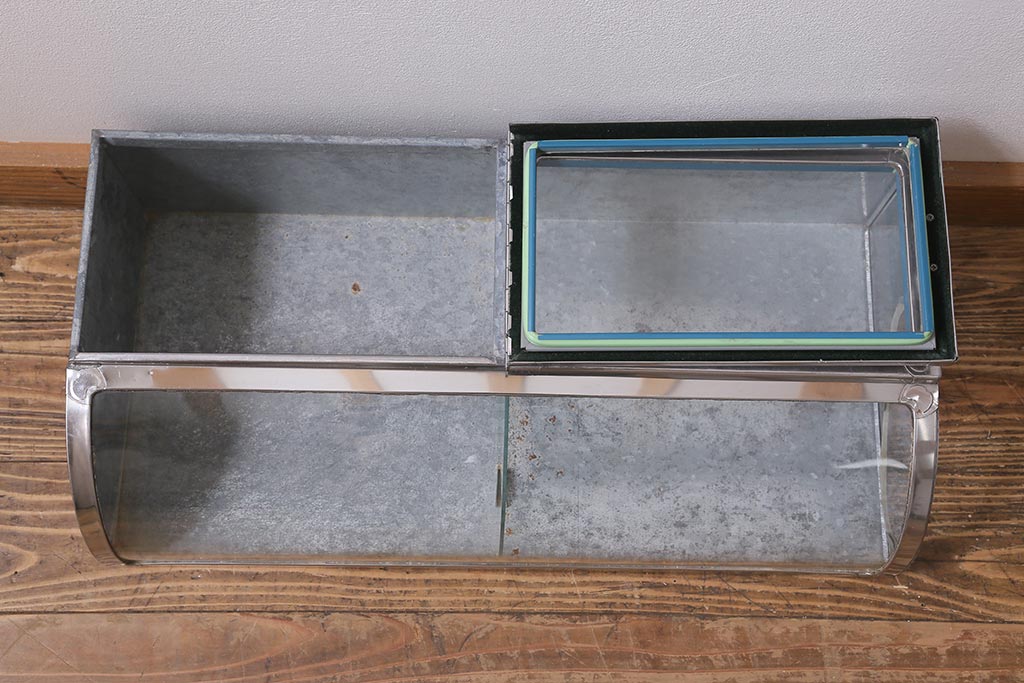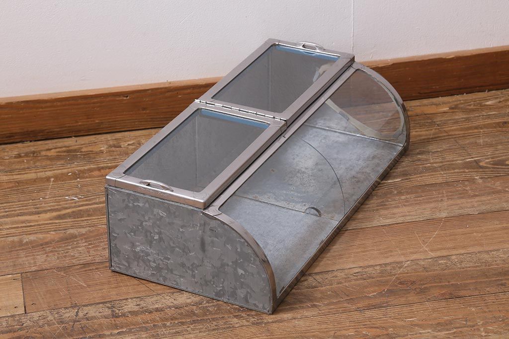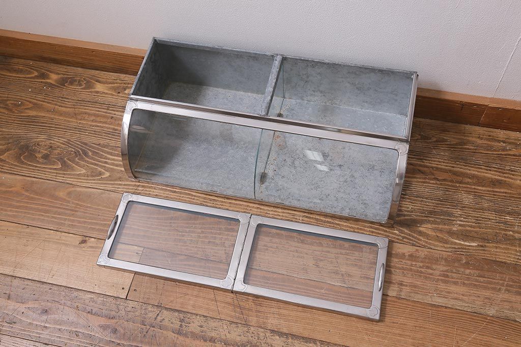 雑貨> ブリキ缶 > アンティーク家具 昭和レトロ 丸みのあるフォルムが魅力のブリキガラスケース(ショーケース)(R-040171)