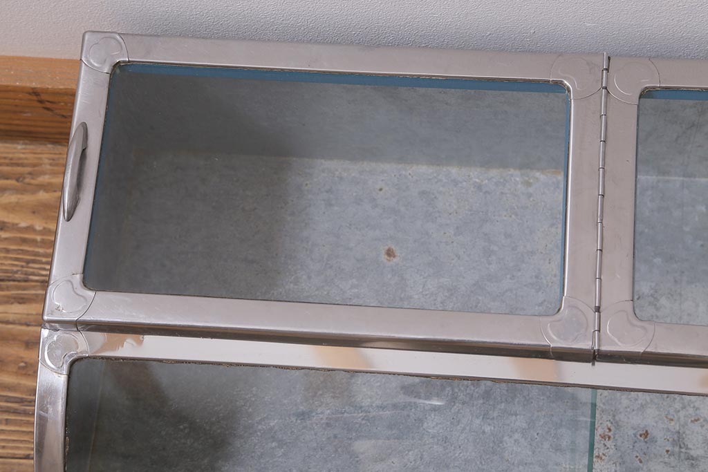 ガラスケース・ショーケース > アンティーク家具 昭和レトロ 丸みのあるフォルムが魅力のブリキガラスケース(ショーケース)(R-040171)