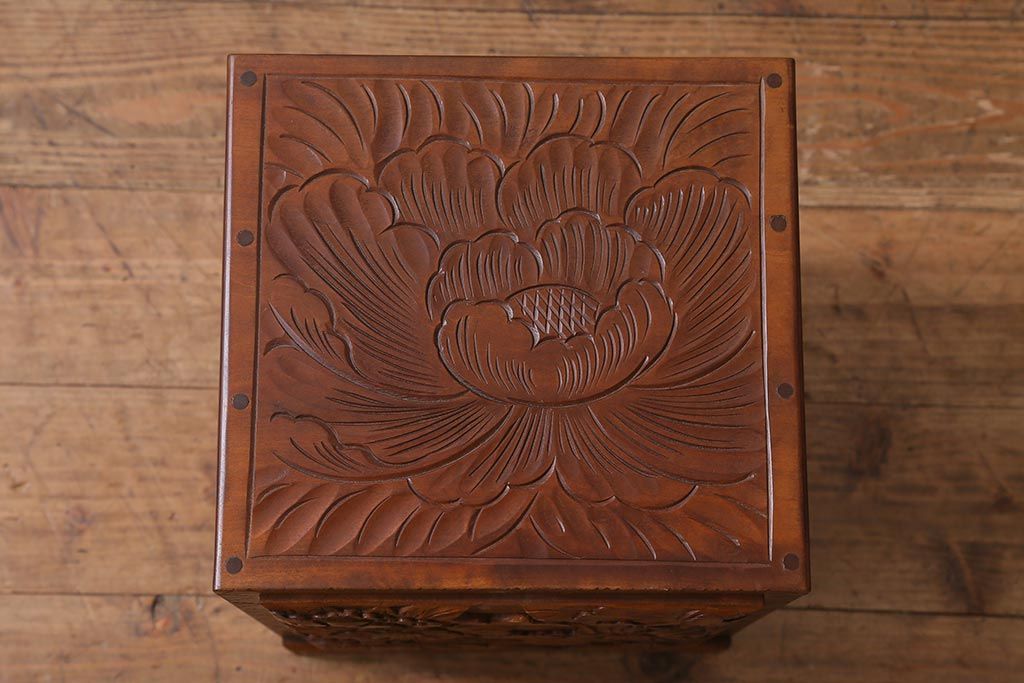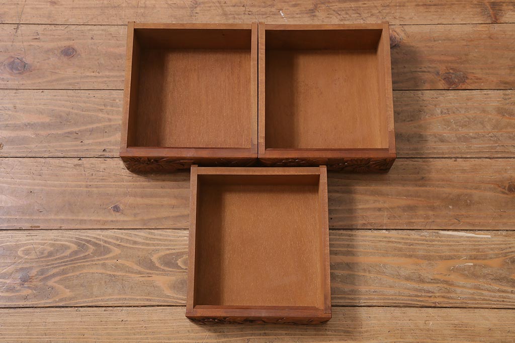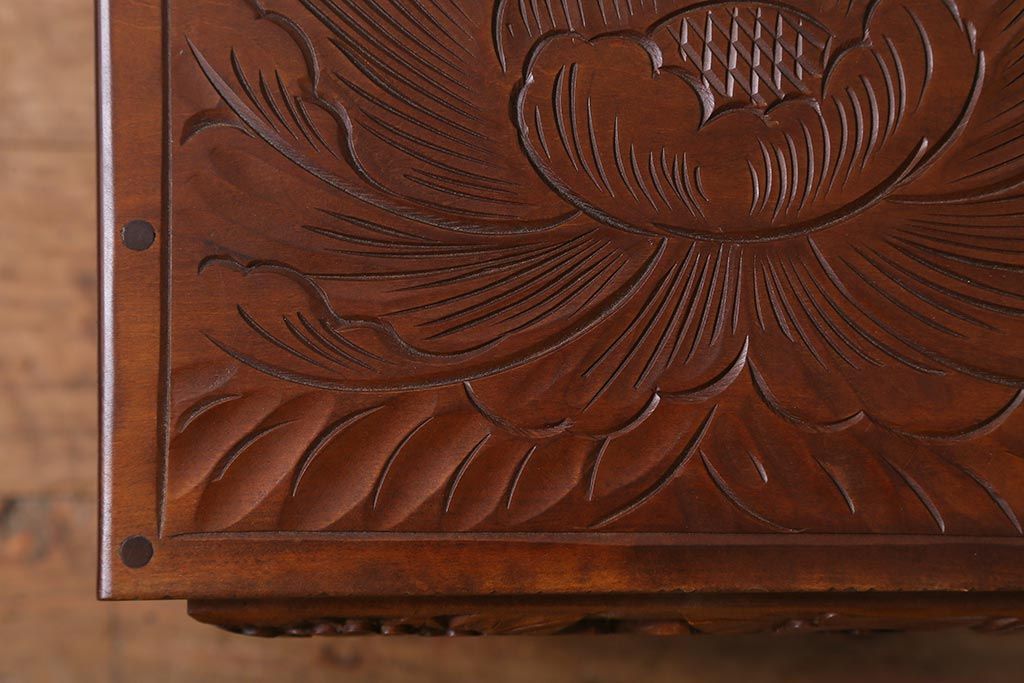 中古 伝統工芸 日光彫り 華やかな花の意匠が目を惹く小引き出し(小物収納)(R-040166)です。