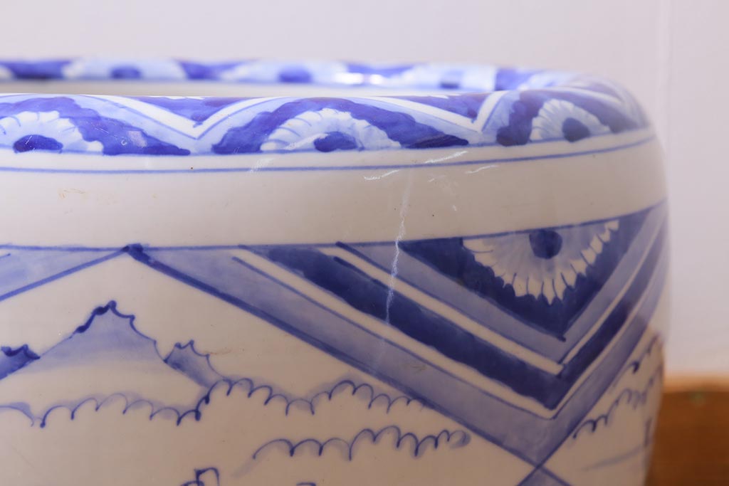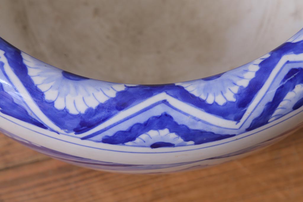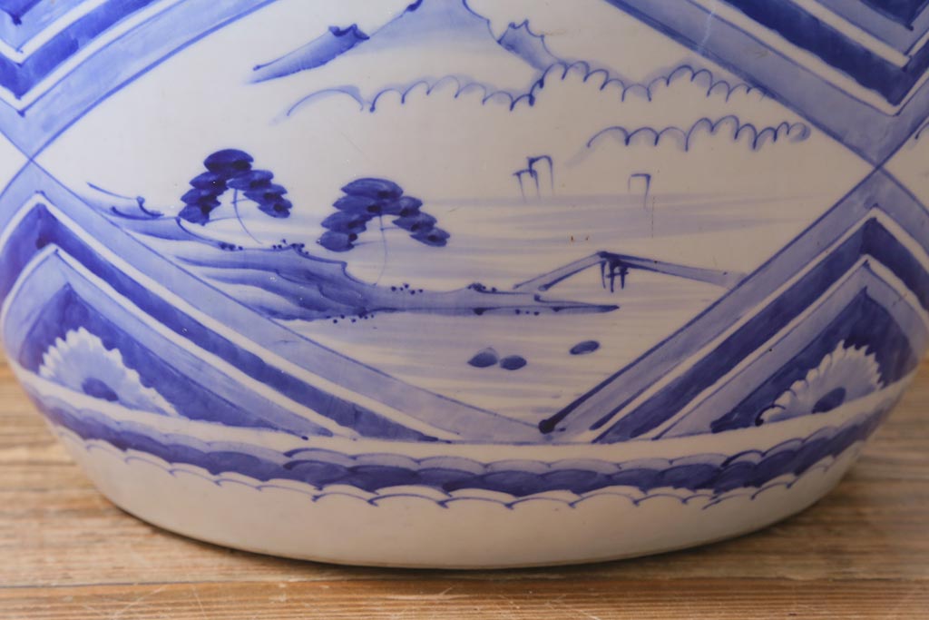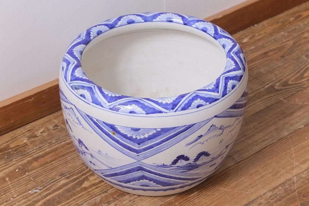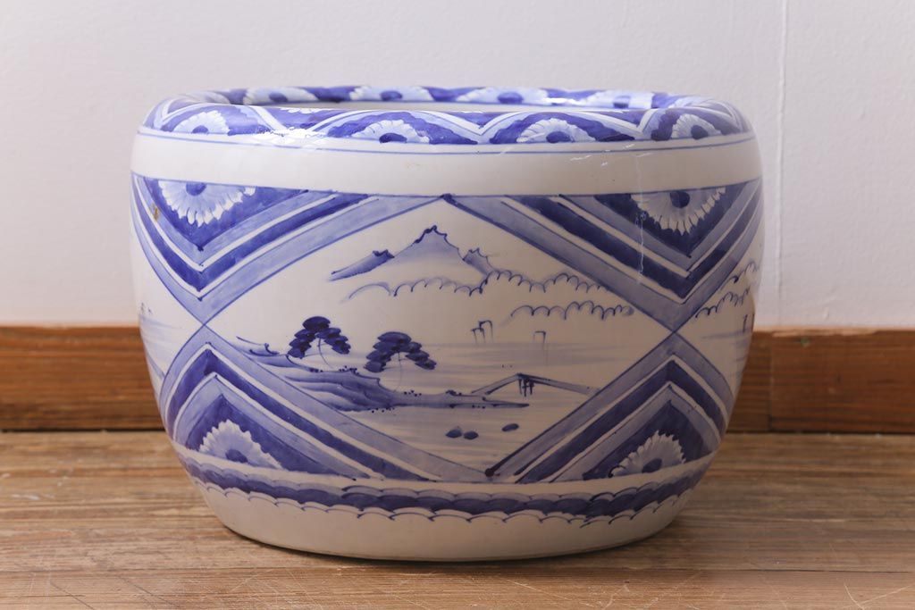 火鉢> 瀬戸火鉢 > アンティーク雑貨 昭和中期 山水図 和モダンな雰囲気漂う瀬戸火鉢(鉢カバー)(R-040173)