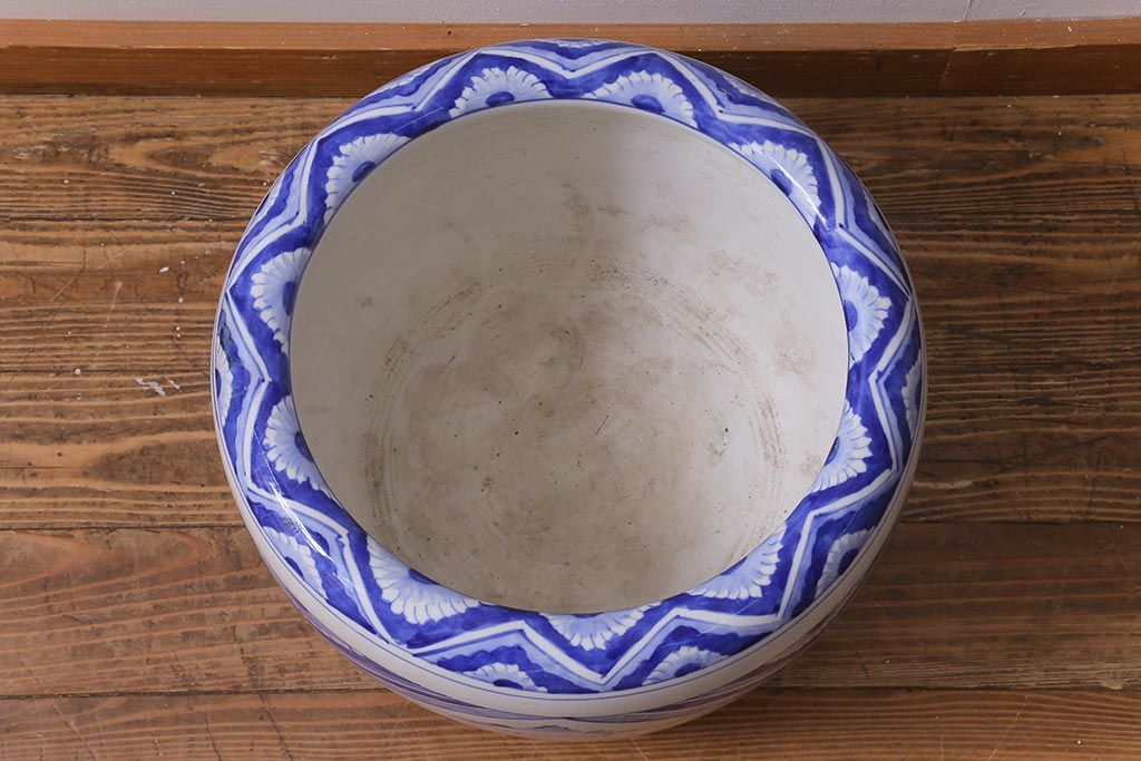アンティーク雑貨 昭和中期 山水図 和モダンな雰囲気漂う瀬戸火鉢(鉢カバー)(R-040173)