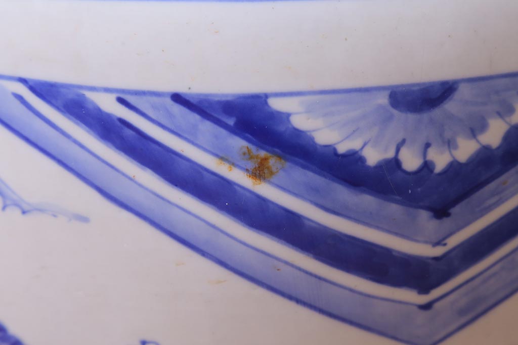 山水図を囲むように描かれたくっきりとしたデザインとも