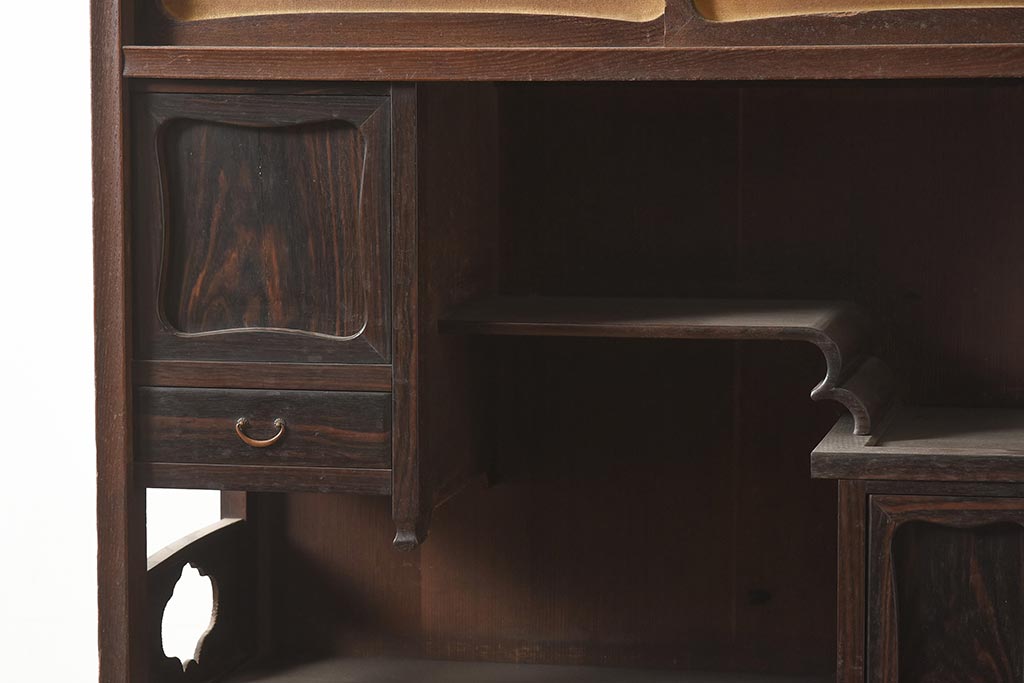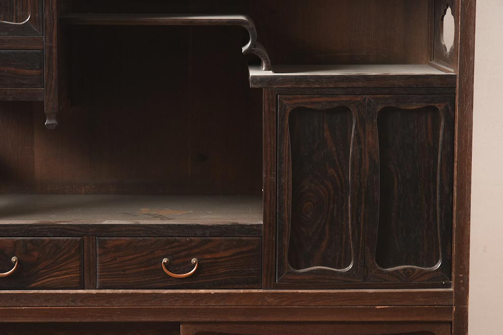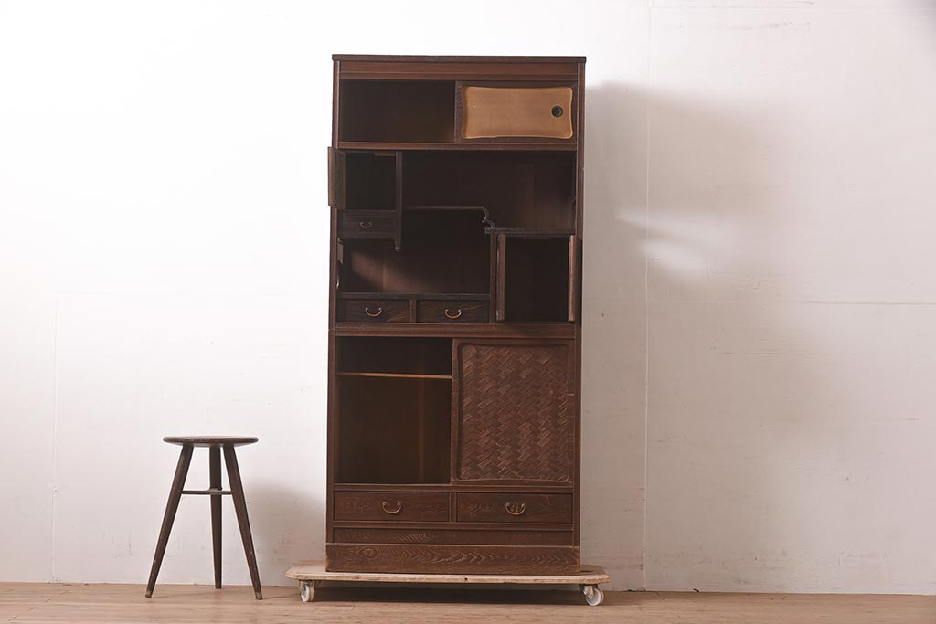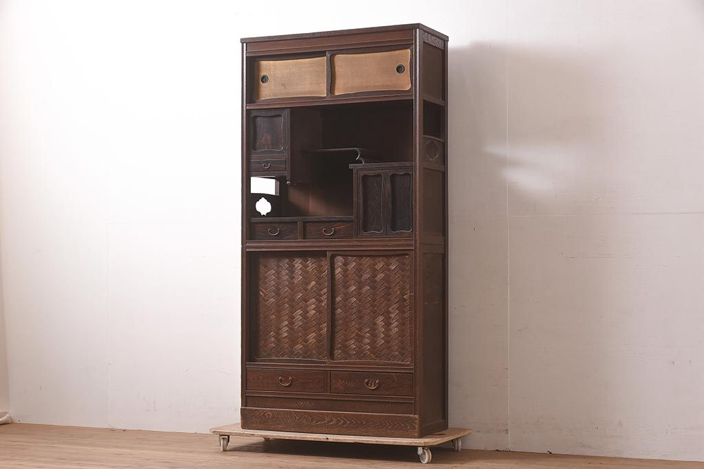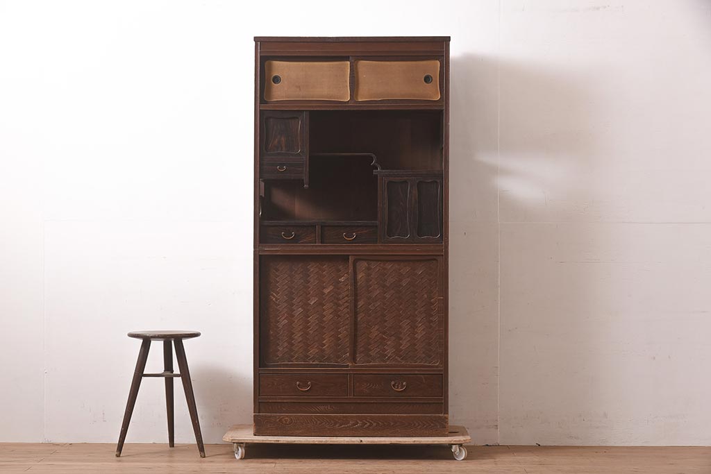 アンティーク家具 工芸家具 京都産 桑材・黒檀材 網代編み戸 上品な造りの茶棚(茶箪笥、収納棚)(R-040282)です。