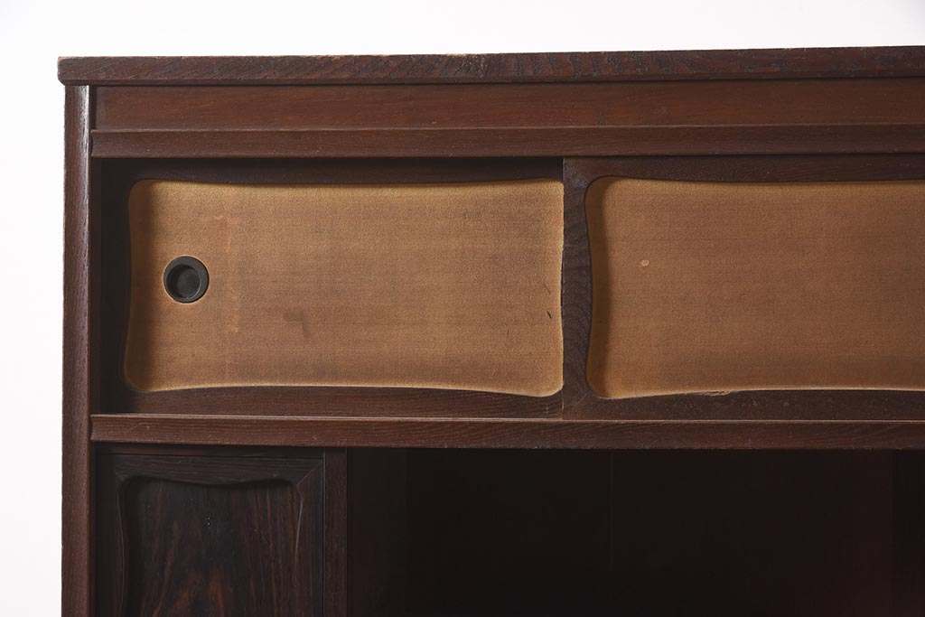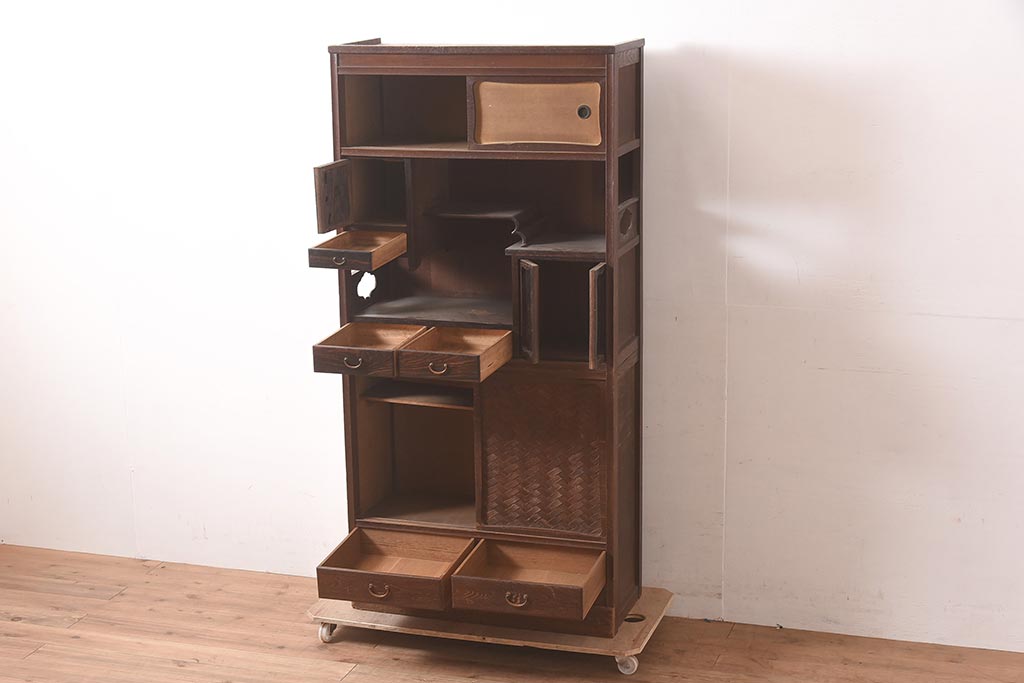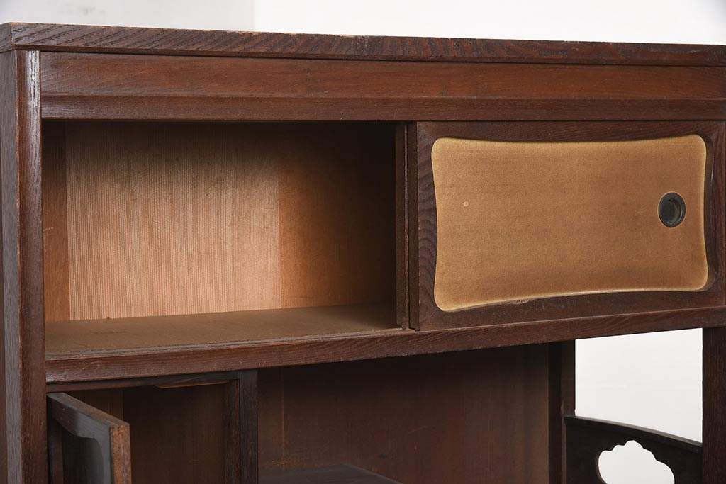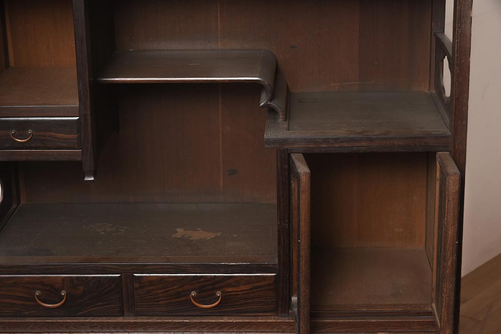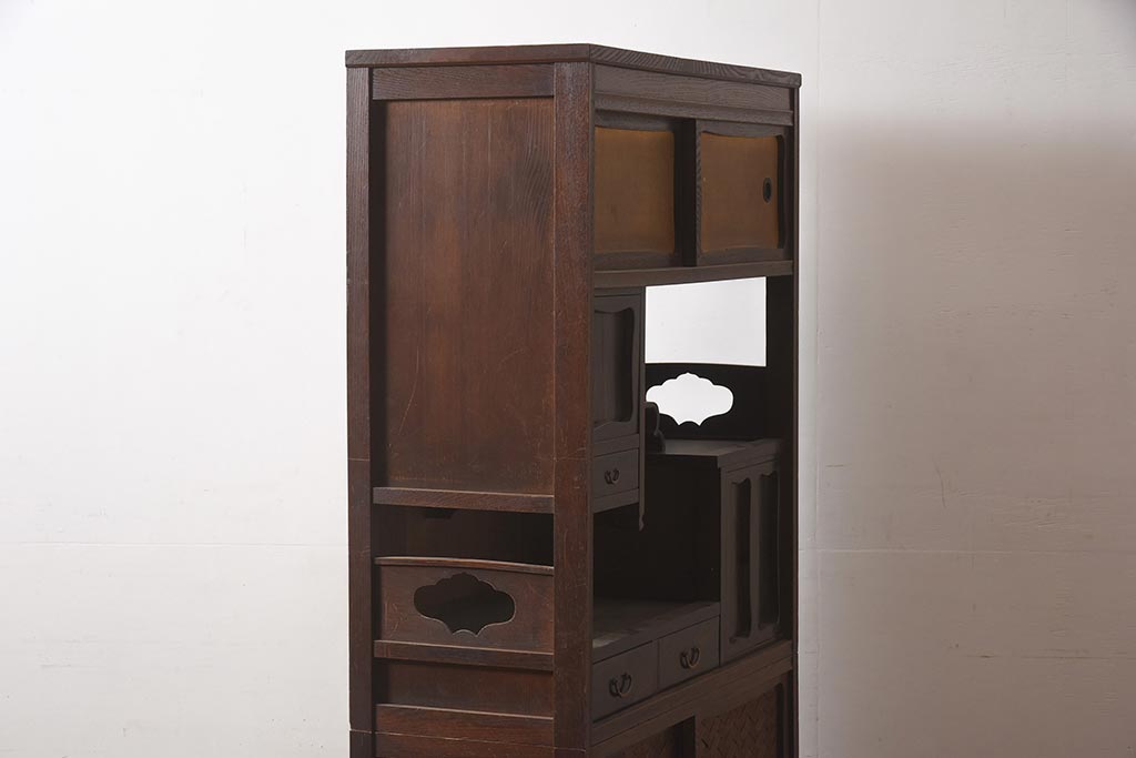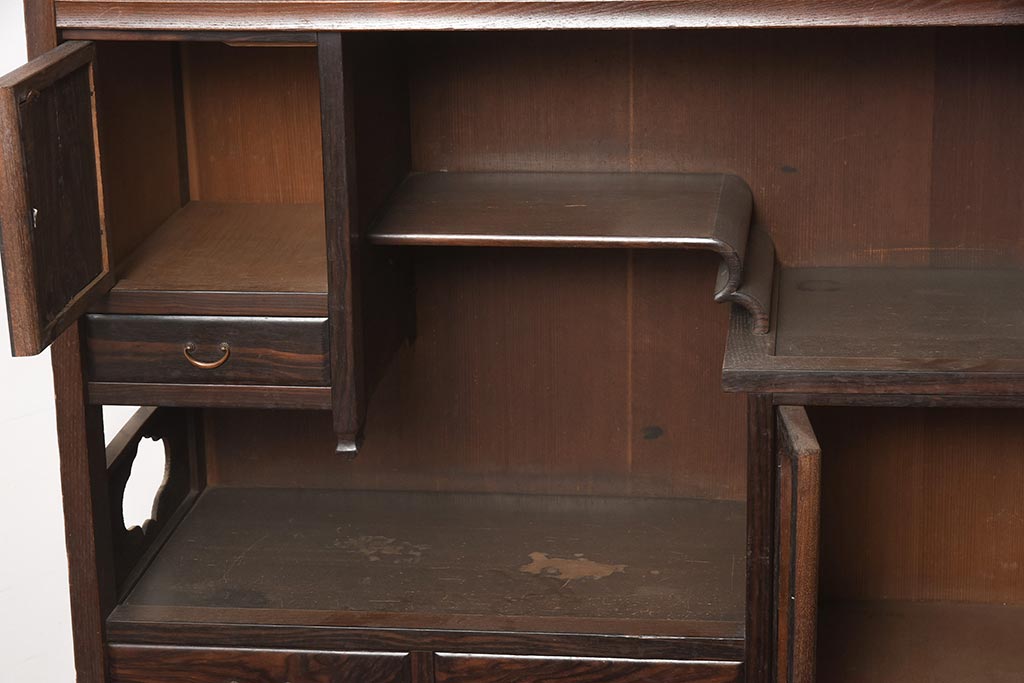 アンティーク家具 工芸家具 京都産 桑材・黒檀材 網代編み戸 上品な造りの茶棚(茶箪笥、収納棚)(R-040282)です。
