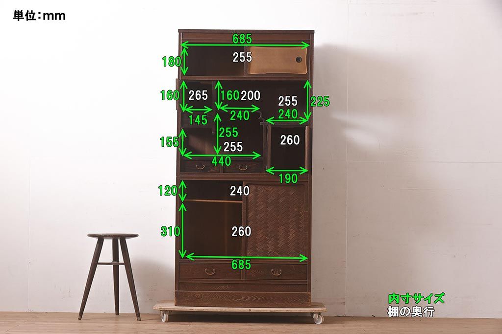 棚の内寸は4枚目の画像に記載しておりますのでそちらをご参考ください。