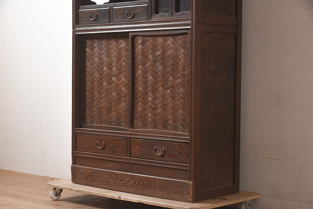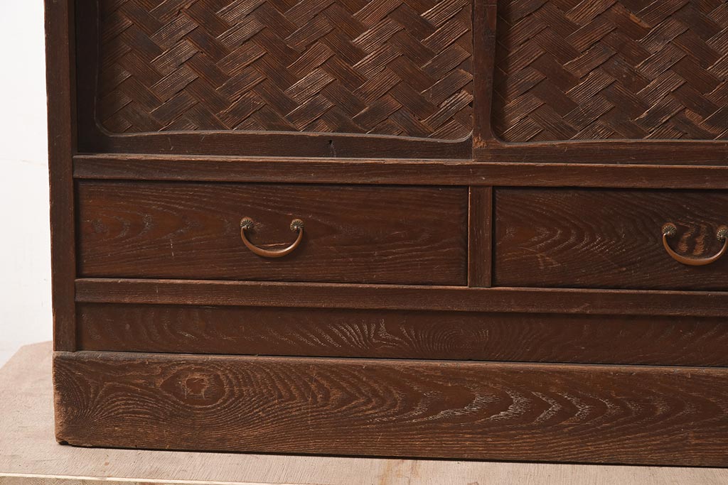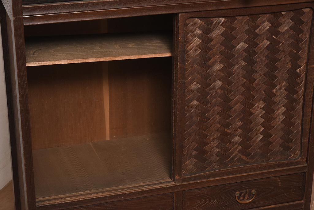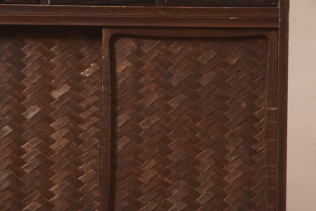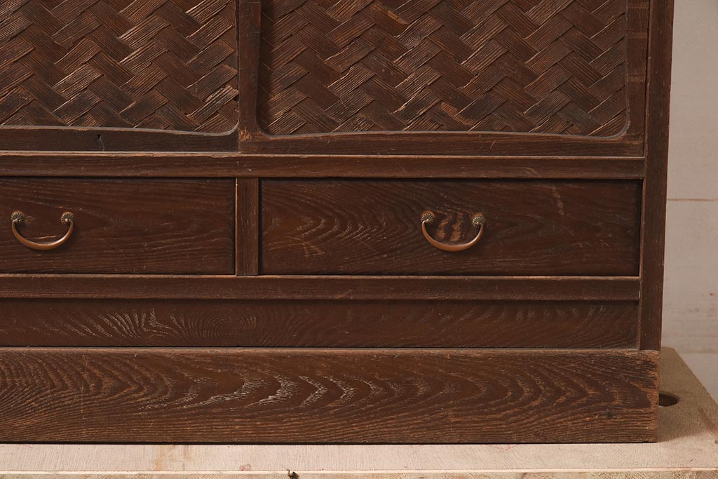 下段は網代編みが目を引く戸棚になっており、