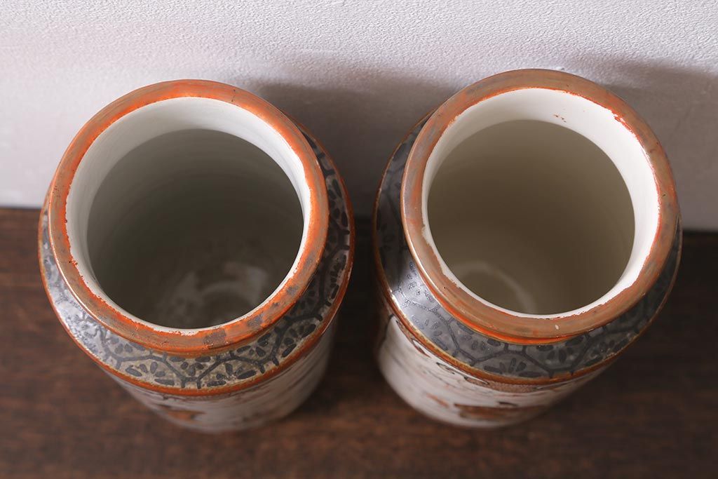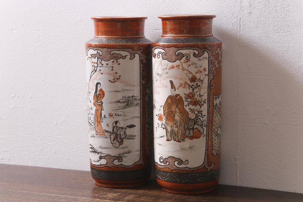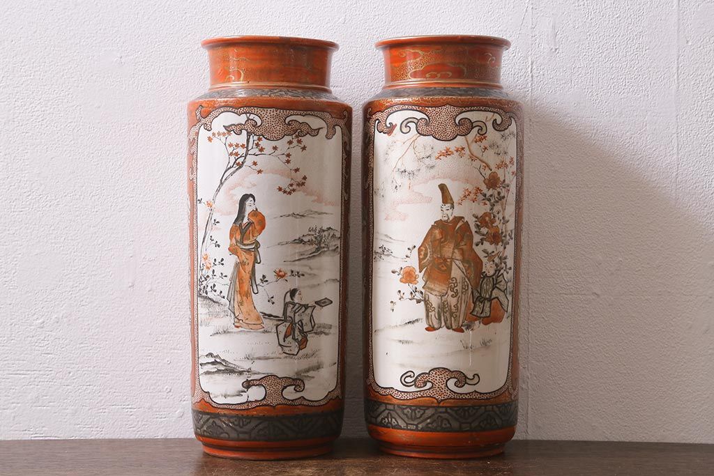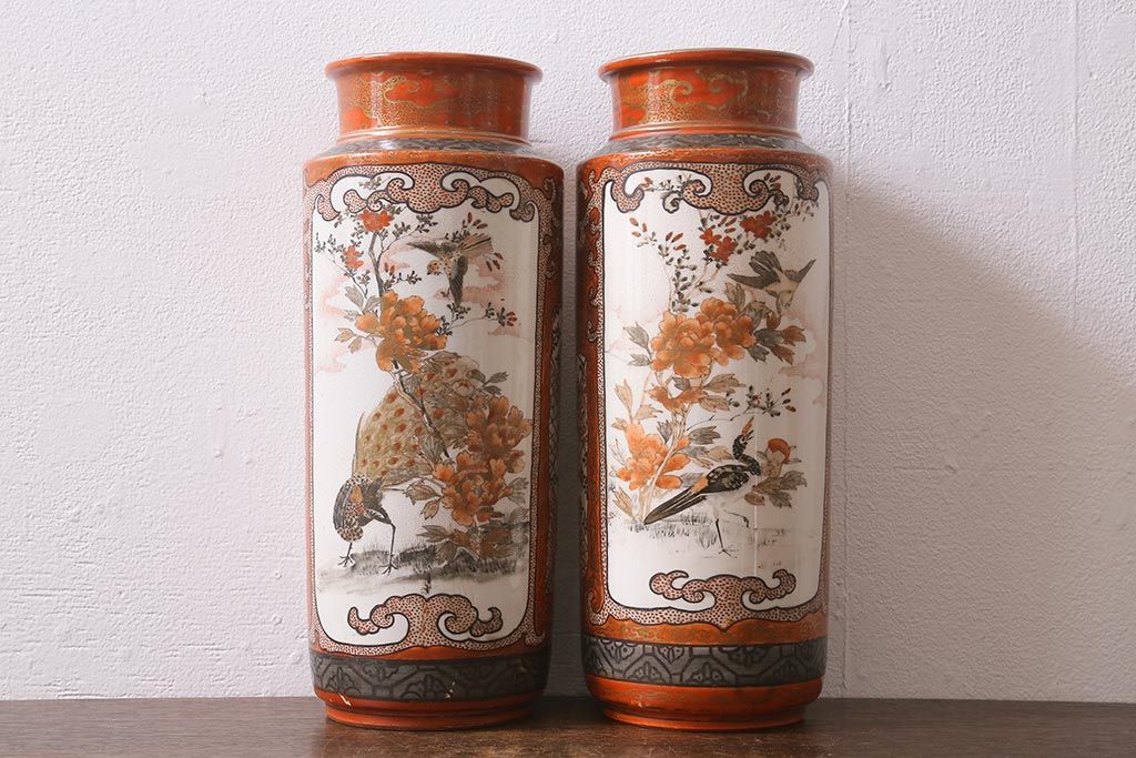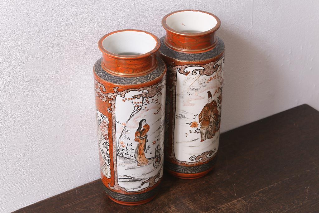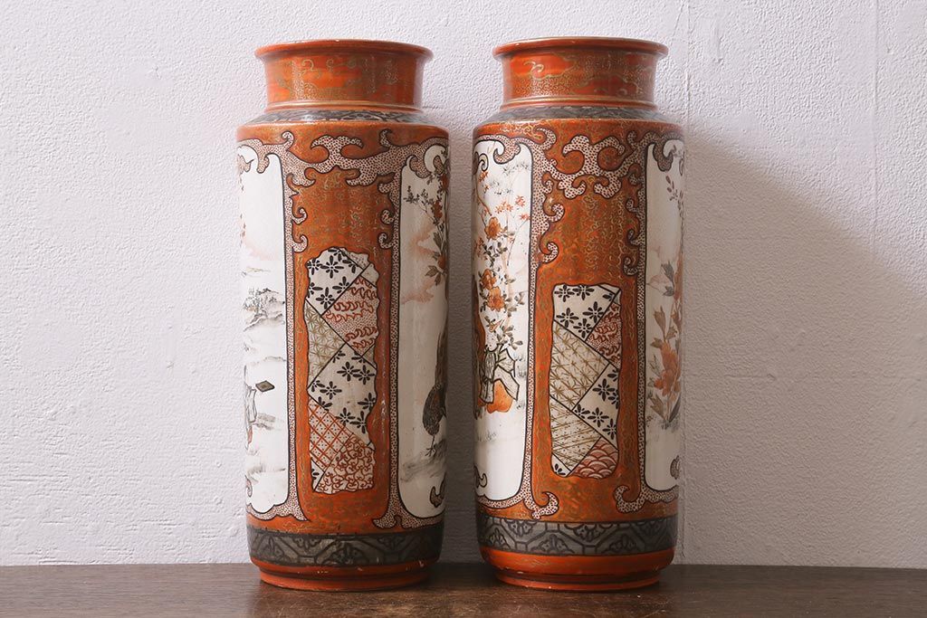 ラフジュ工房> 骨董・美術品 > 古民具・骨董 明治期 九谷焼 赤絵花瓶一対(花器)(R-039991)