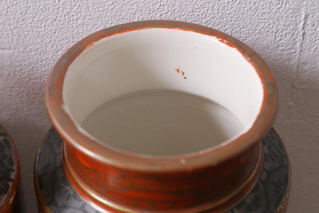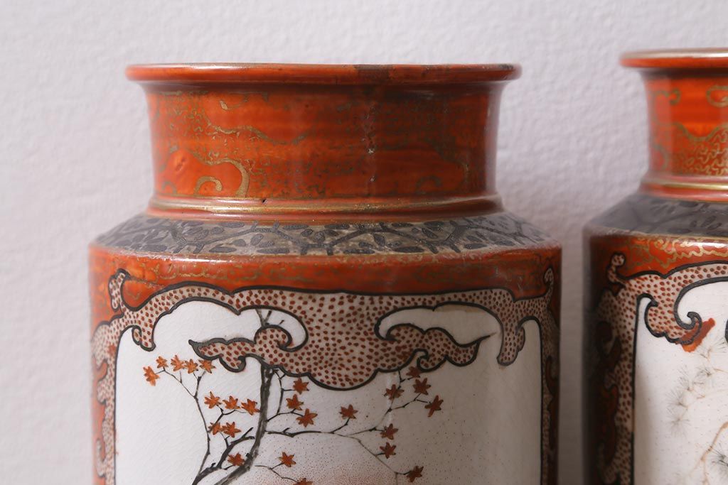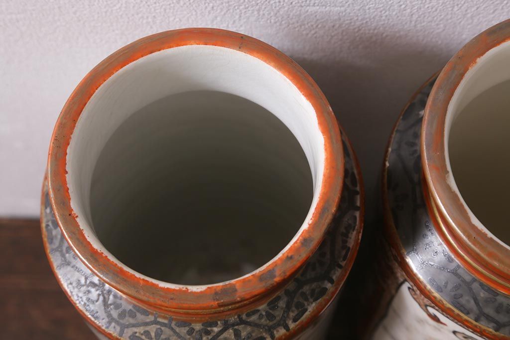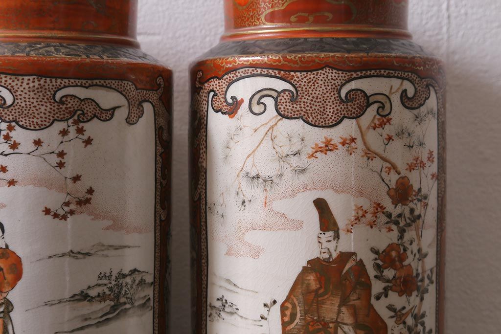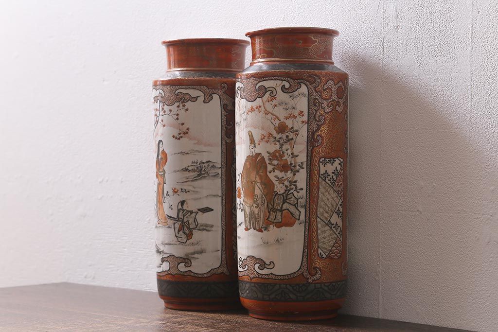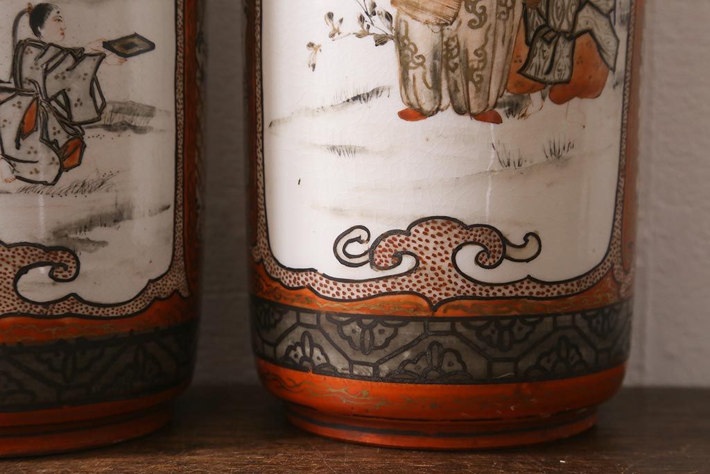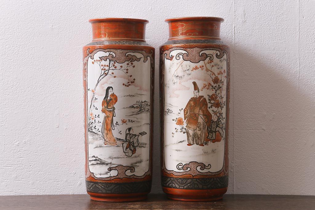 ラフジュ工房> 骨董・美術品 > 古民具・骨董 明治期 九谷焼 赤絵花瓶一対(花器)(R-039991)