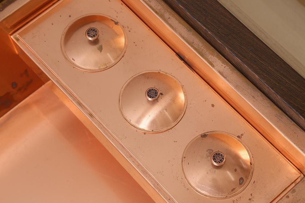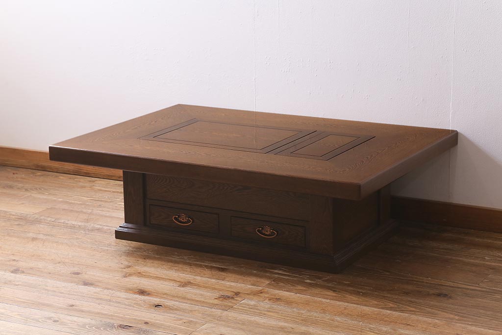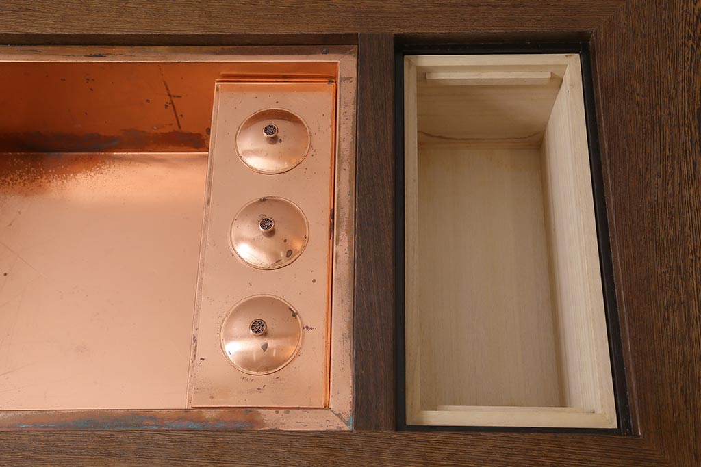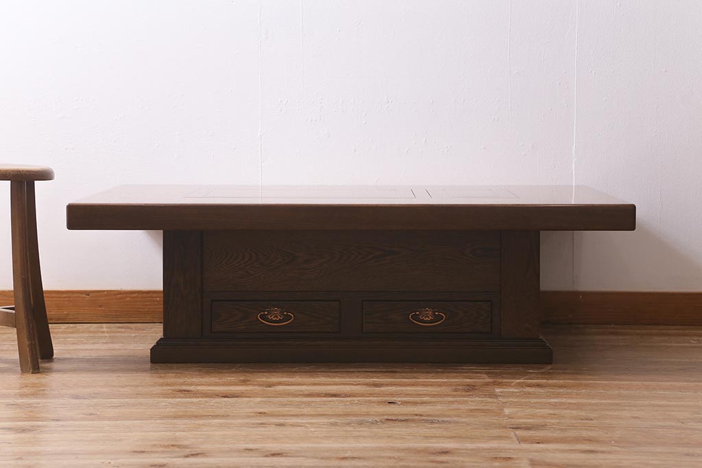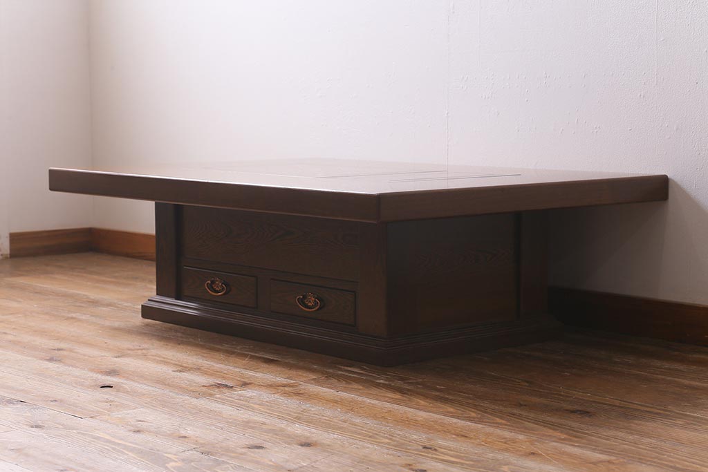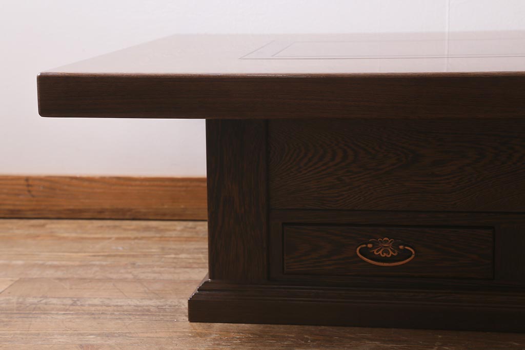 テーブル> 座卓 > 中古 最高級品 鉄刀木(タガヤサン)無垢材 内部銅製 美しい木目が魅力の関西火鉢(ローテーブル、長火鉢、座卓、リビングテーブル、囲炉裏)(R-040239)