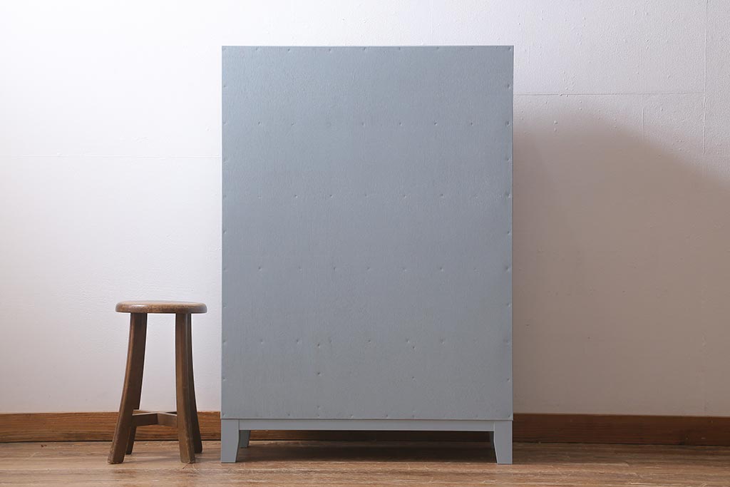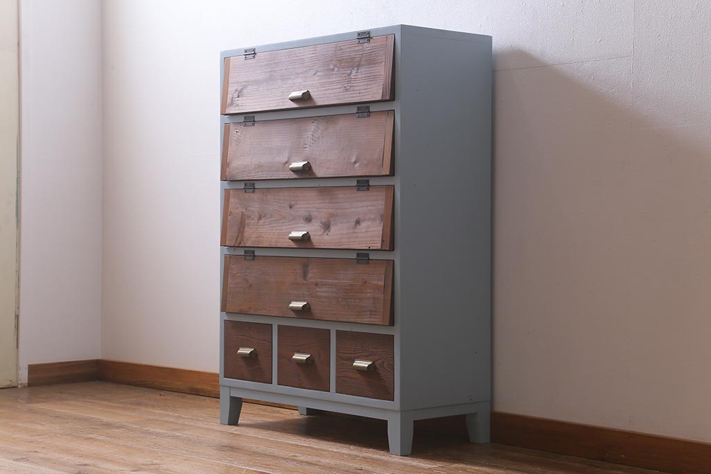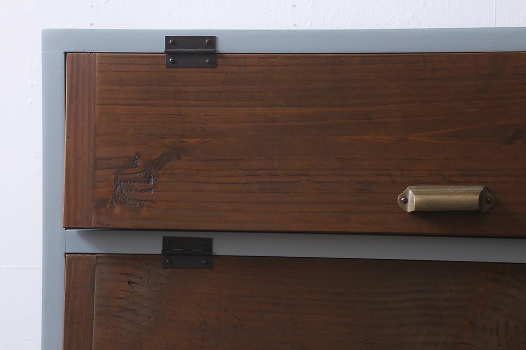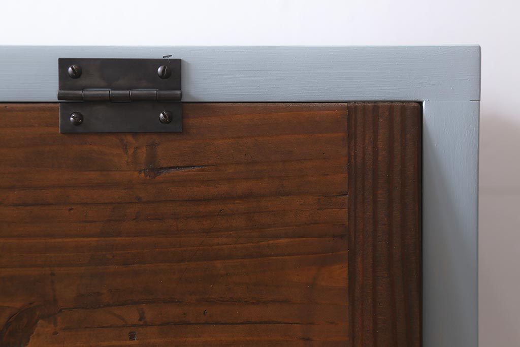 ラフジュ工房オリジナル 古材リメイク ペイント家具 引き出し付き パタパタ扉のおしゃれな脚付き下駄箱(収納棚)(R-040241)です。