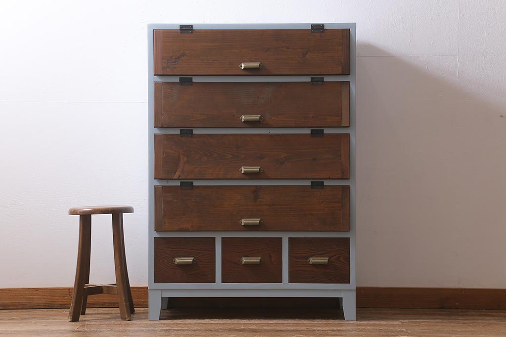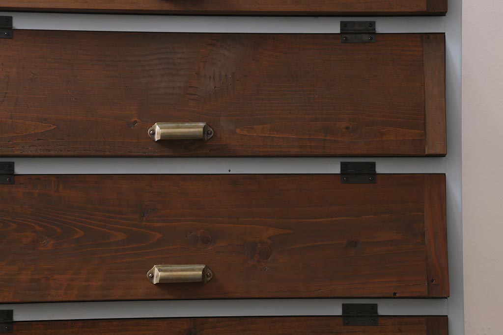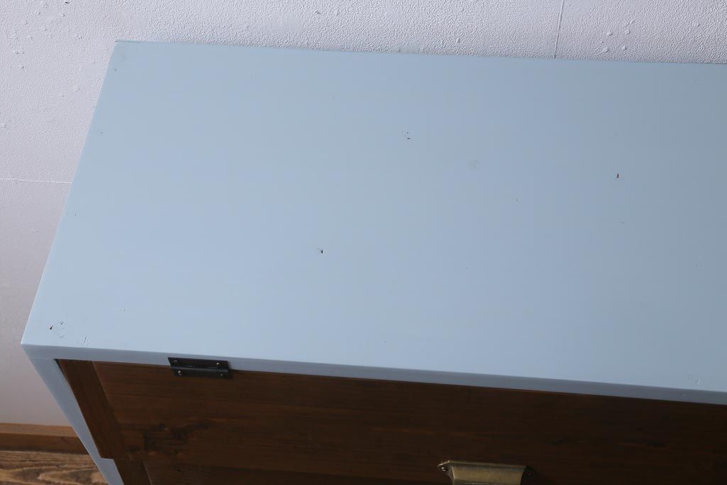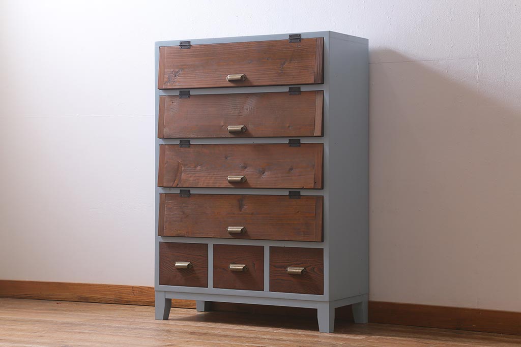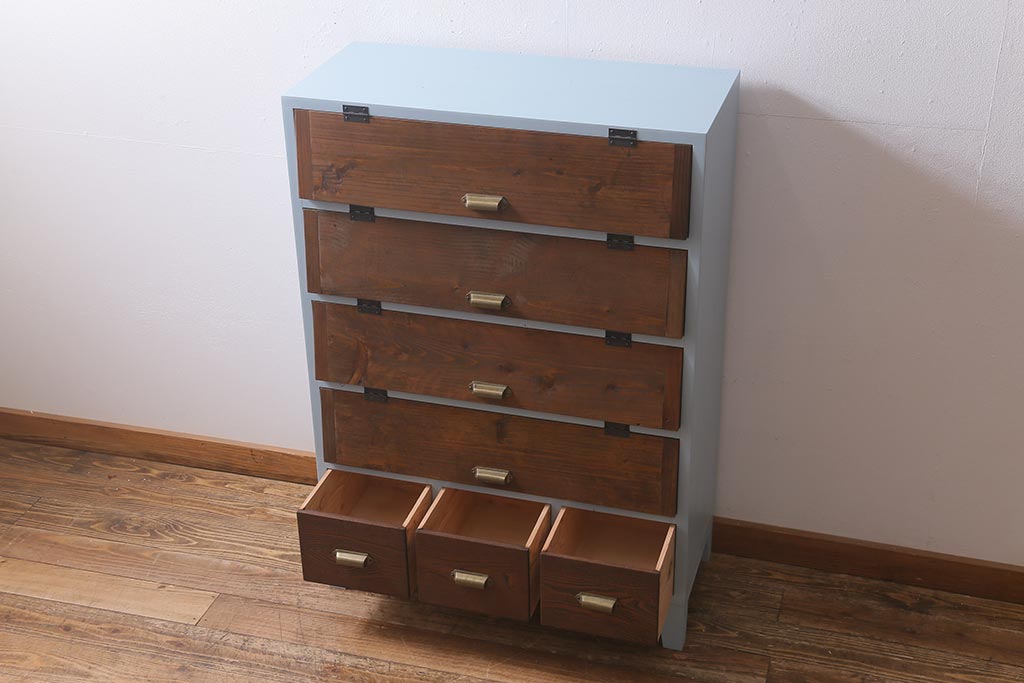 ラフジュ工房オリジナル 古材リメイク ペイント家具 引き出し付き パタパタ扉のおしゃれな脚付き下駄箱(収納棚)(R-040241)です。