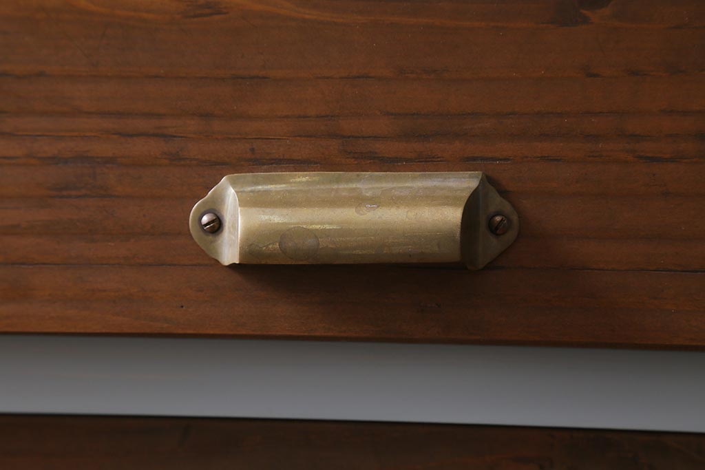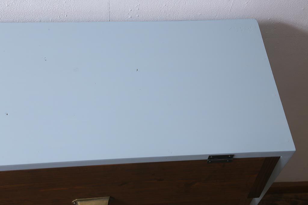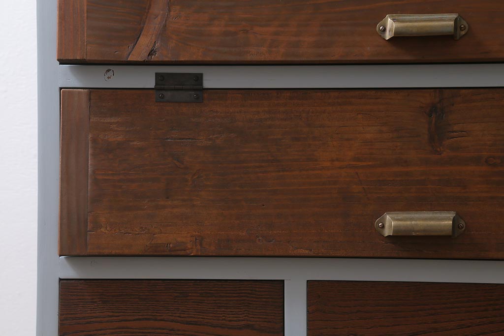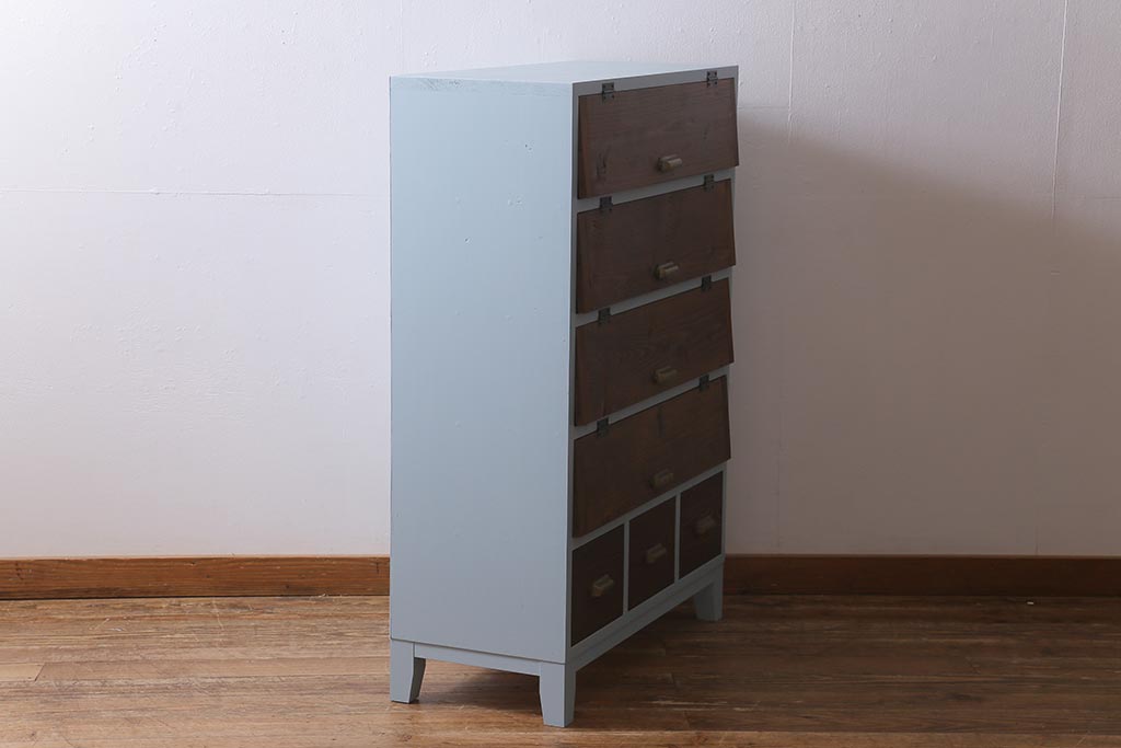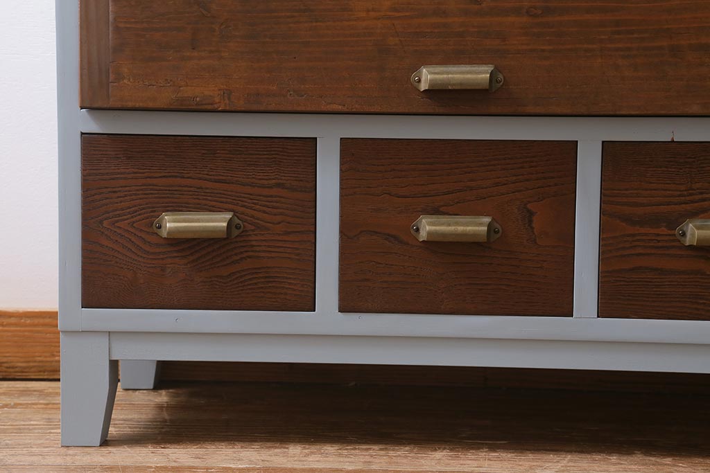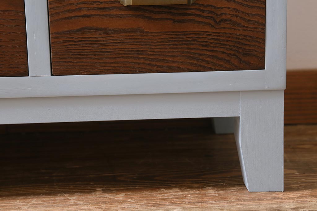 ラフジュ工房オリジナル 古材リメイク ペイント家具 引き出し付き パタパタ扉のおしゃれな脚付き下駄箱(収納棚)(R-040241)