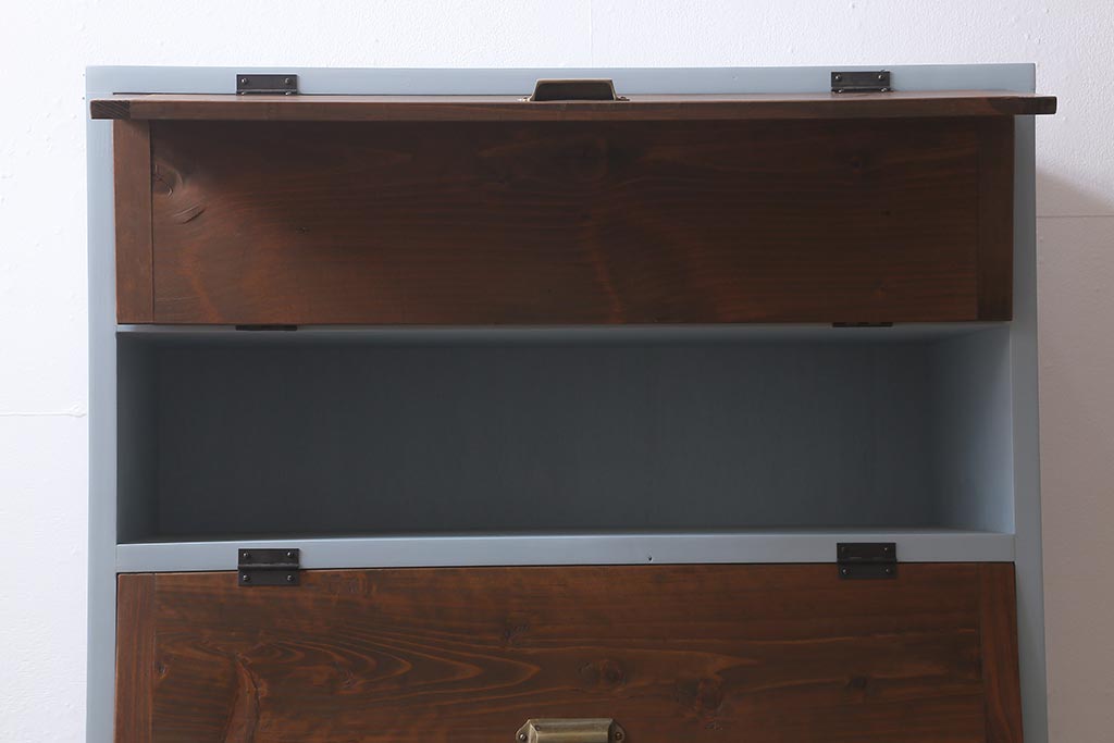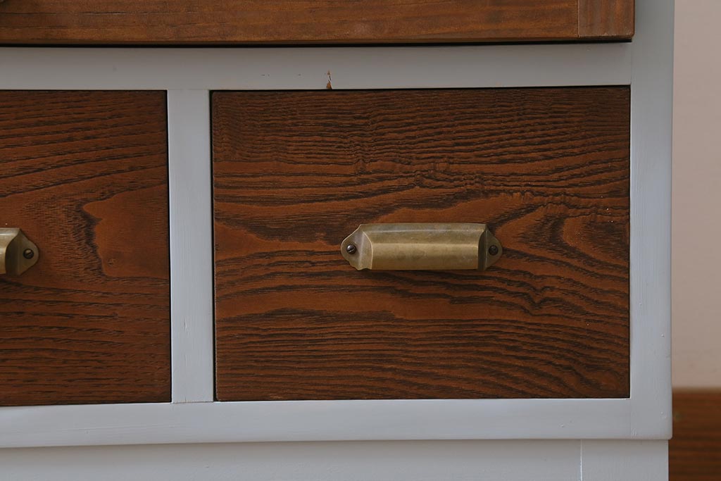 キャビネット・戸棚> 下駄箱 > ラフジュ工房オリジナル 古材リメイク ペイント家具 引き出し付き パタパタ扉のおしゃれな脚付き下駄箱(収納棚)(R-040241)