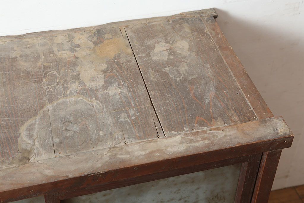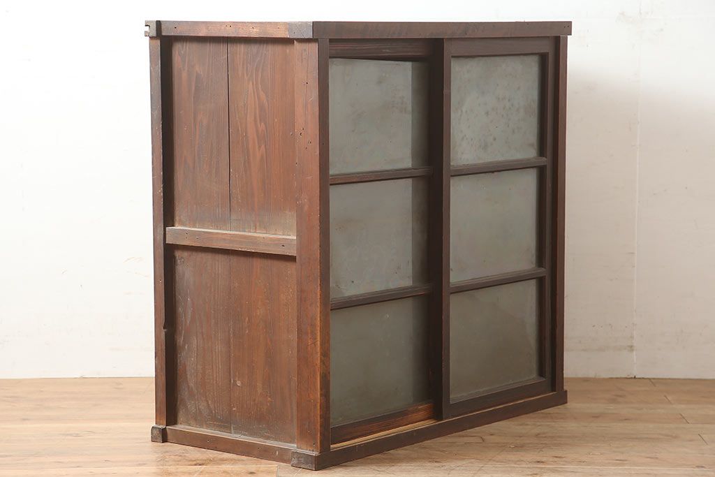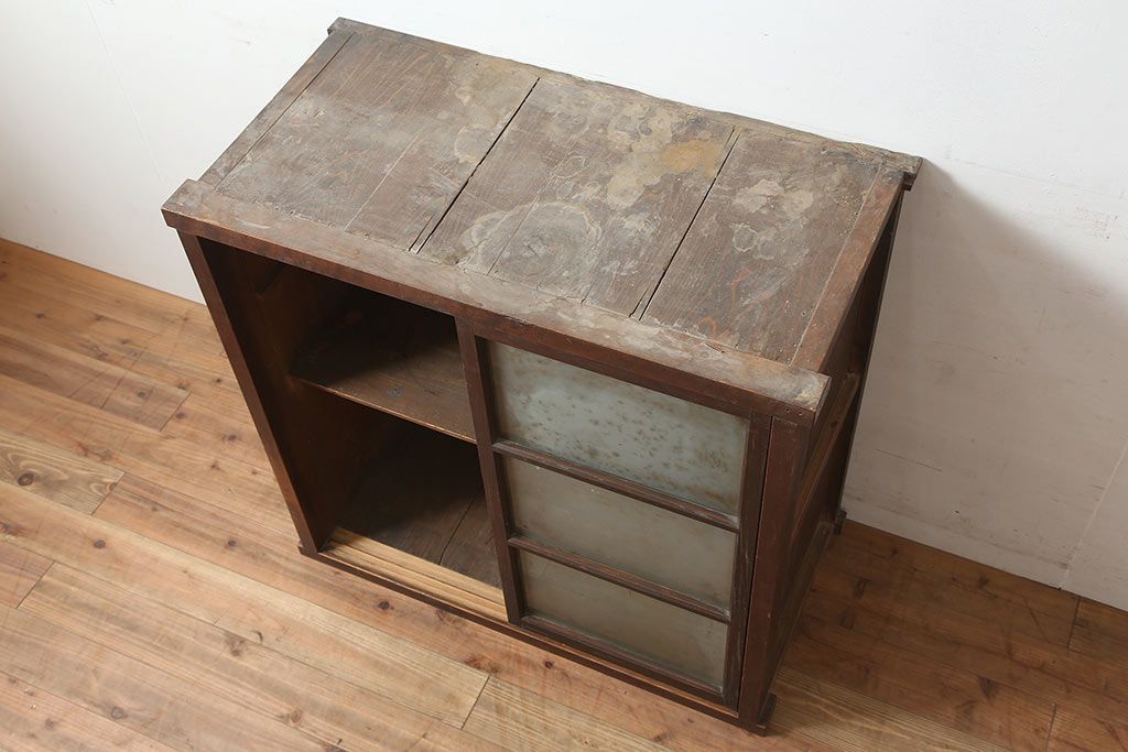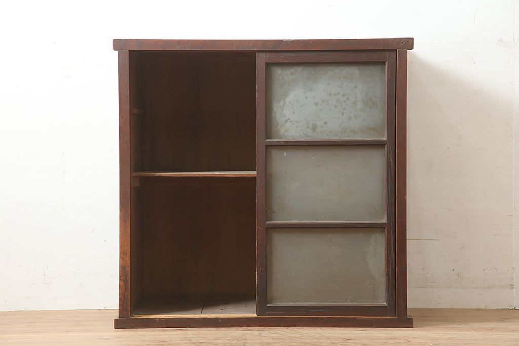 アンティーク家具 ヒノキ・杉材 シンプルで取り入れやすい重ね戸棚・上段(収納棚、キャビネット)(R-040271)