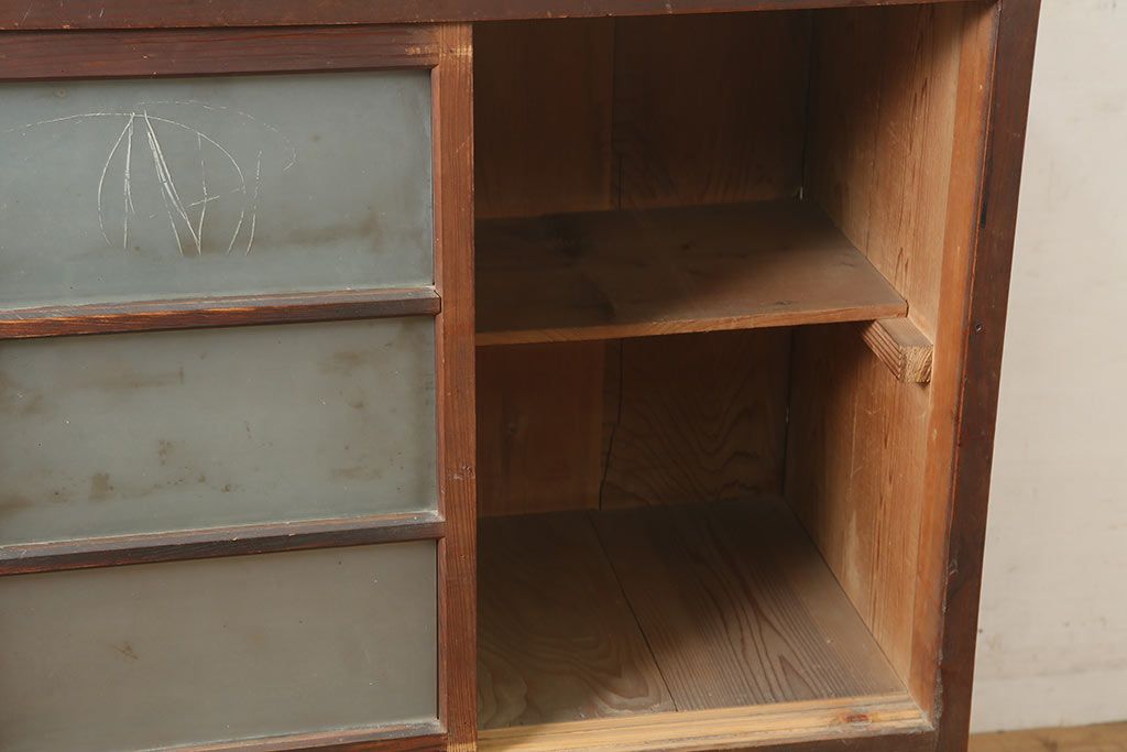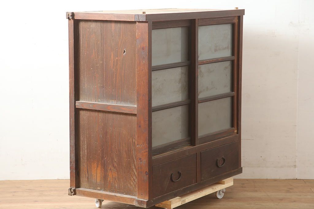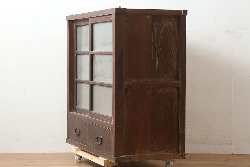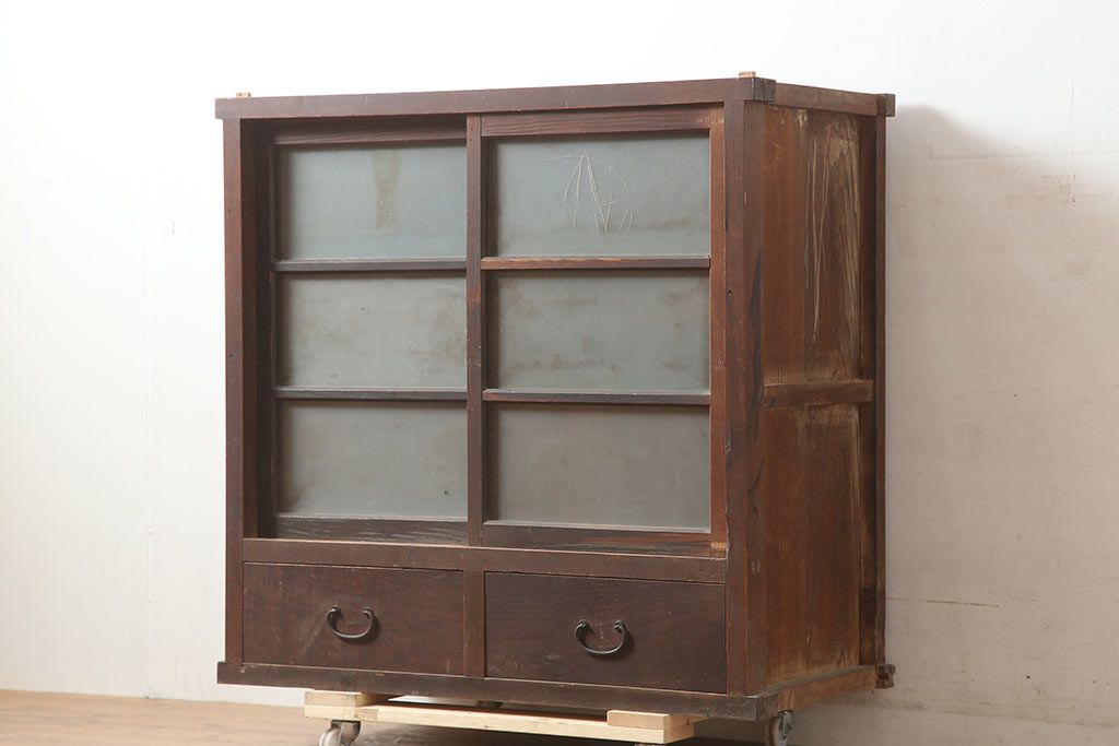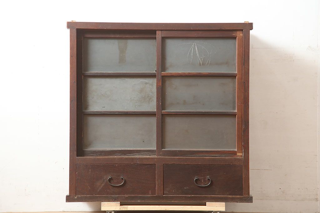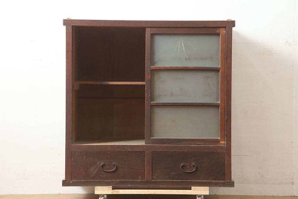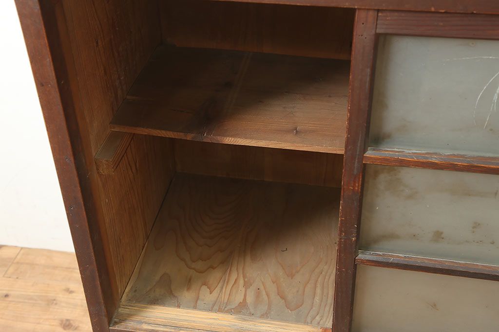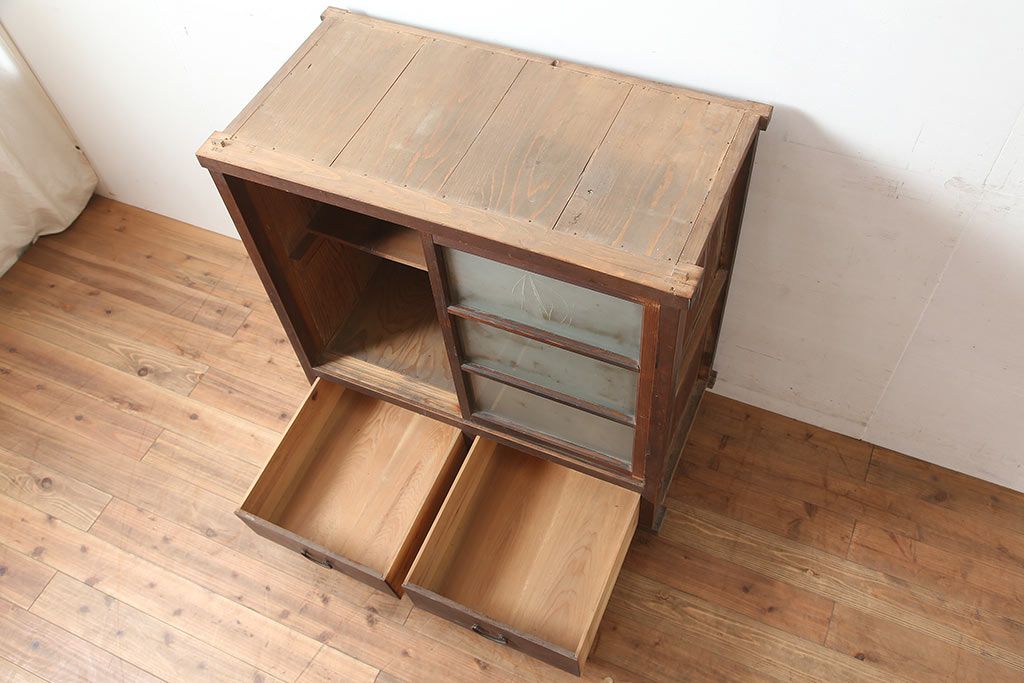 アンティーク家具 ヒノキ・杉材 シンプルで取り入れやすい引き出し付きの重ね戸棚・下段(収納棚、キャビネット)(R-040272)