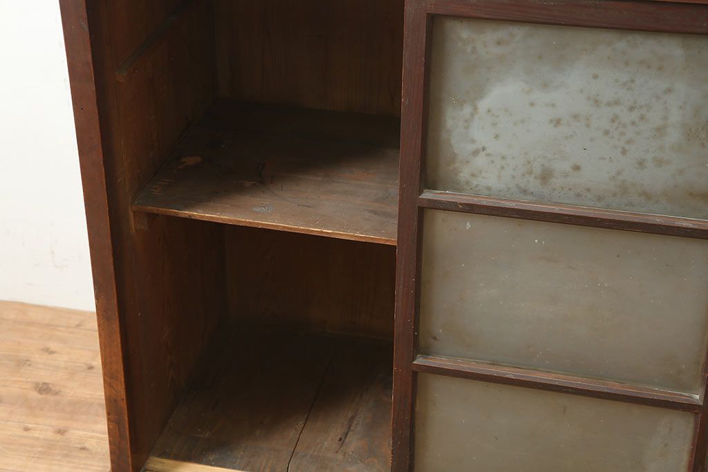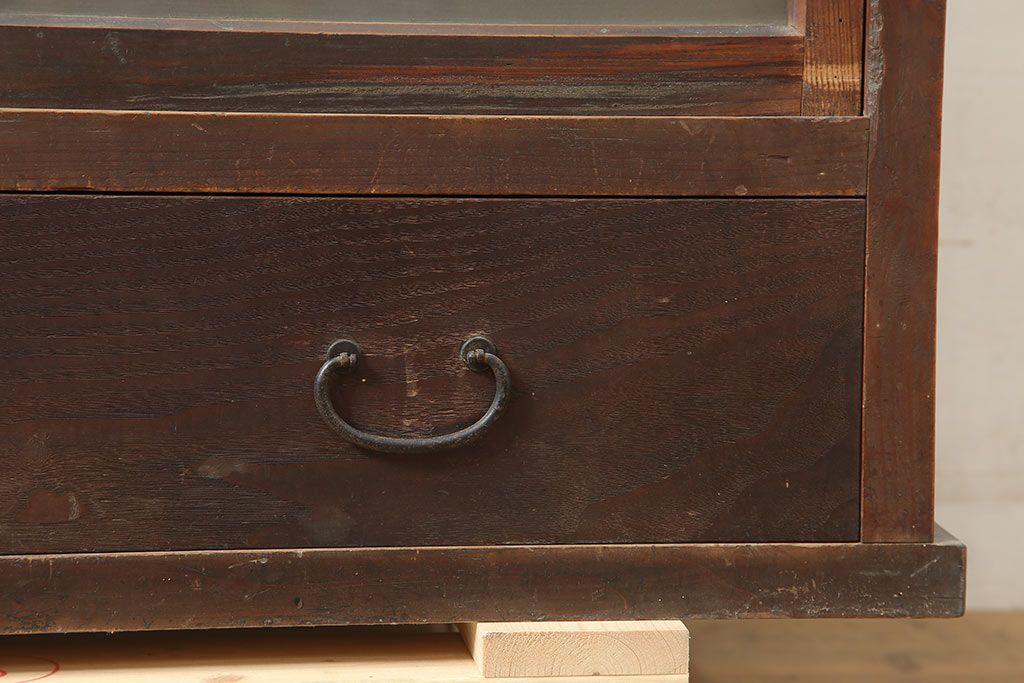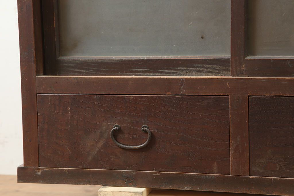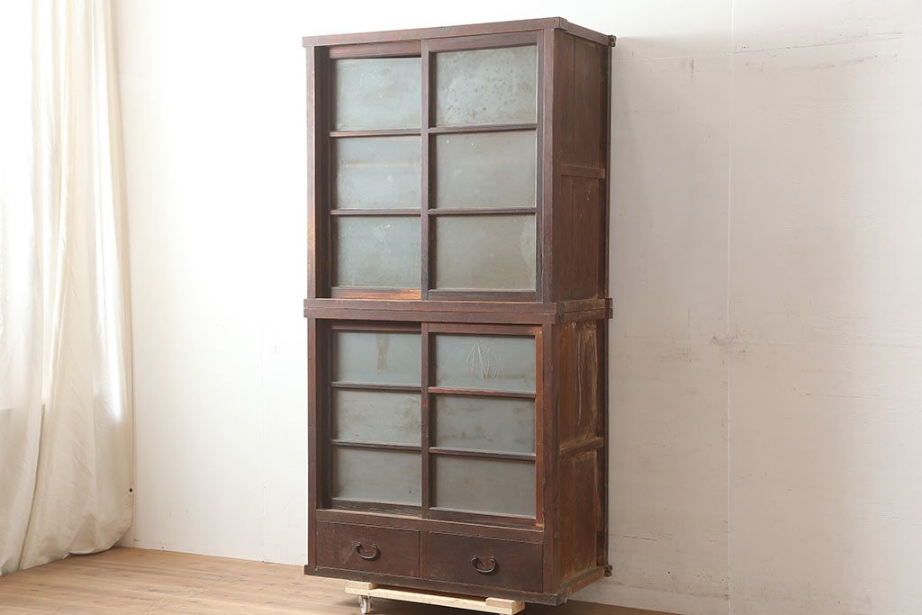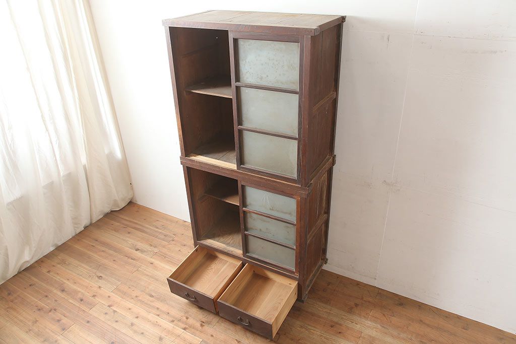 アンティーク家具 ヒノキ・杉材 シンプルで取り入れやすい引き出し付きの重ね戸棚・重ね(収納棚、キャビネット)(R-040273)