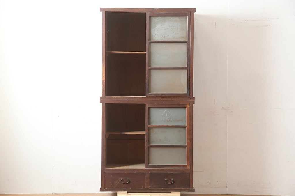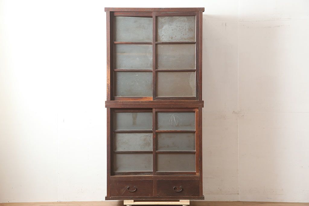 アンティーク家具 ヒノキ・杉材 シンプルで取り入れやすい引き出し付きの重ね戸棚・重ね(収納棚、キャビネット)(R-040273)です。