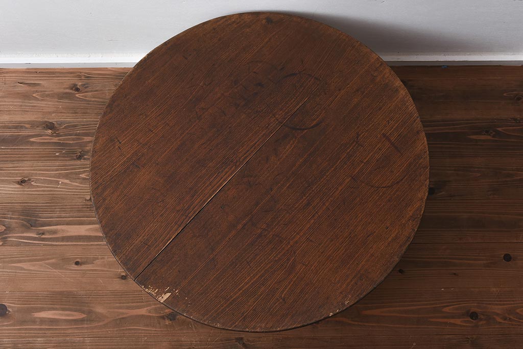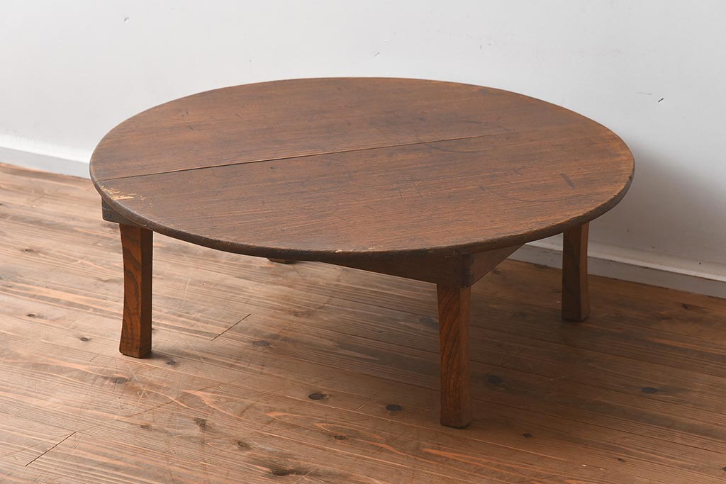 レトロ家具 栓材の木味が魅力の昔懐かしい丸ちゃぶ台(ローテーブル)(R-040284)