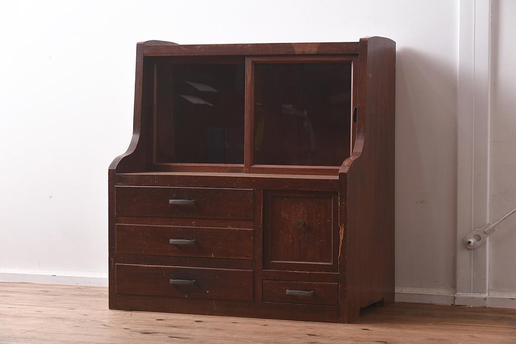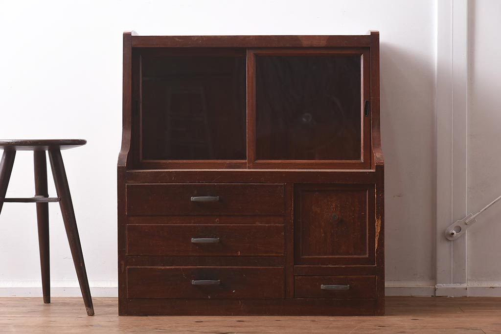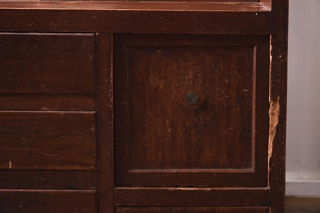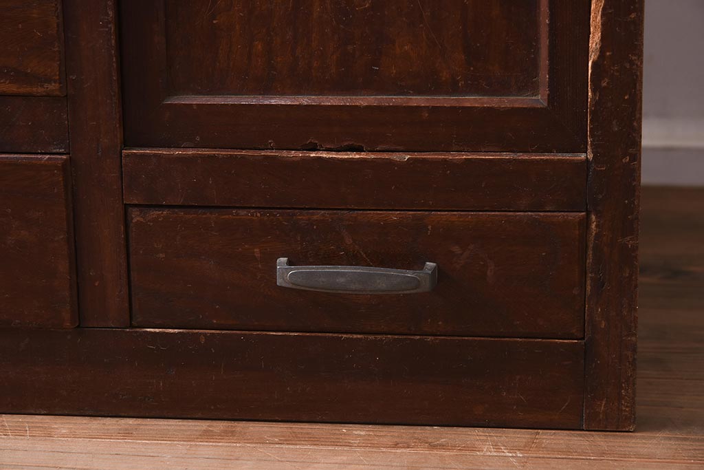 アンティーク家具 三方ケヤキ材 戸棚と引き出しが備わったレトロなキャビネット(収納棚)(R-040101)