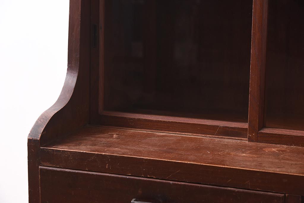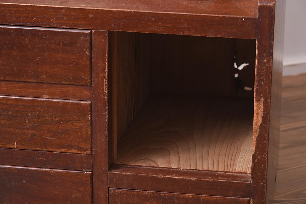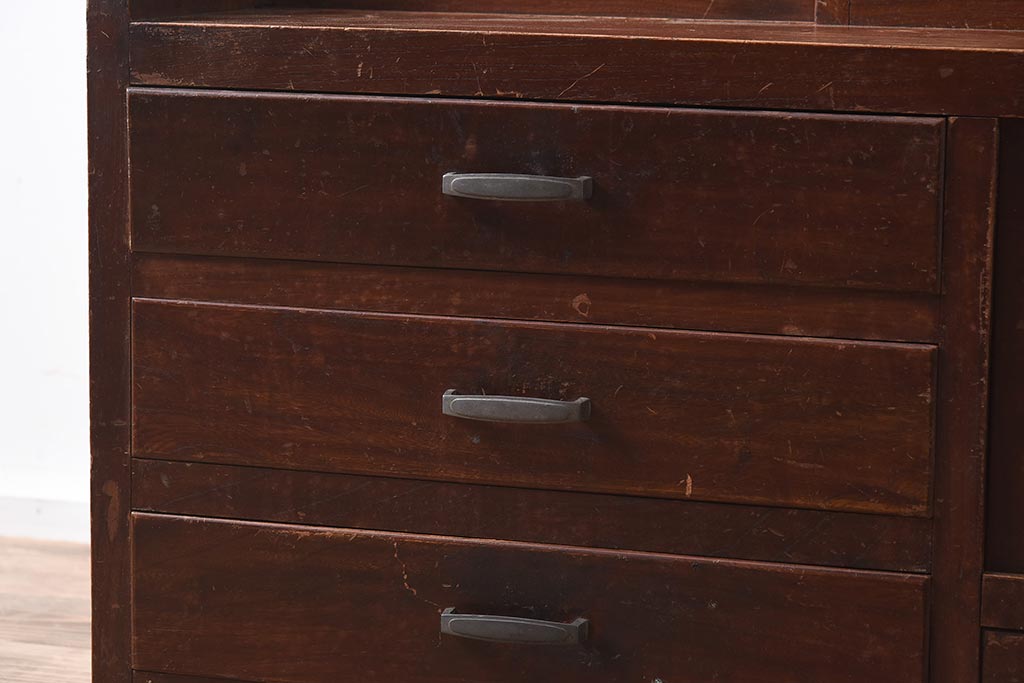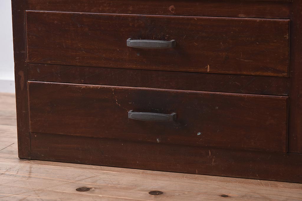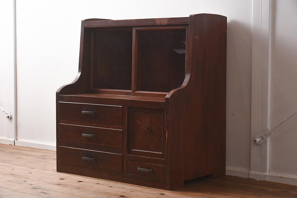 アンティーク家具 三方ケヤキ材 戸棚と引き出しが備わったレトロなキャビネット(収納棚)(R-040101)