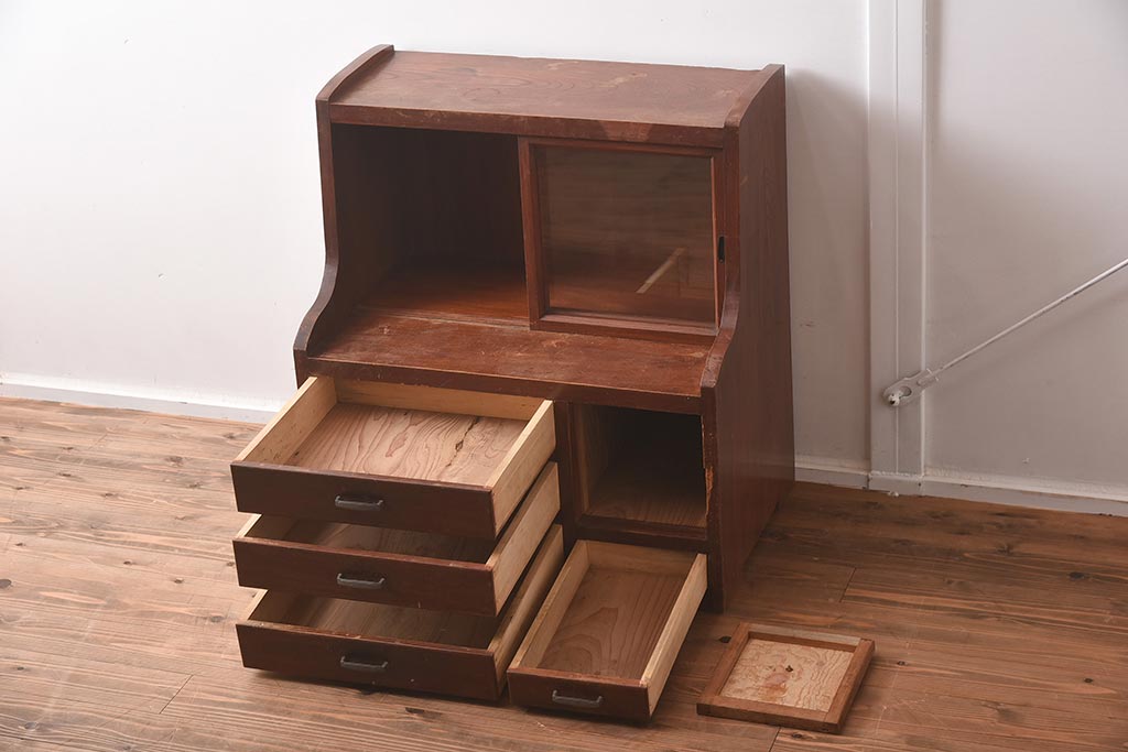アンティーク家具 三方ケヤキ材 戸棚と引き出しが備わったレトロなキャビネット(収納棚)(R-040101)です。