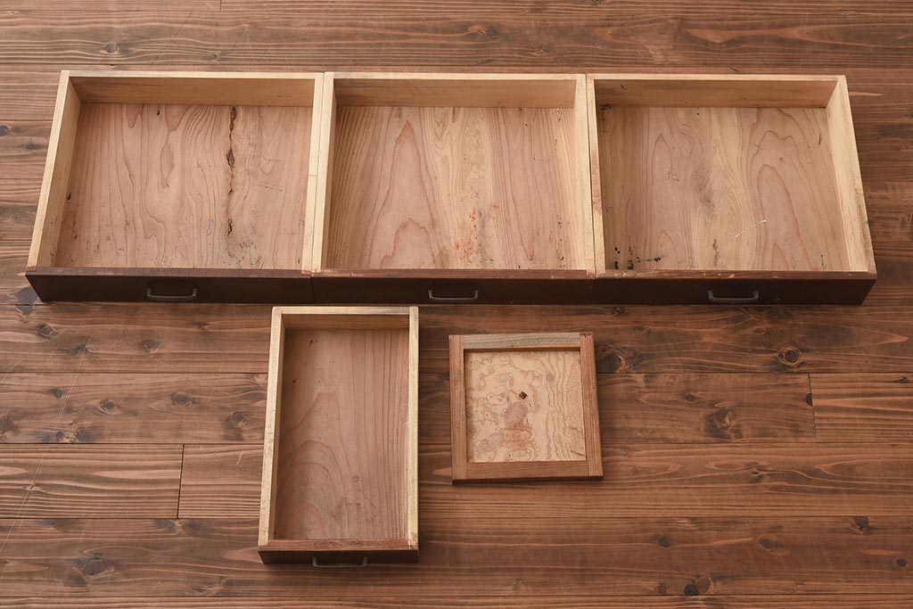 ・引き出し・引き戸・扉等の可動部分は調整してありますが、無垢材の特性として、湿度や気温などの変化によりきつくなったり緩くなったりする場合がございますので、ご理解の上お願いします。