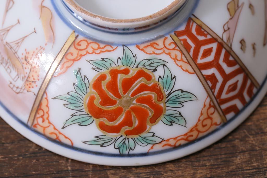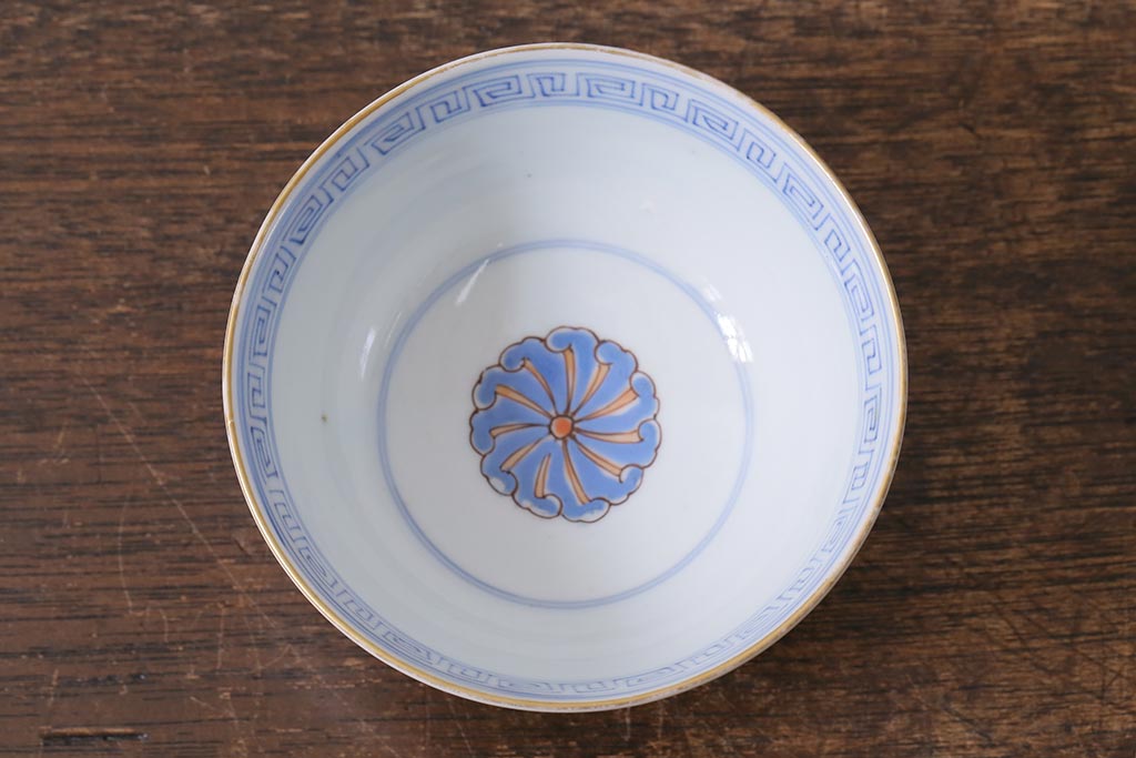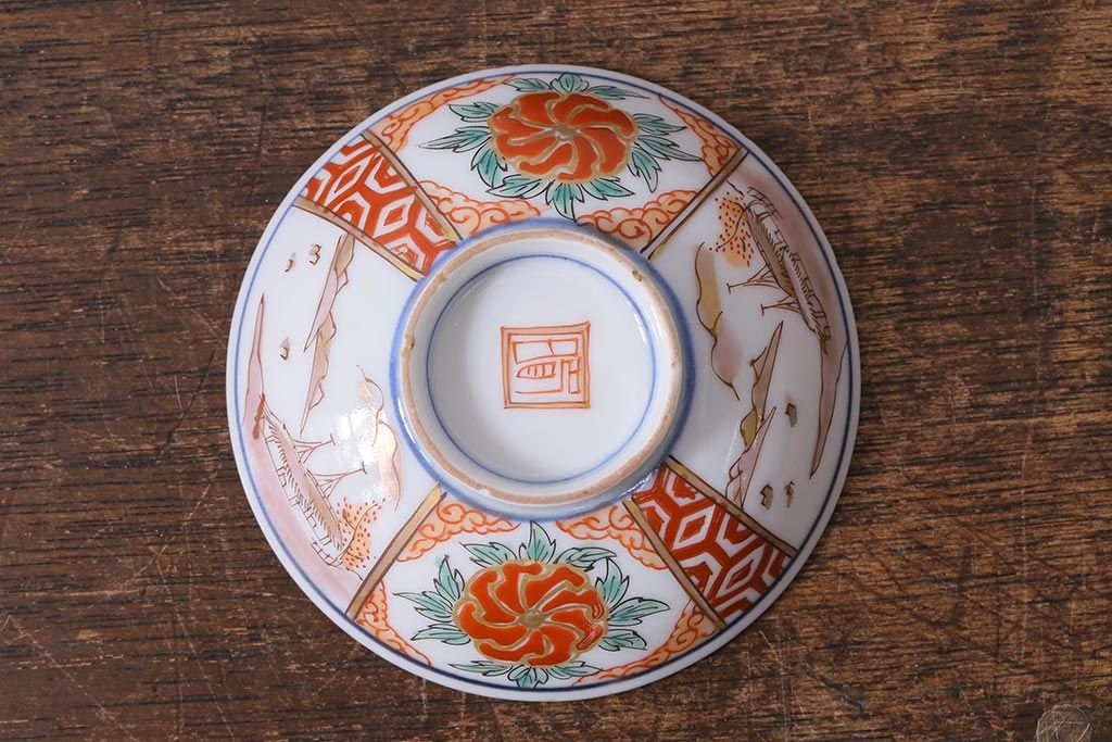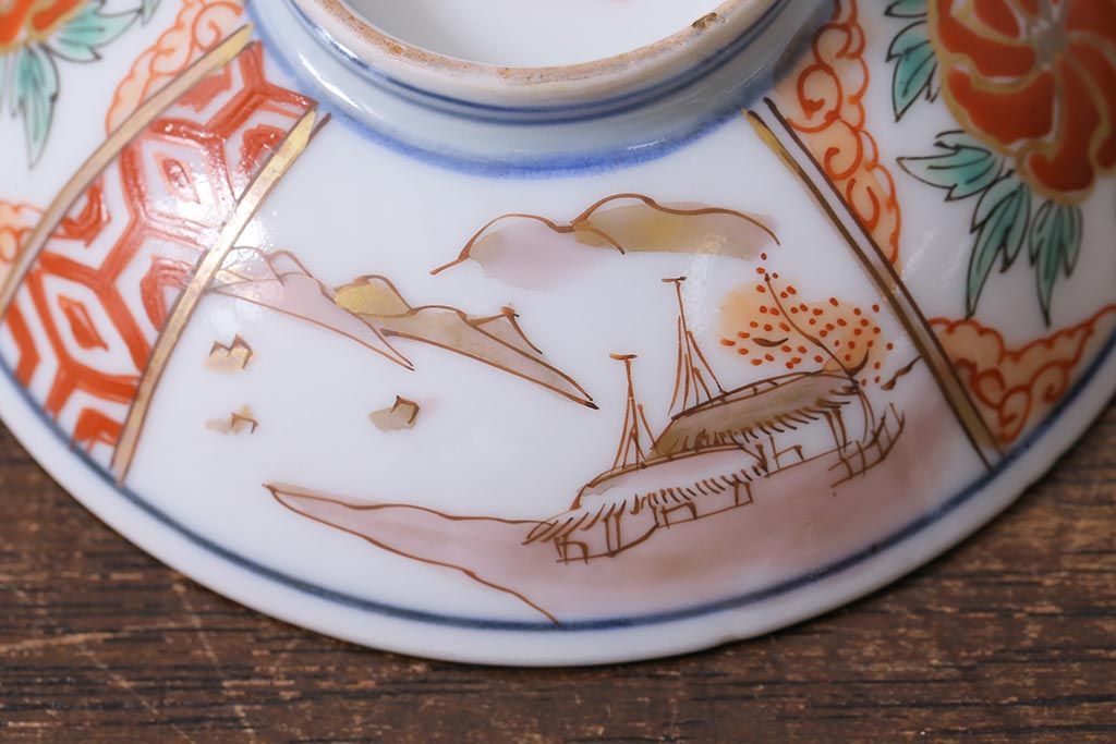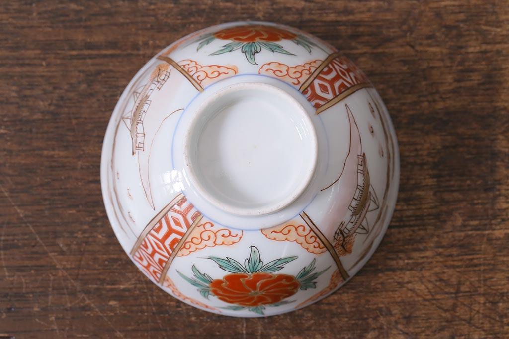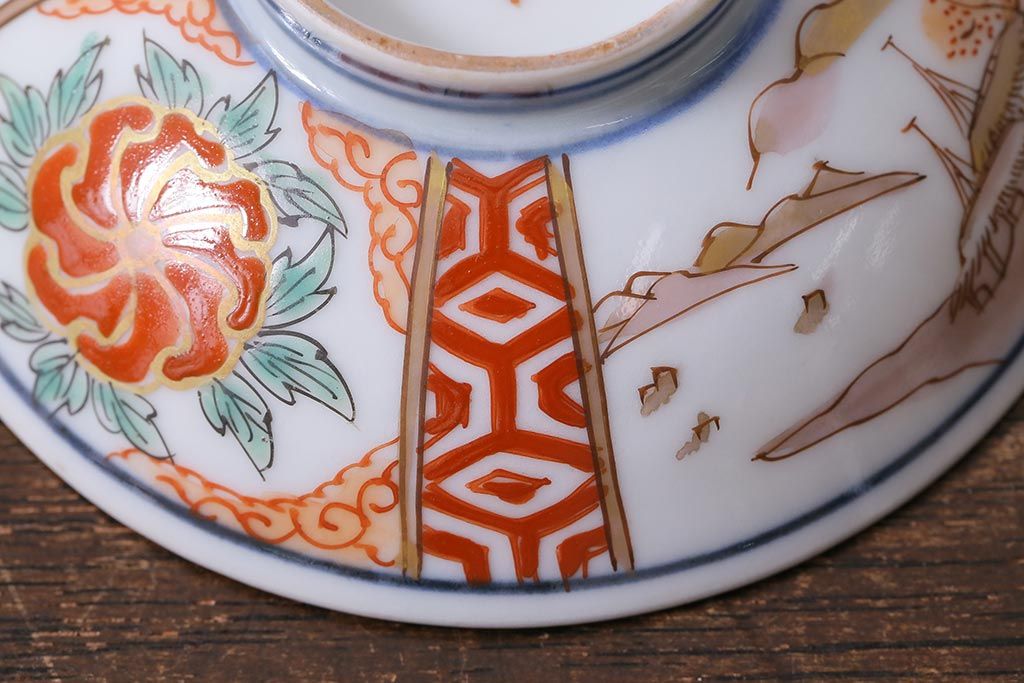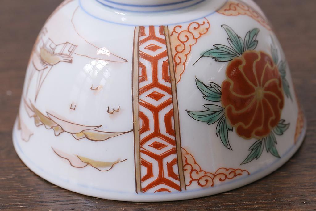 ラフジュ工房> 骨董・美術品> 骨董-陶磁器 > 和製アンティーク 古伊万里 江戸期 華やかな色絵染付の蓋つき茶碗2客セット(和食器)(R-040138)