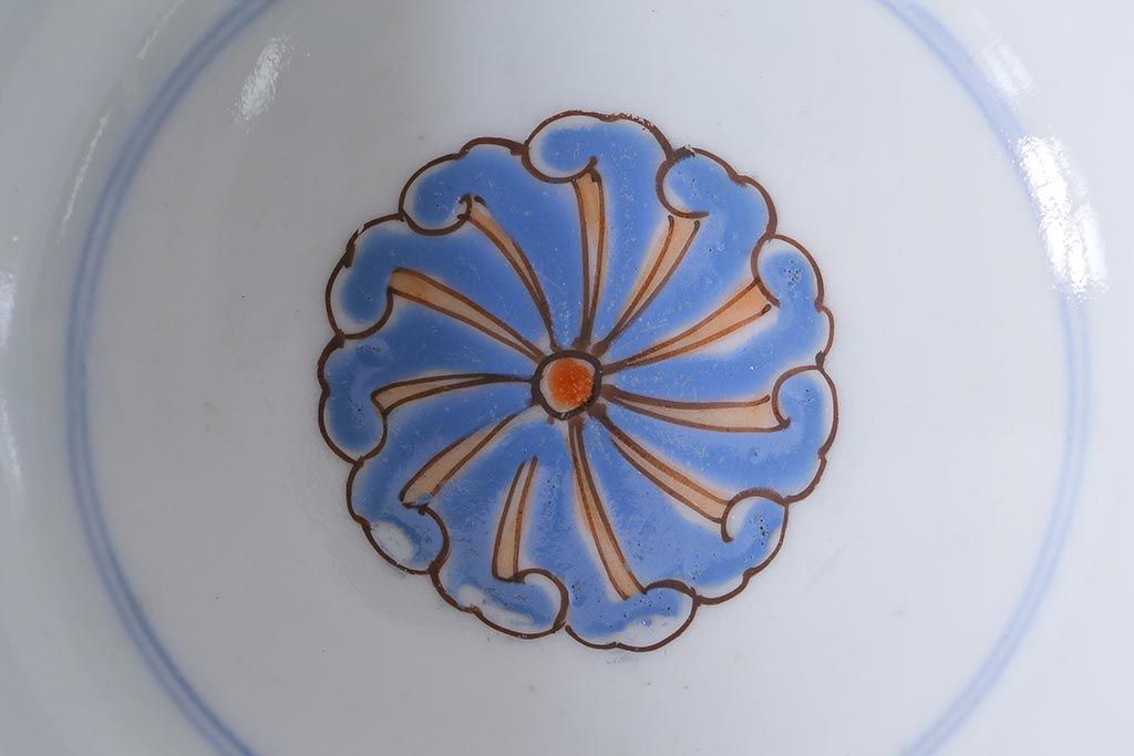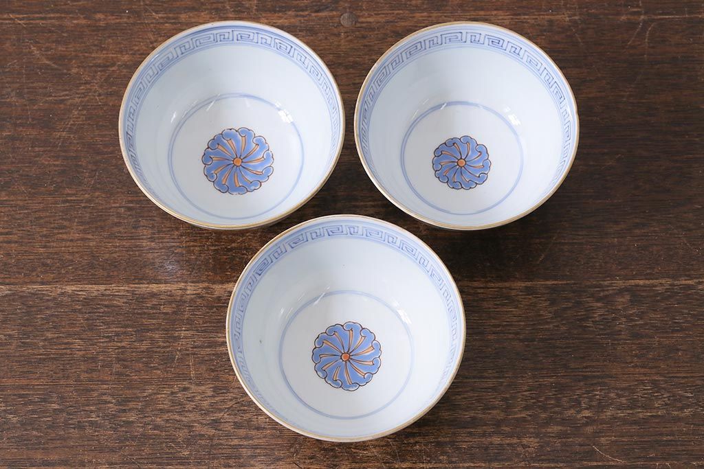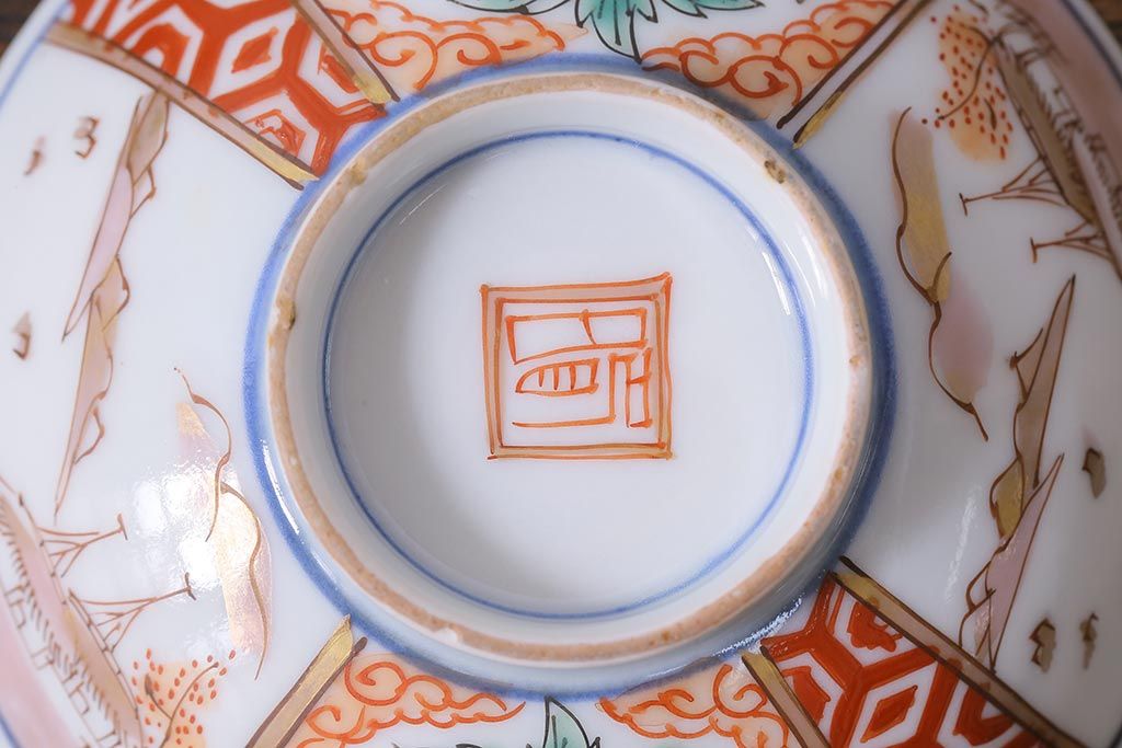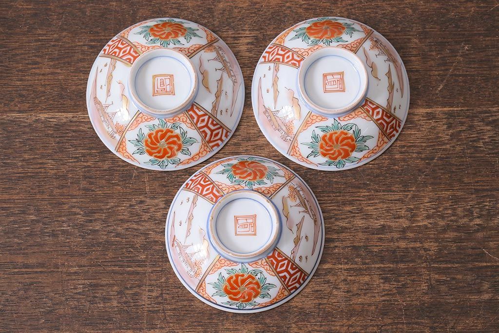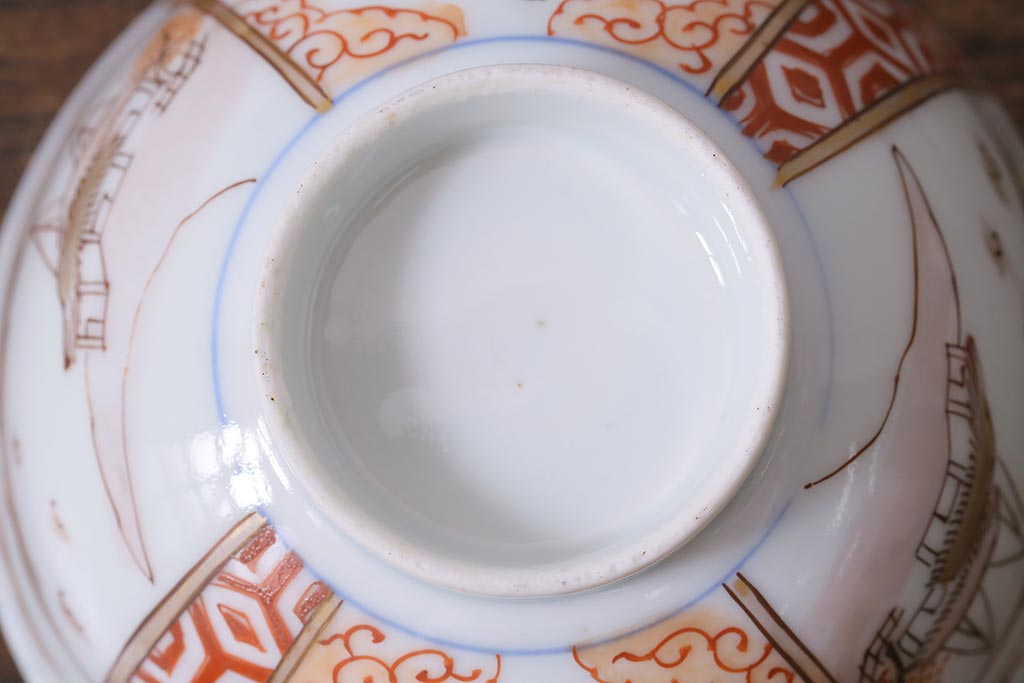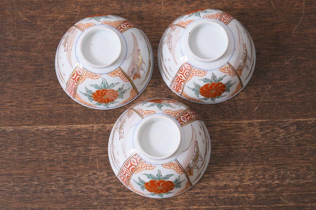 ラフジュ工房> 骨董・美術品> 骨董-陶磁器 > 和製アンティーク 古伊万里 江戸期 華やかな色絵染付の蓋つき茶碗2客セット(和食器)(R-040138)