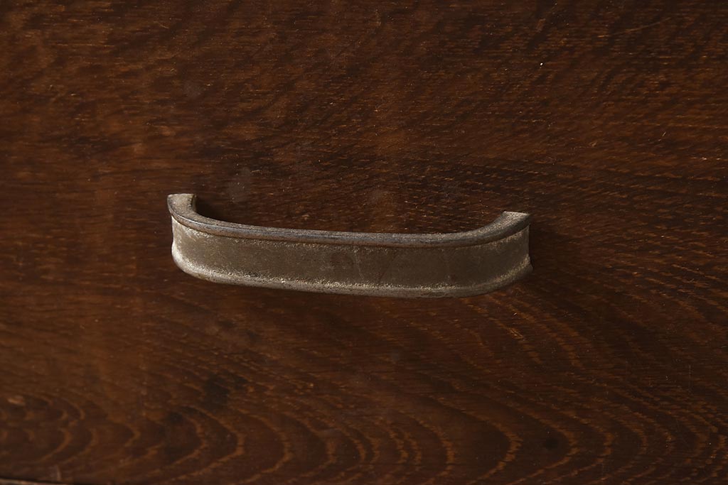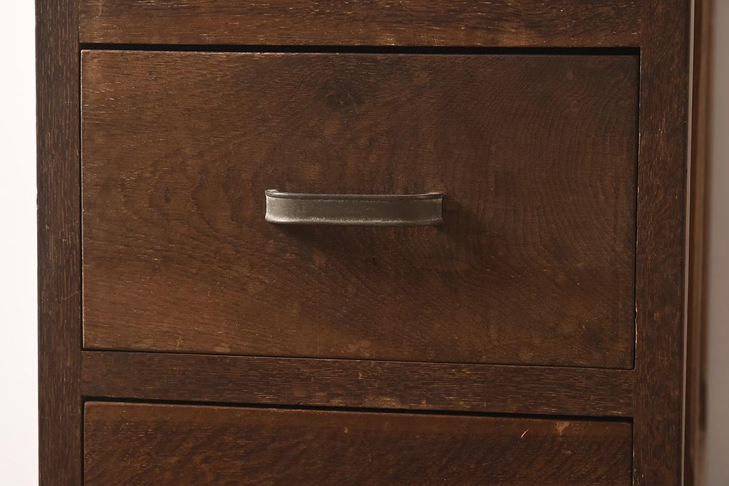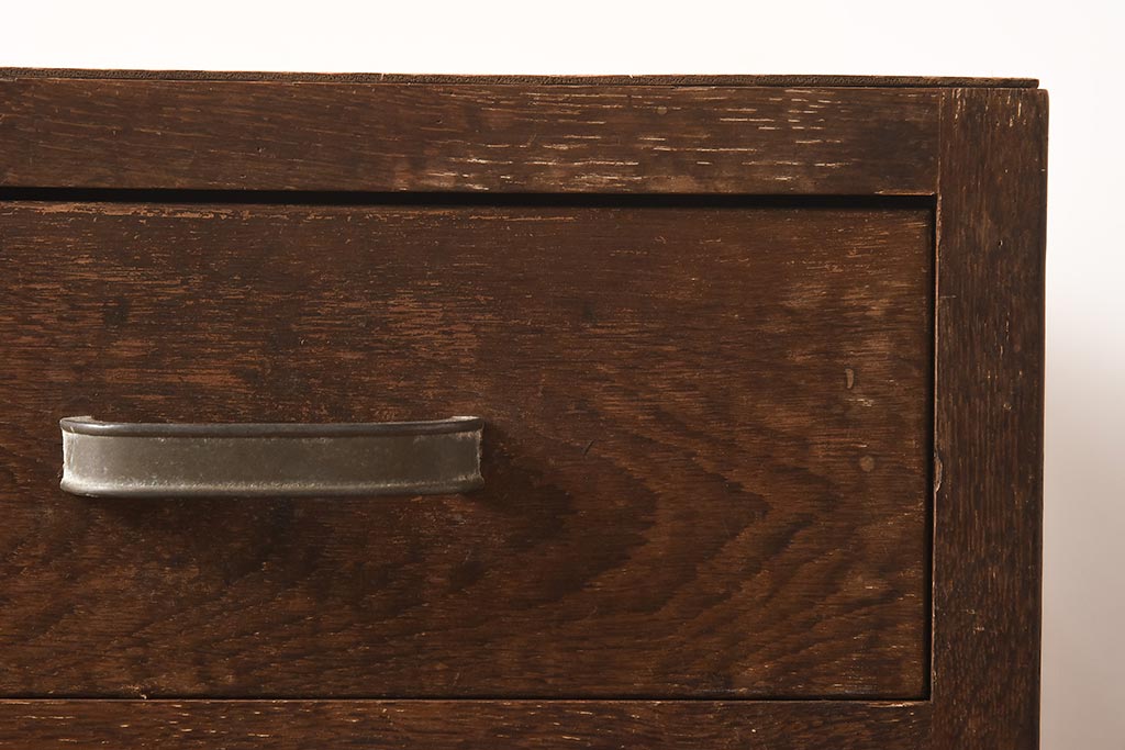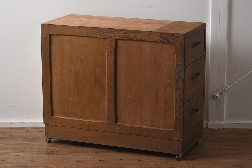 レトロ家具 昭和中期 ナラ材 味わい深いキャスター付きサイドチェスト(脇机、袖机、引き出し、ドロアー)(R-040233)