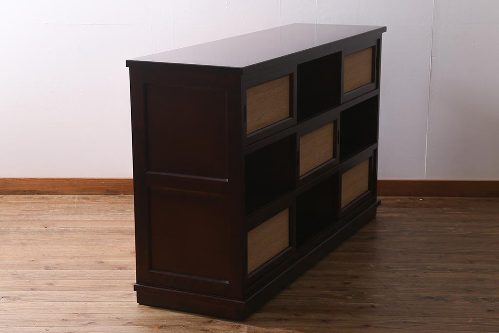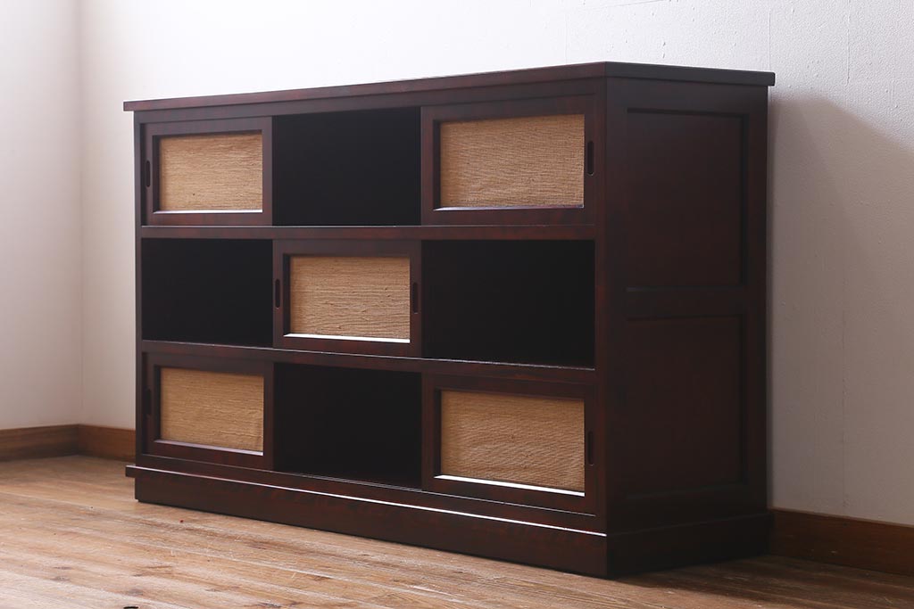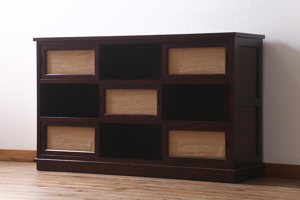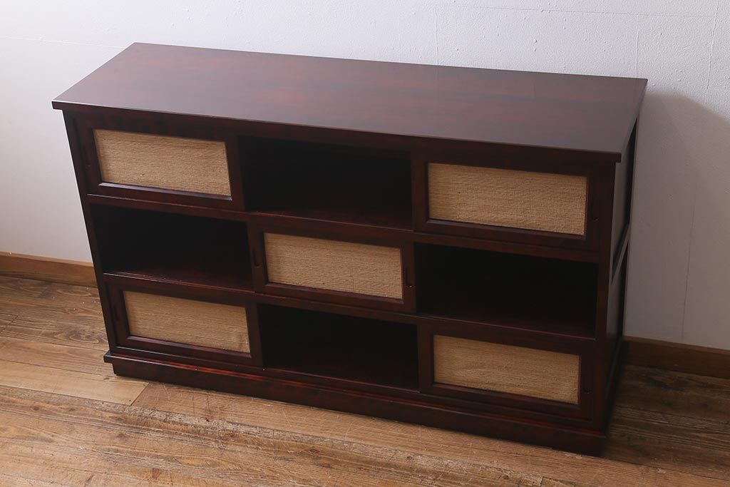 中古 国産 民芸家具 クズ布張り モダンなデザインがおしゃれなサイドボード (R-040184)