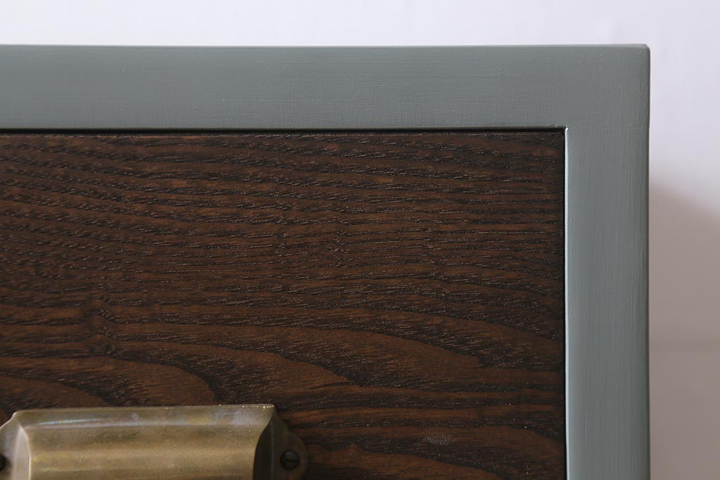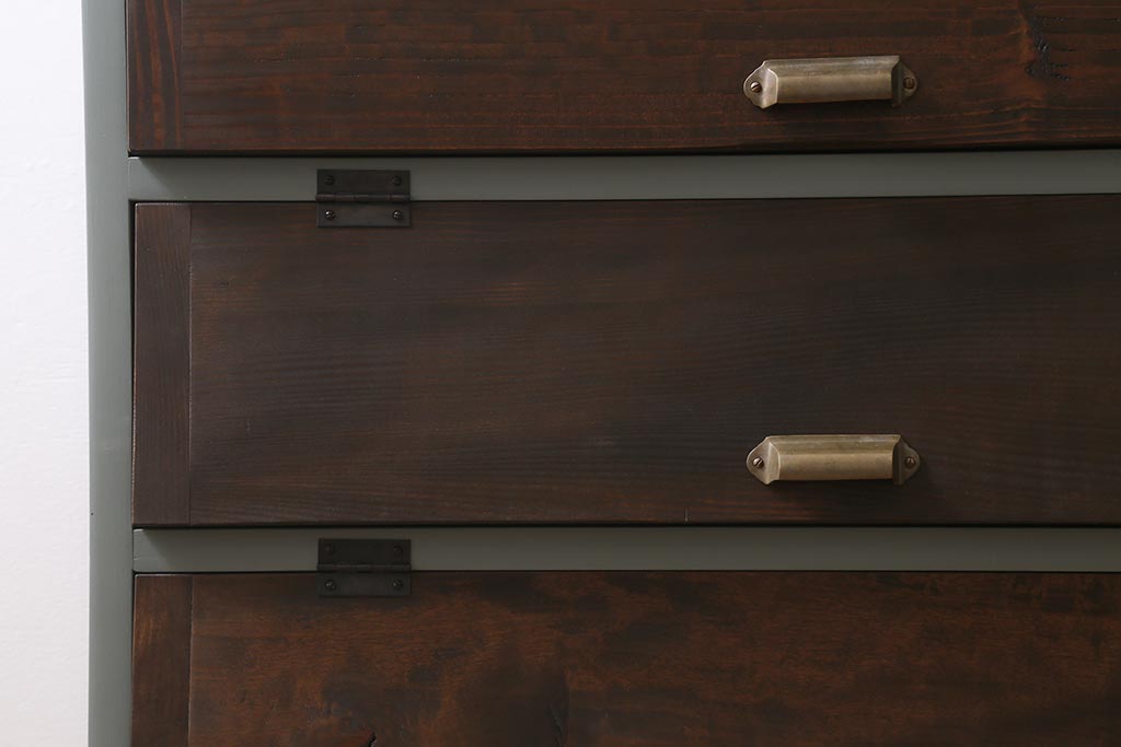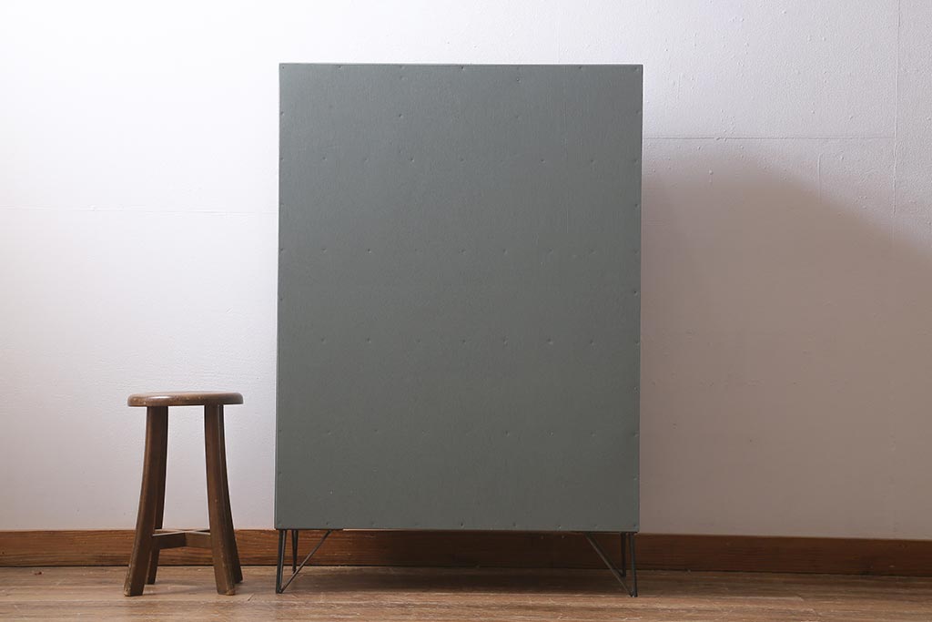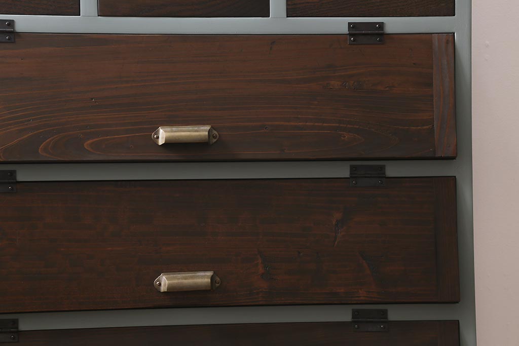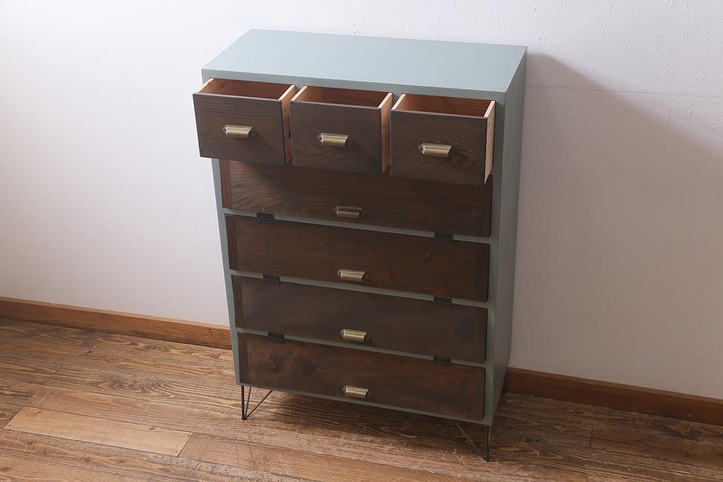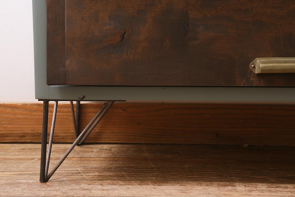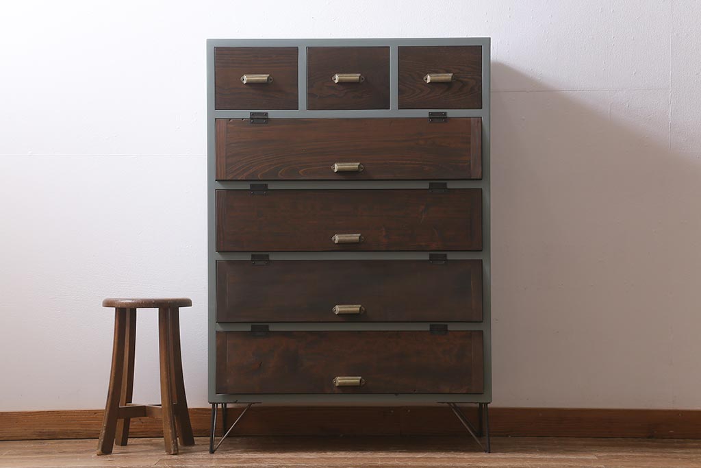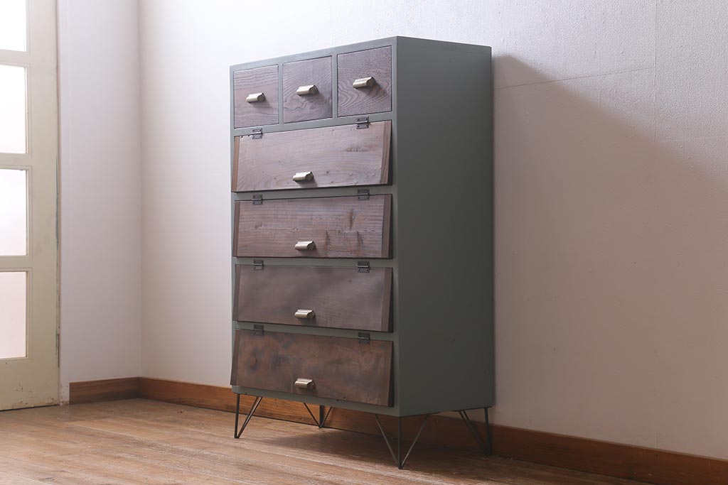 ラフジュ工房オリジナル家具 古材リメイク ペイント家具 鉄脚 引き出し付きパタパタ扉の下駄箱(収納棚、キャビネット)(R-040257)です。