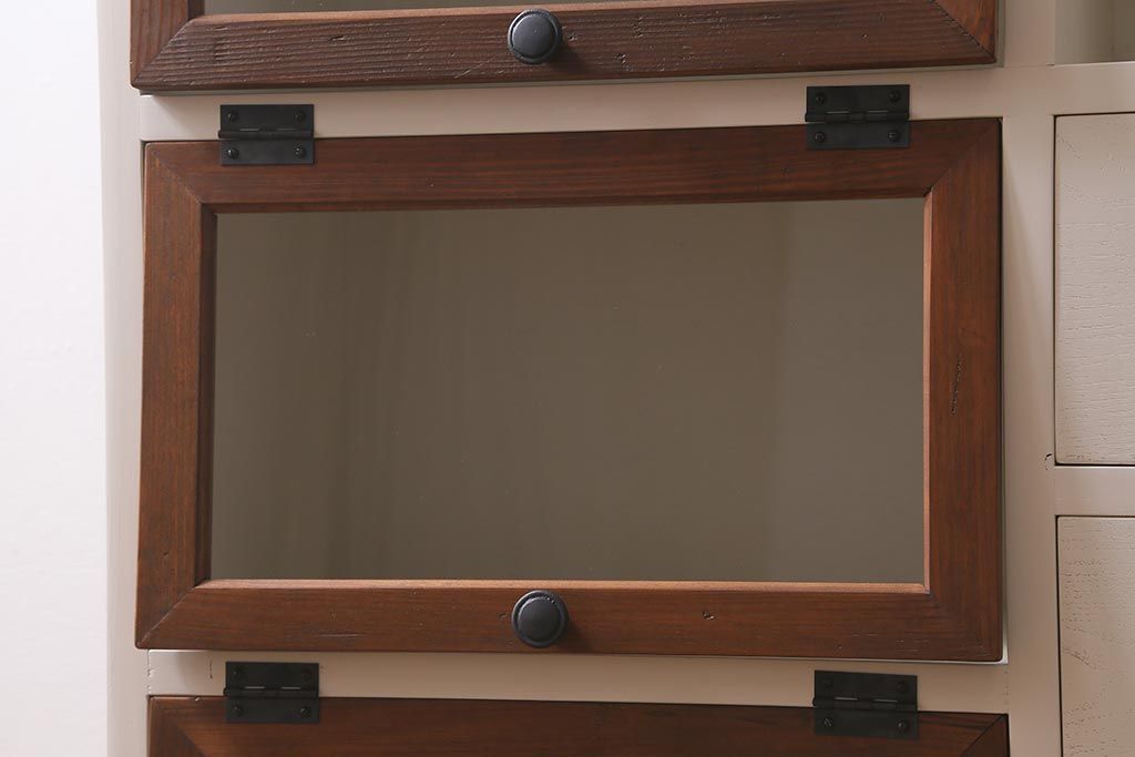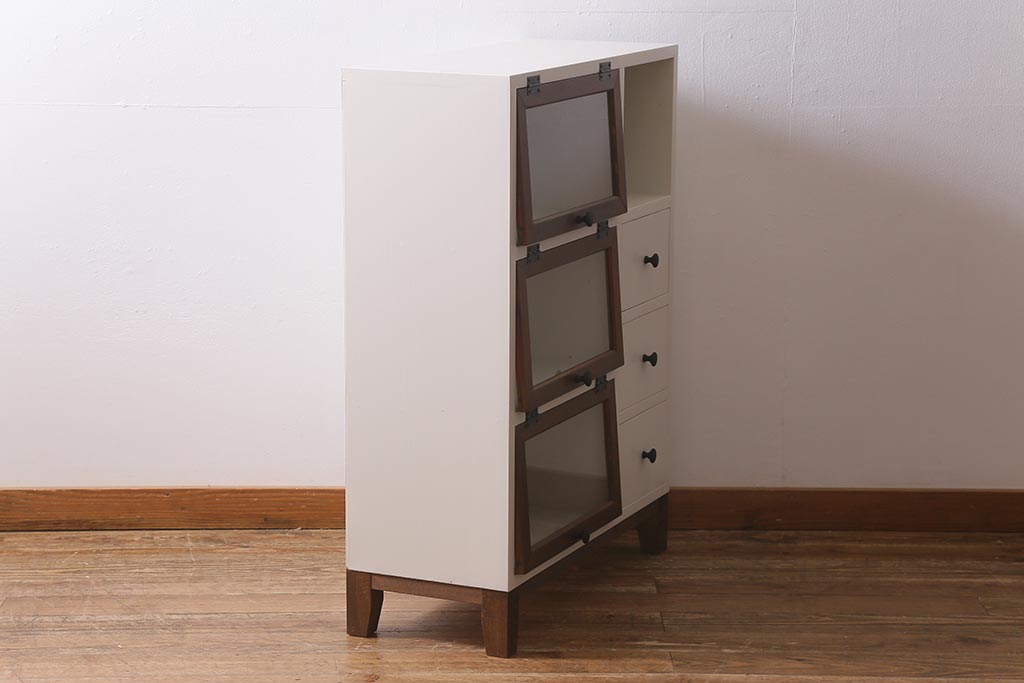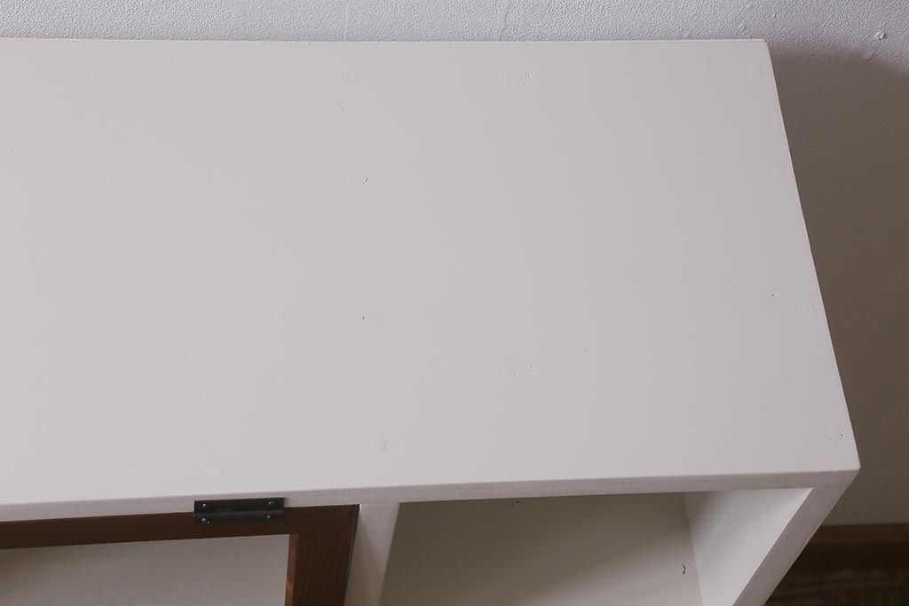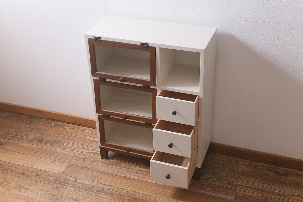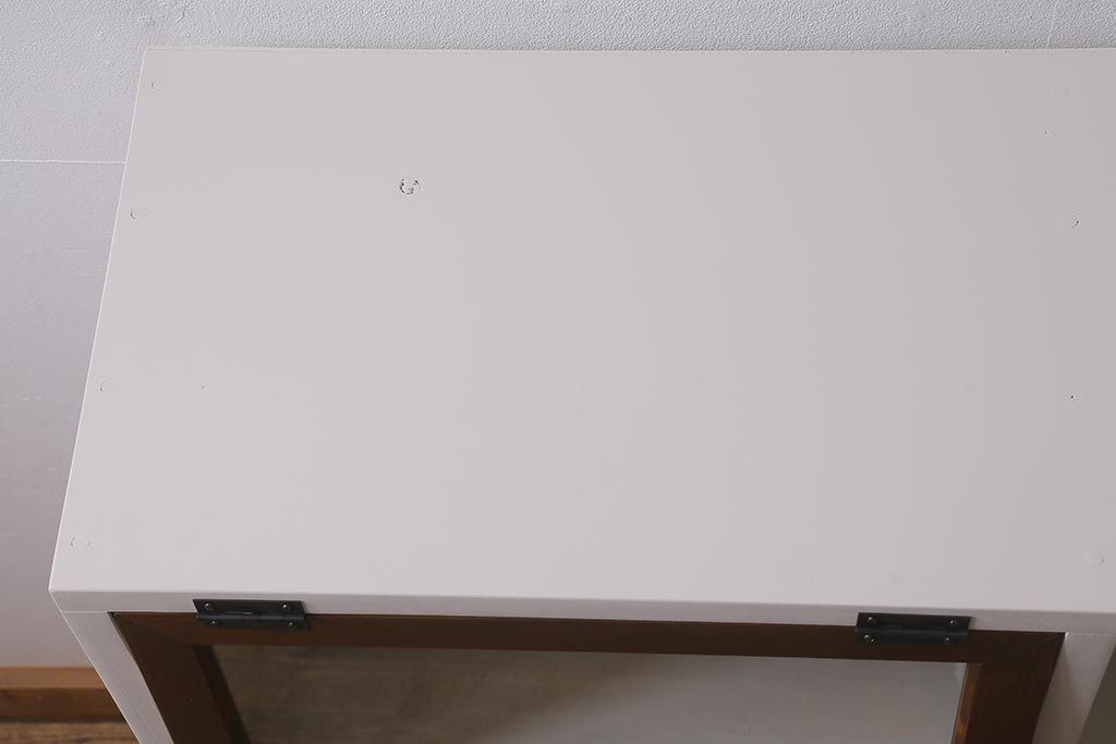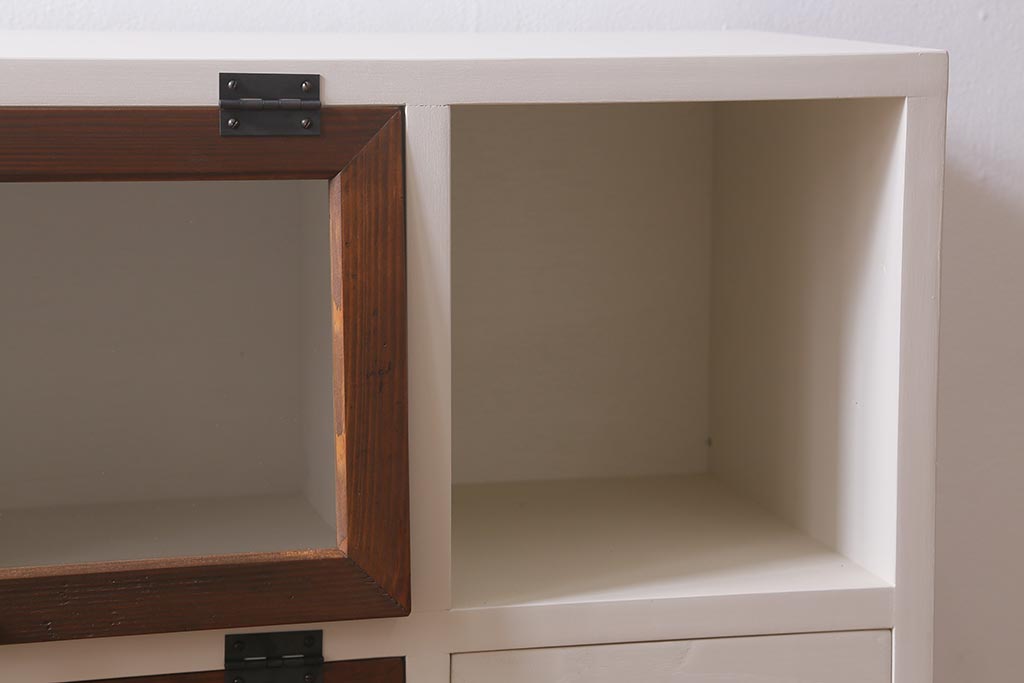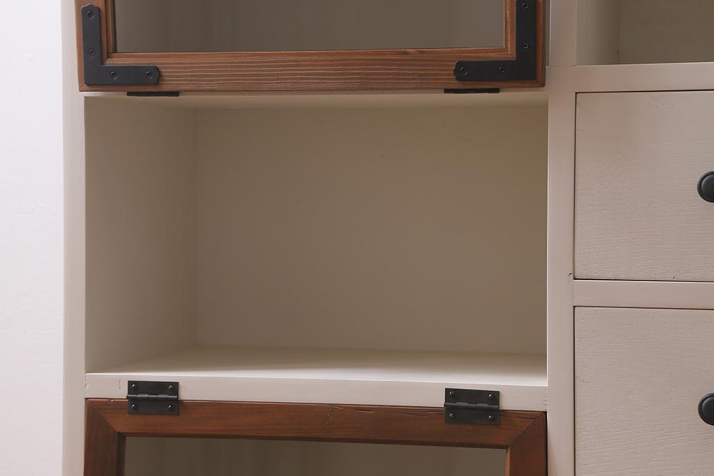 ラフジュ工房オリジナル 古材使用 リメイク家具 ペイント バイカラーがレトロなパタパタ扉のキャビネット(収納棚、リビングボード)(R-040255)です。