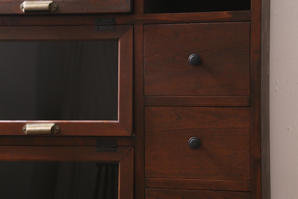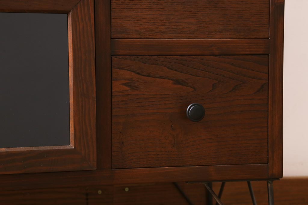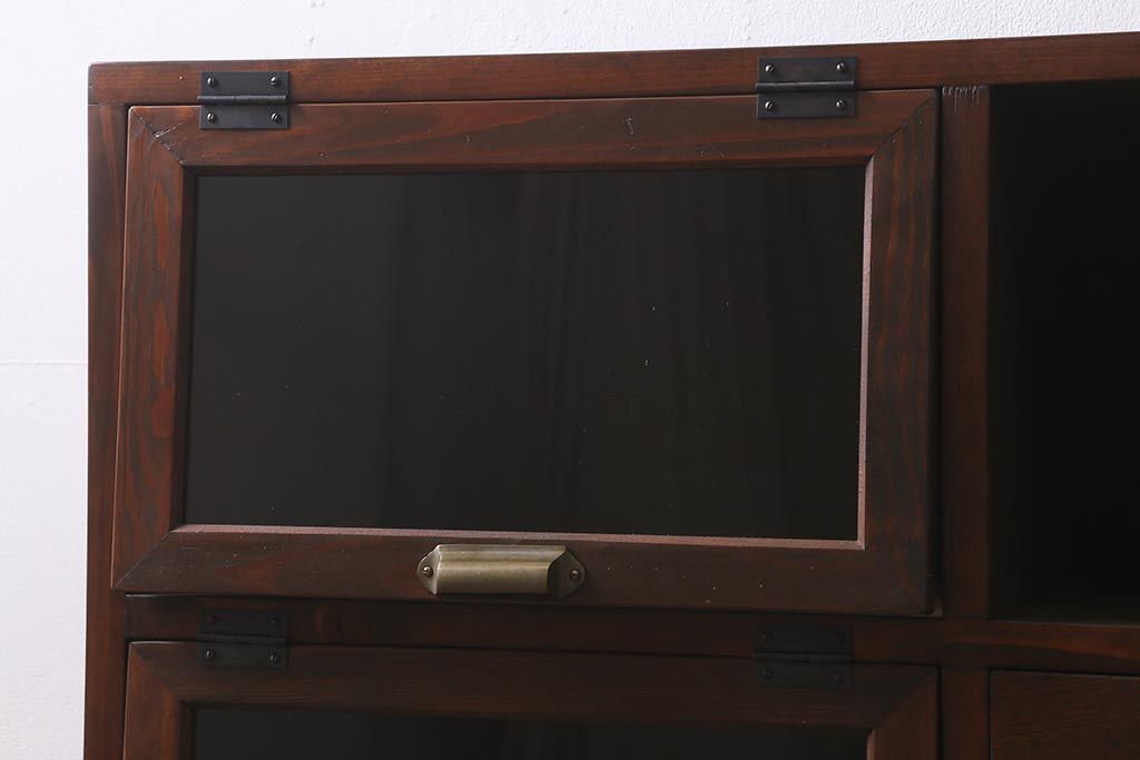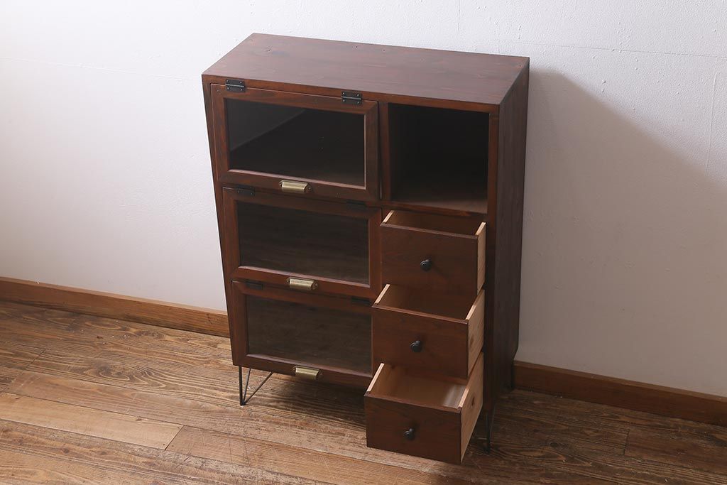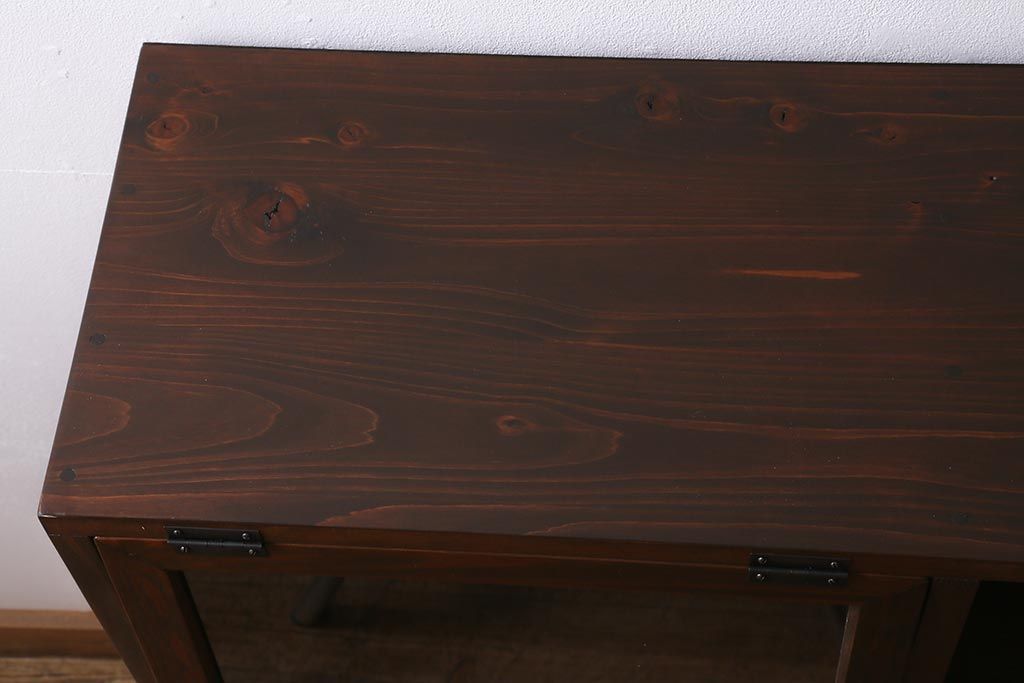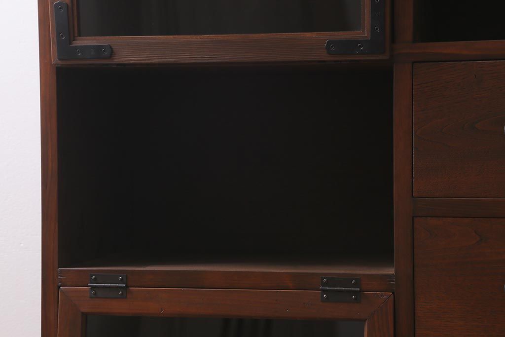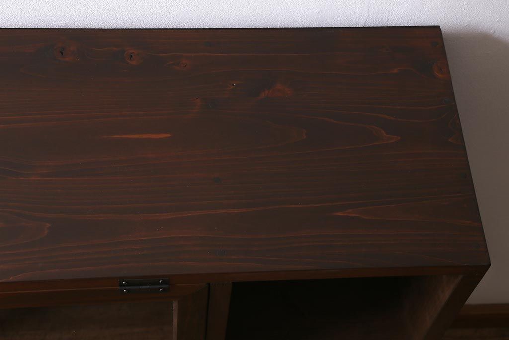 ラフジュ工房オリジナル 古材使用 リメイク家具 濃い色味が素敵なパタパタ扉付きキャビネット(収納棚)(R-040253)です。