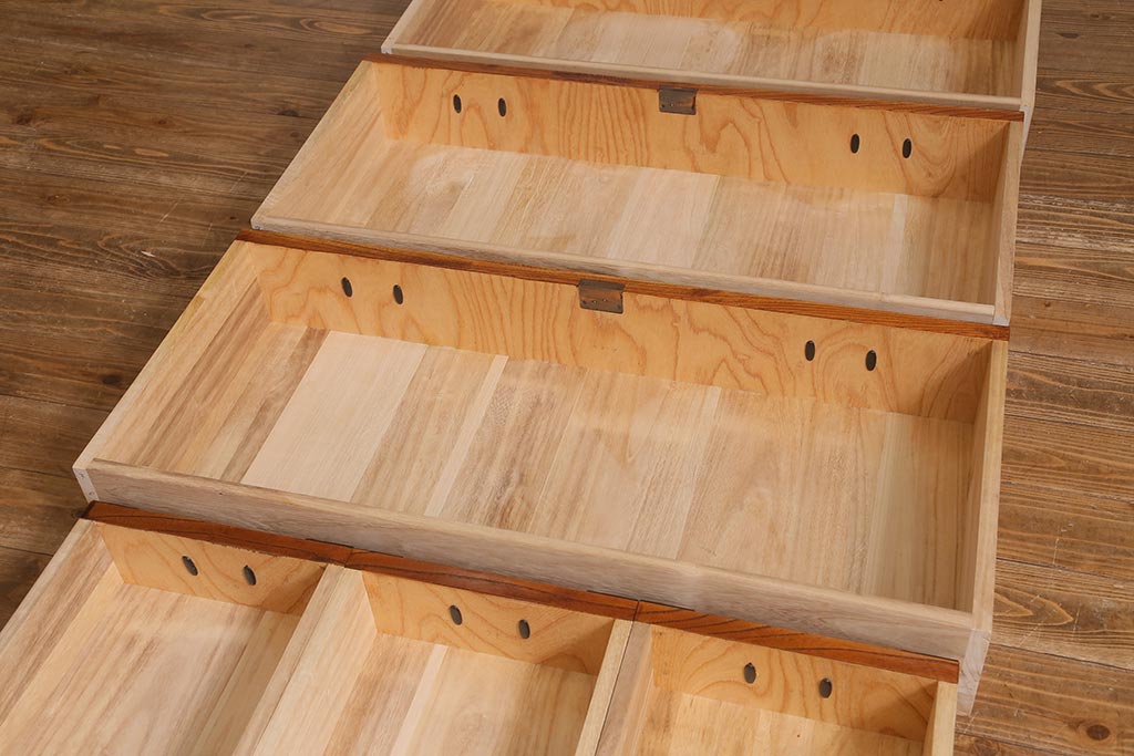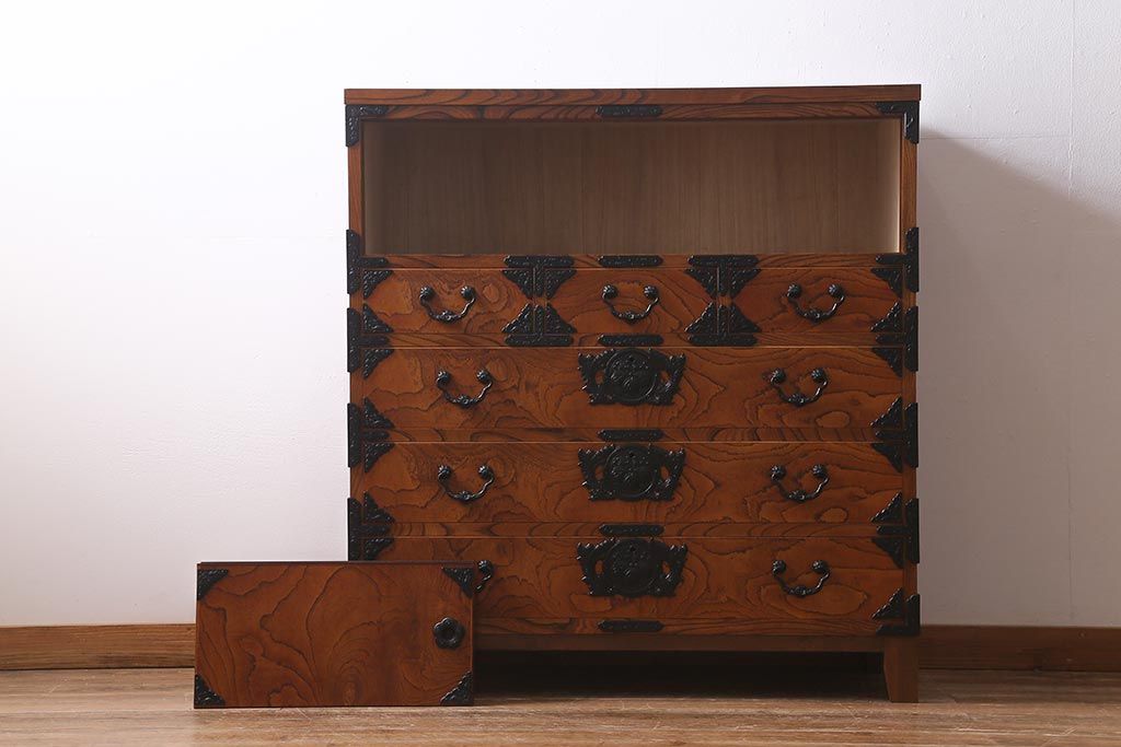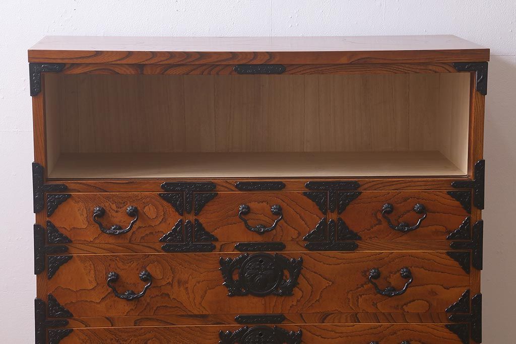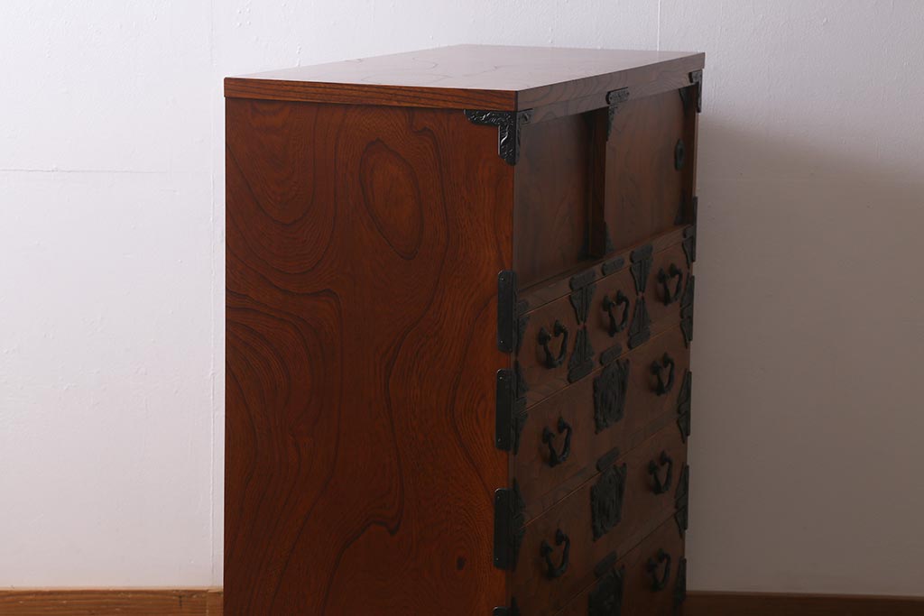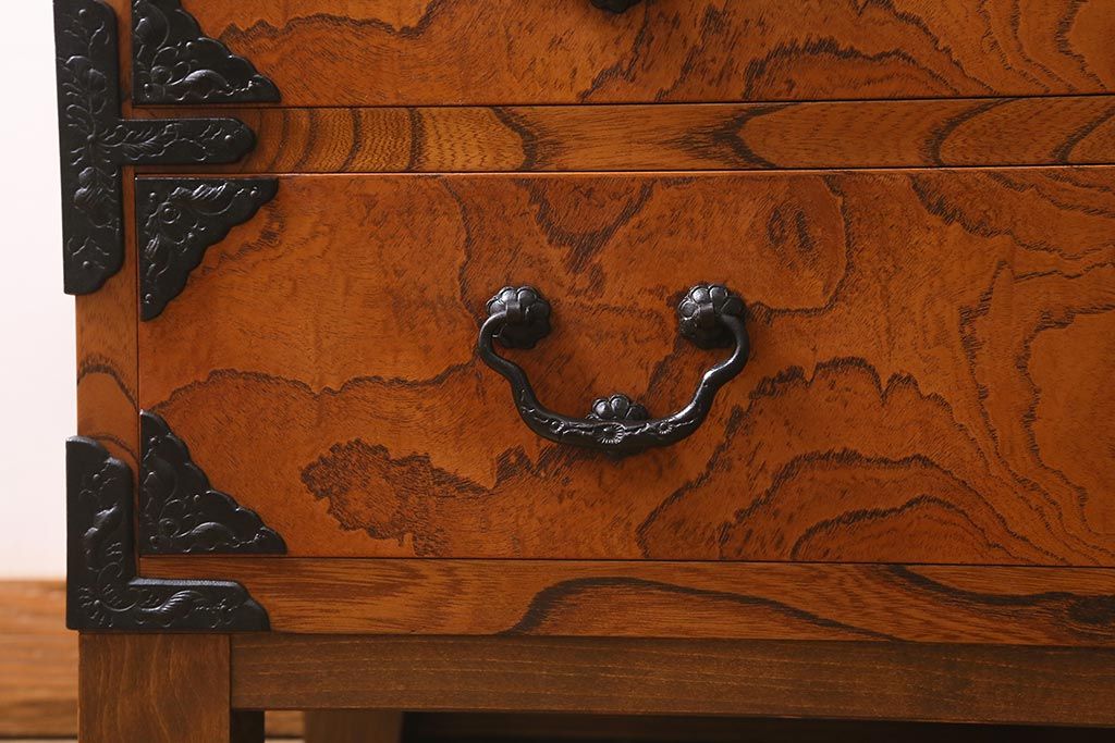 和箪笥> 衣装箪笥 > リメイク家具 岩谷堂箪笥 脚付きリメイク 美しい杢目と黒い金具が魅力の整理箪笥(戸棚、チェスト、引き出し、和タンス)(R-040328)