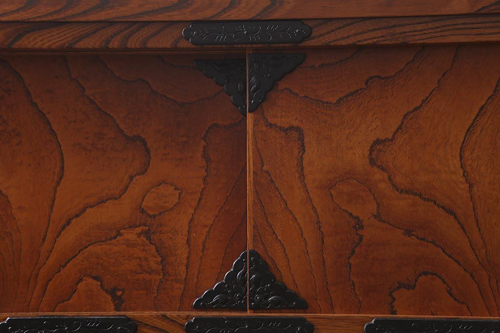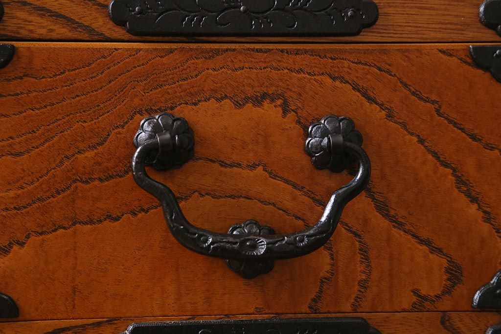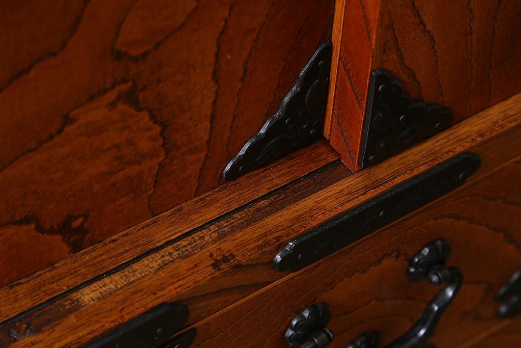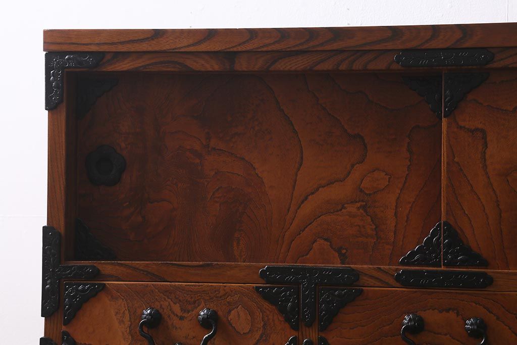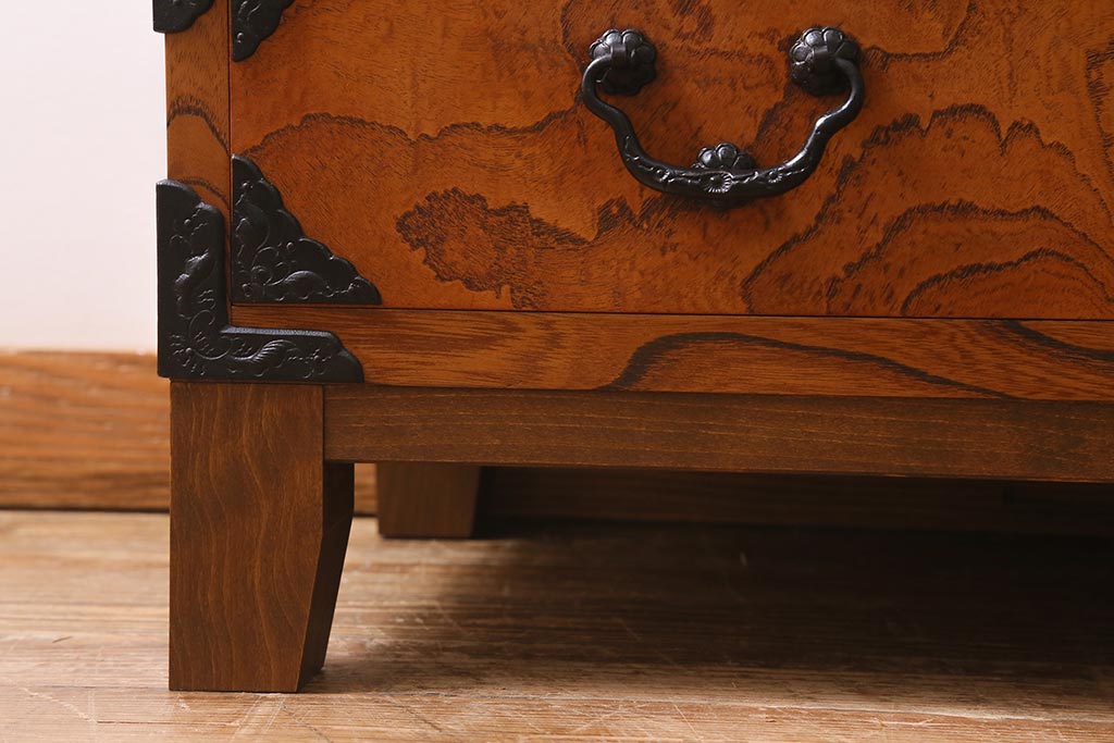 民芸家具 > リメイク家具 岩谷堂箪笥 脚付きリメイク 美しい杢目と黒い金具が魅力の整理箪笥(戸棚、チェスト、引き出し、和タンス)(R-040328)