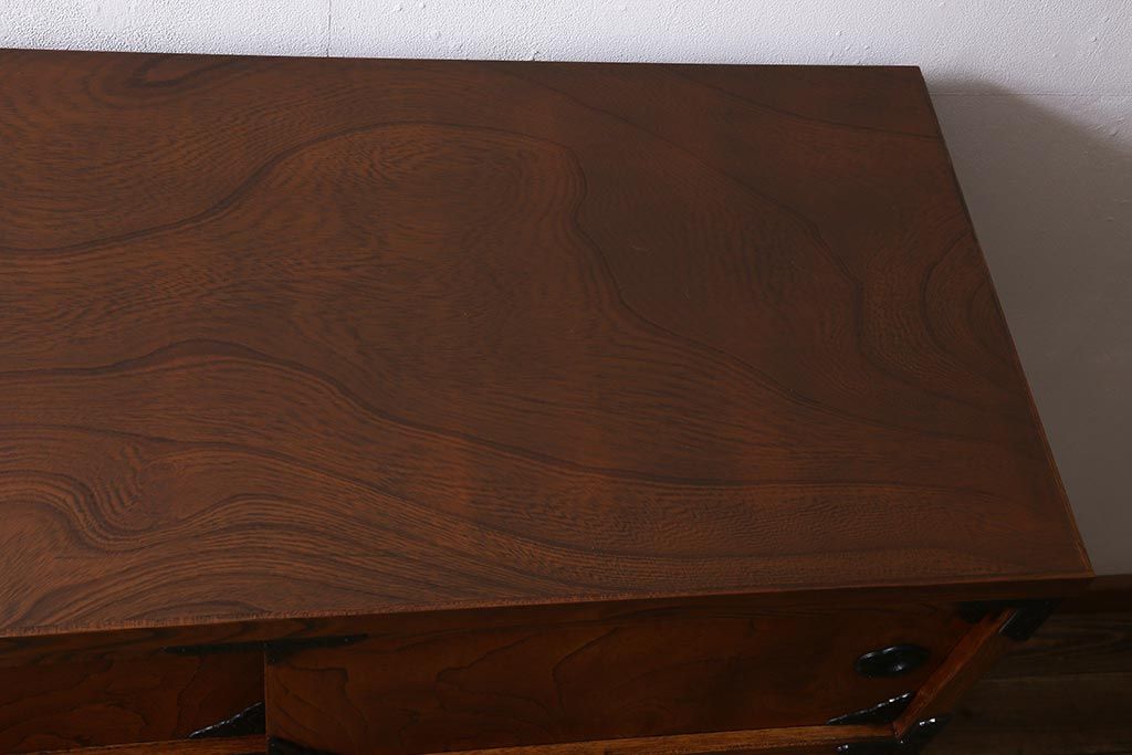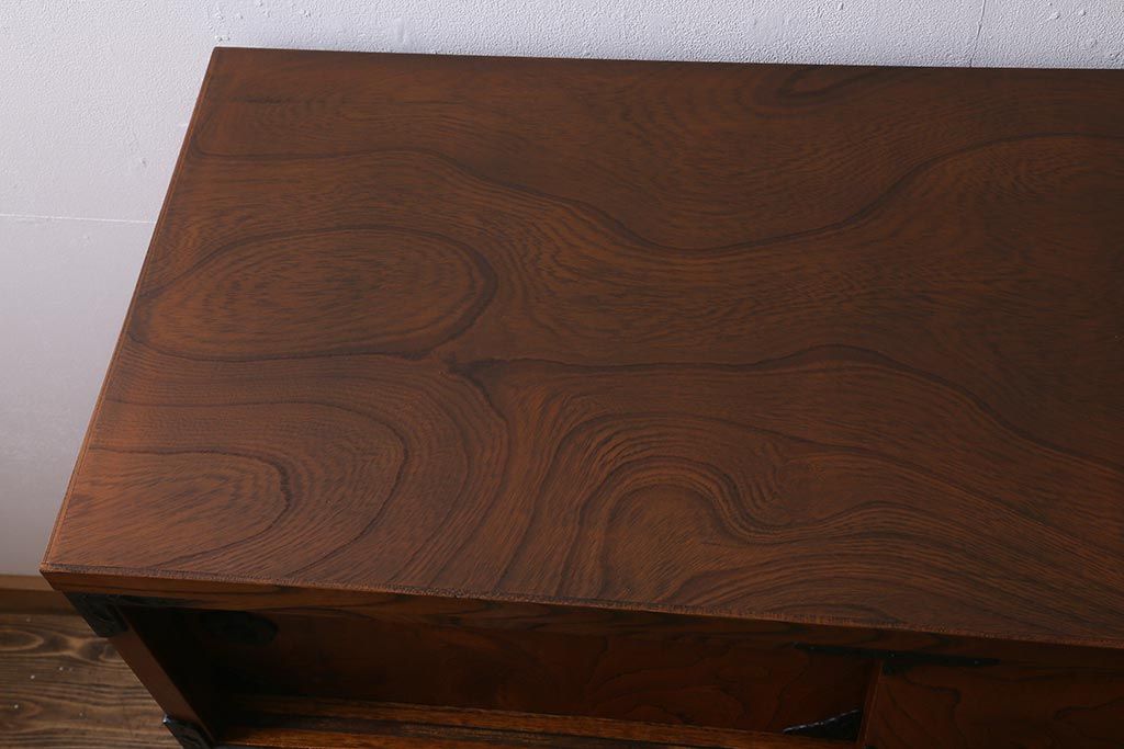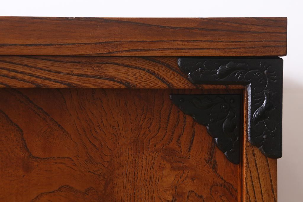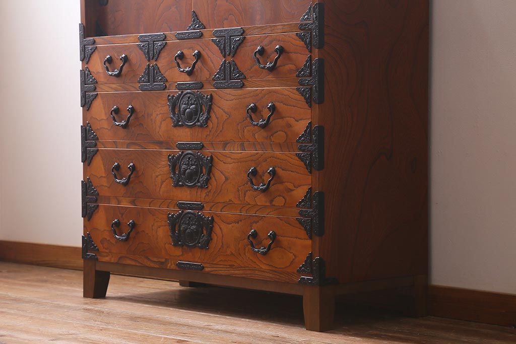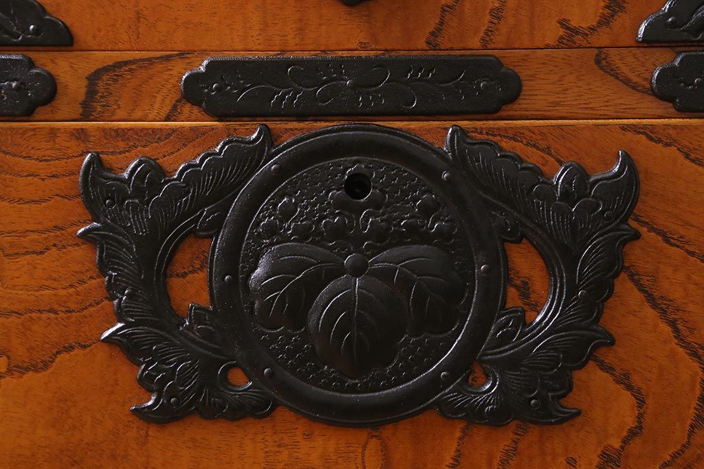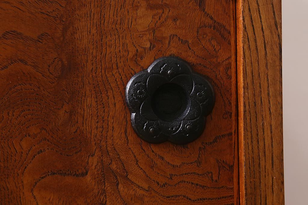 民芸家具 > リメイク家具 岩谷堂箪笥 脚付きリメイク 美しい杢目と黒い金具が魅力の整理箪笥(戸棚、チェスト、引き出し、和タンス)(R-040328)