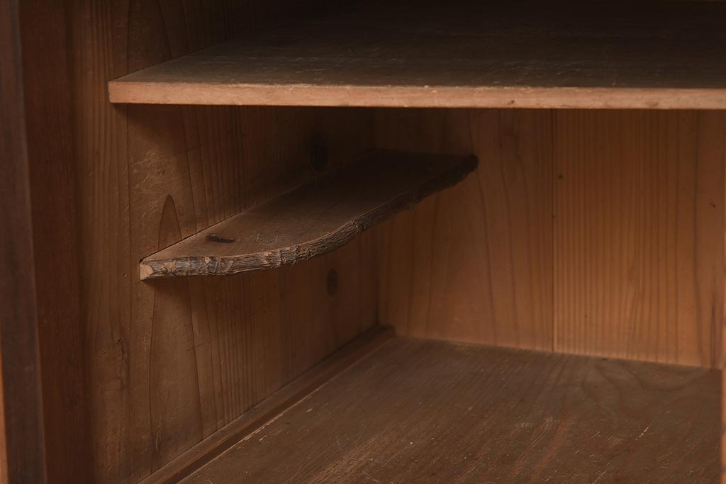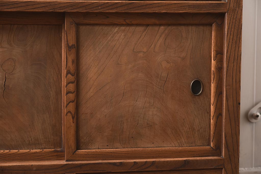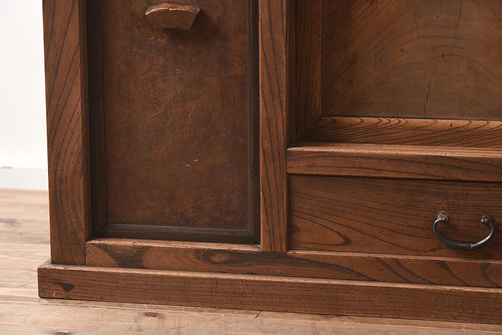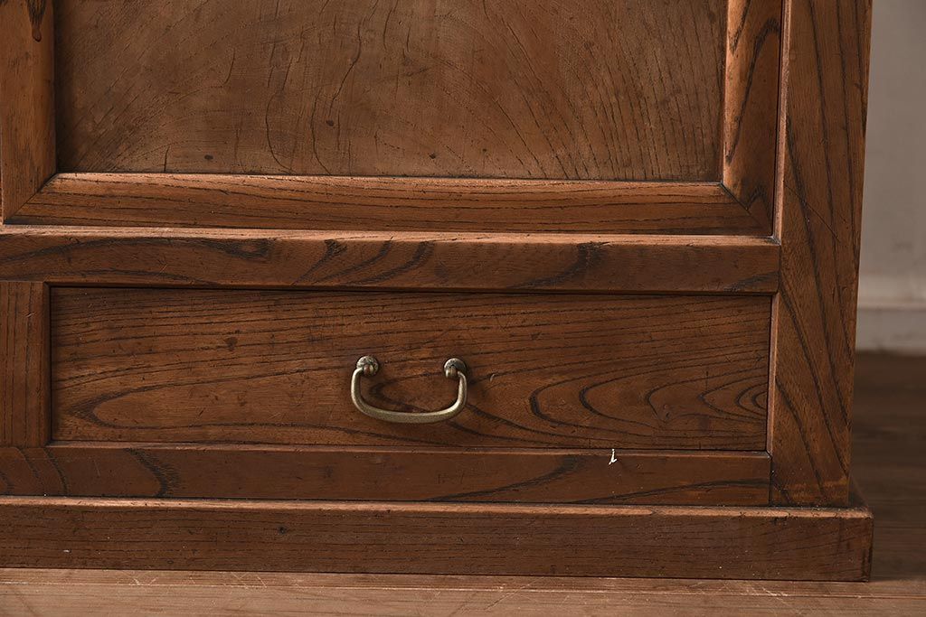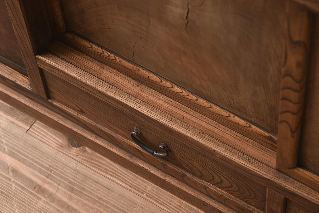 アンティーク家具 和製アンティーク 明治期 倹飩式 前面・天板ケヤキ材 味わい深い木の風合いが魅力の茶棚(戸棚、収納棚、キャビネット、引き出し)(R-040337)