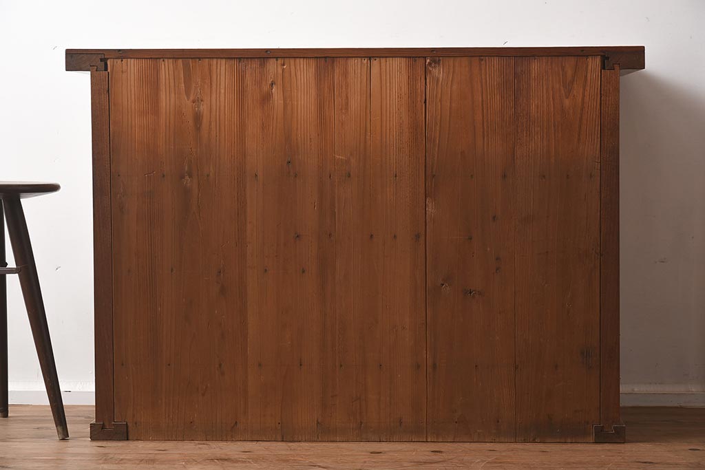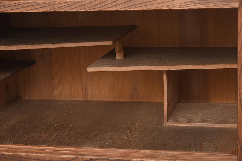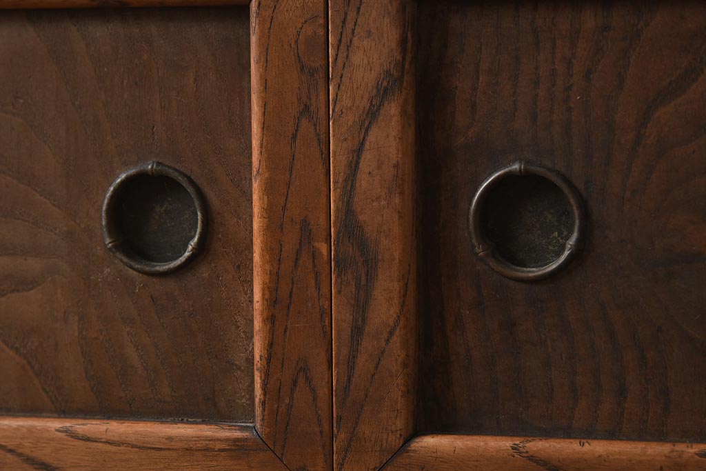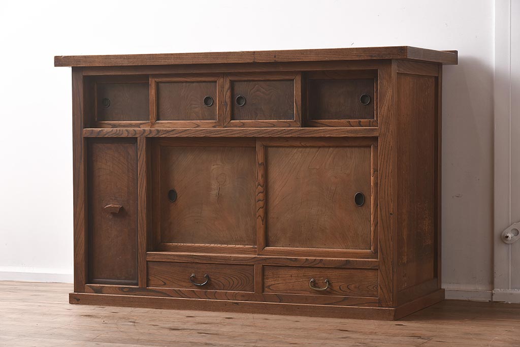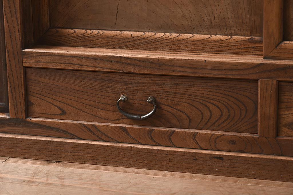 アンティーク家具 和製アンティーク 明治期 倹飩式 前面・天板ケヤキ材 味わい深い木の風合いが魅力の茶棚(戸棚、収納棚、キャビネット、引き出し)(R-040337)