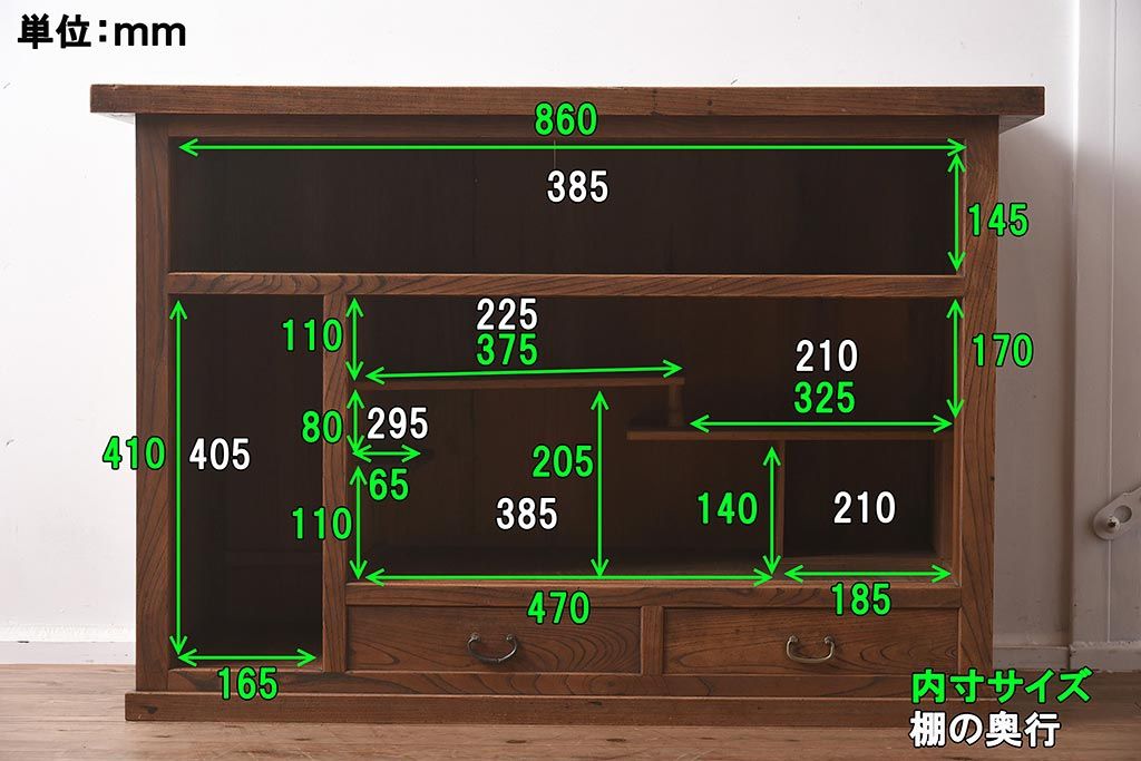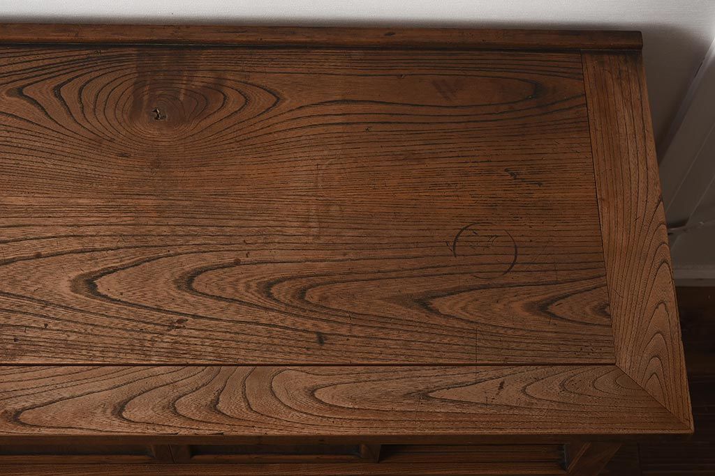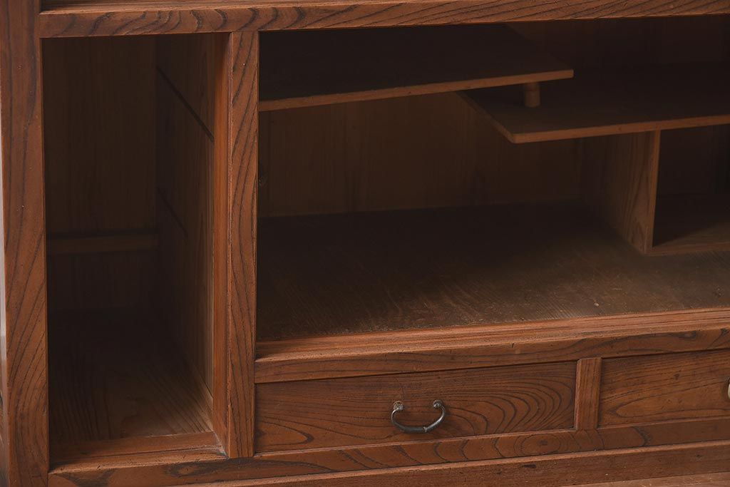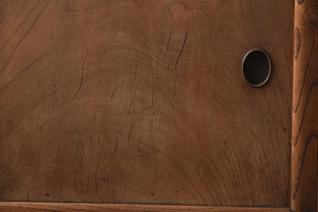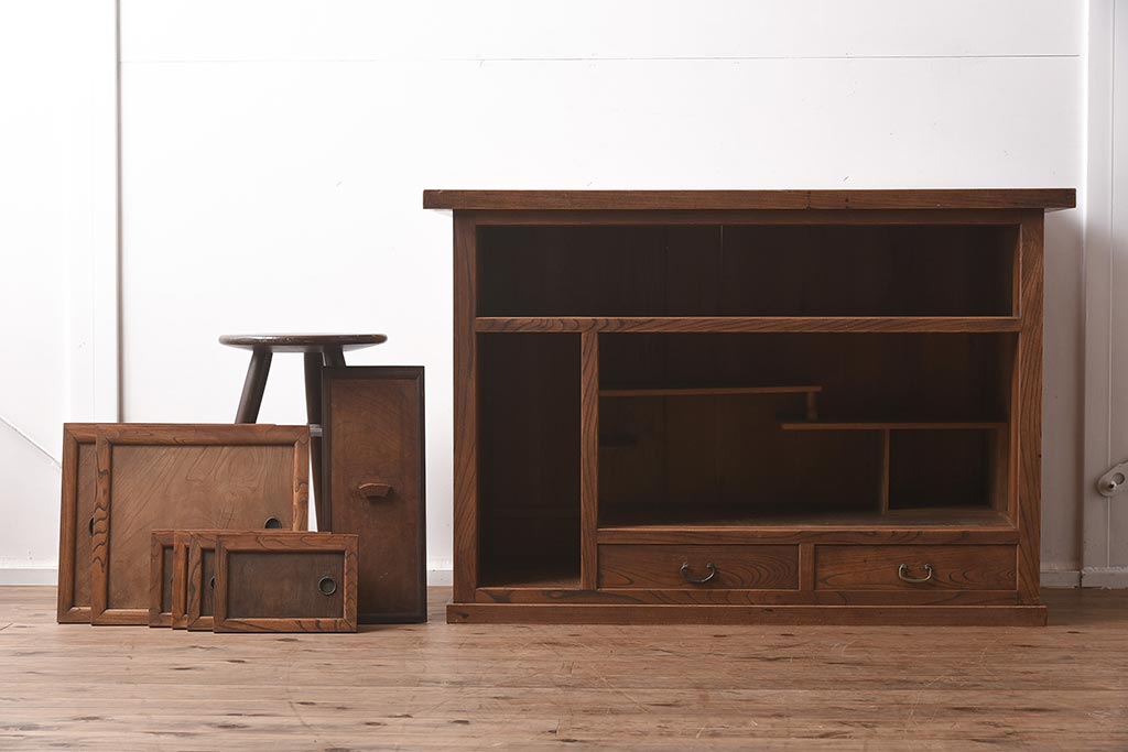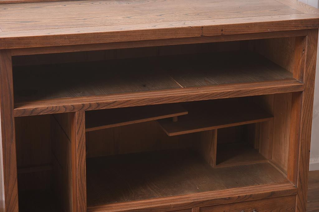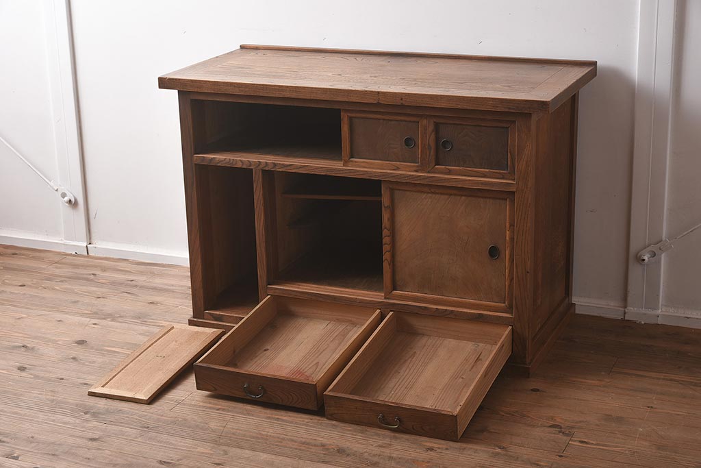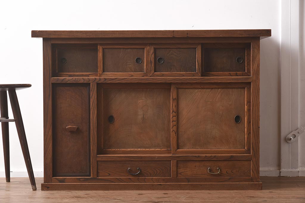 和箪笥> 茶箪笥・茶棚 > アンティーク家具 和製アンティーク 明治期 倹飩式 前面・天板ケヤキ材 味わい深い木の風合いが魅力の茶棚(戸棚、収納棚、キャビネット、引き出し)(R-040337)
