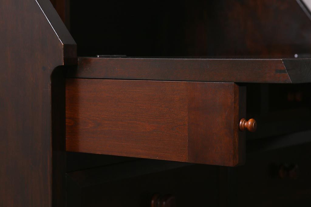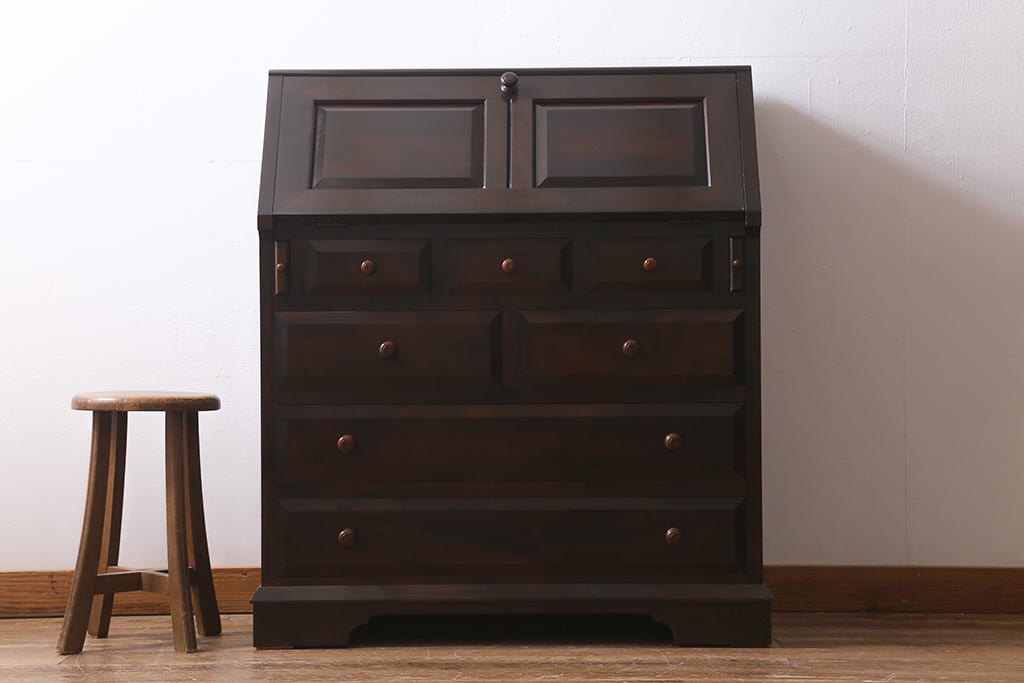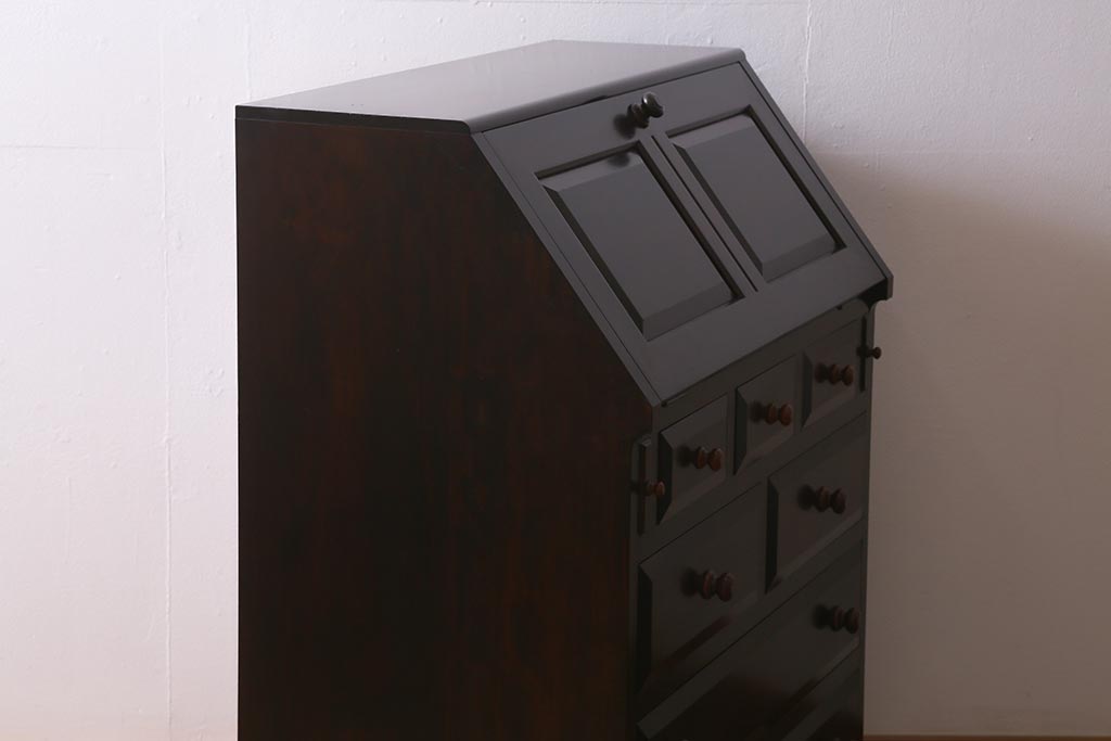 中古 松本民芸家具 T型 シックで上品な佇まいが魅力のライティングビューロー(簿記机、在宅ワーク、在宅用ワークデスク)(R-040261)