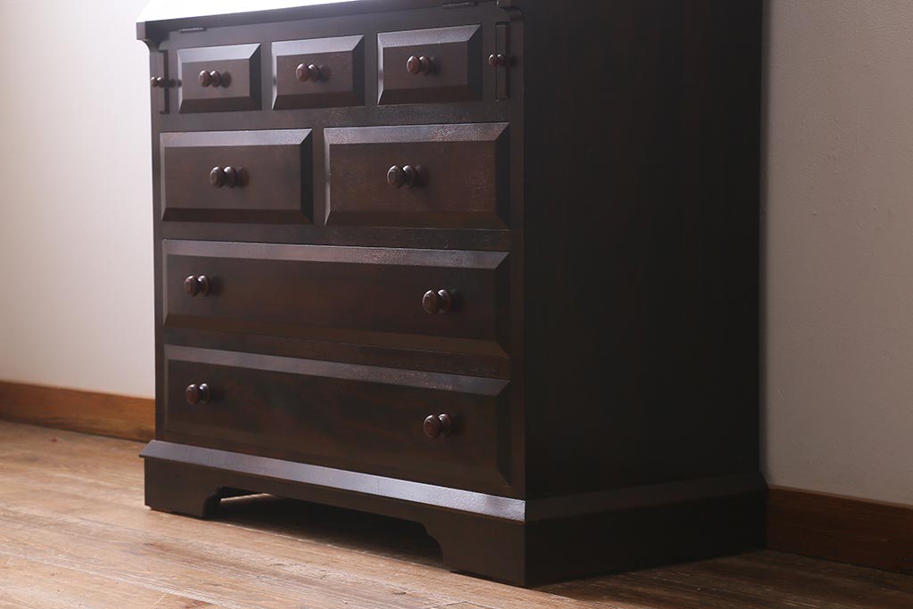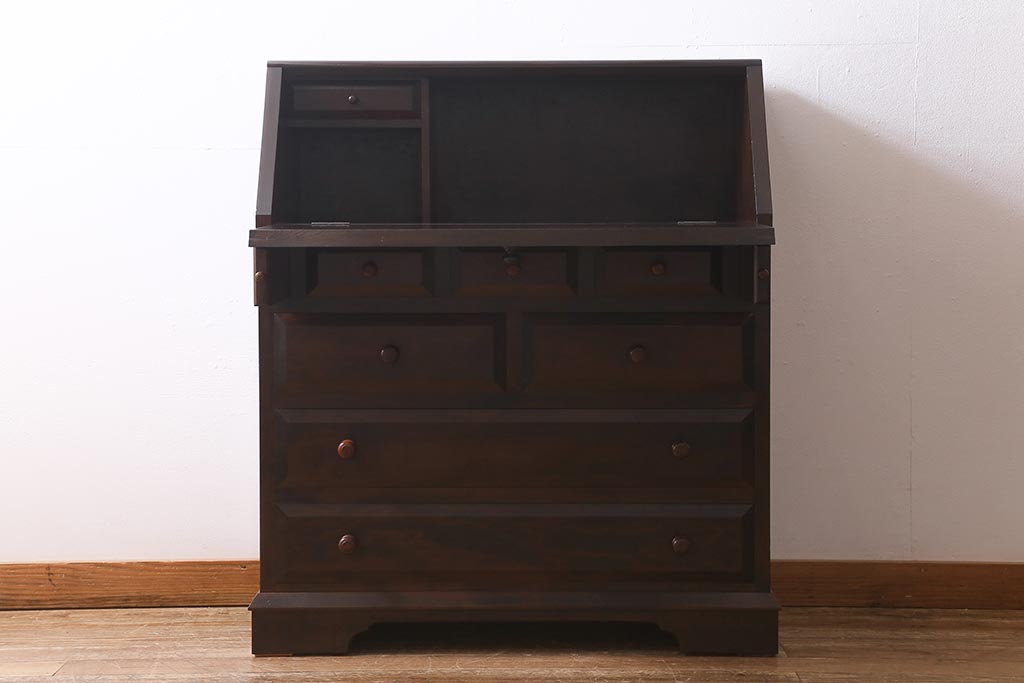 デスク> ライティングビューロー・簿記机 > 中古 松本民芸家具 T型 シックで上品な佇まいが魅力のライティングビューロー(簿記机、在宅ワーク、在宅用ワークデスク)(R-040261)